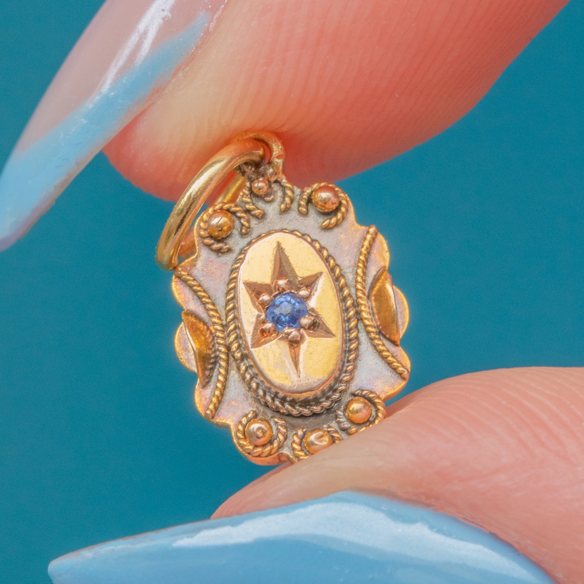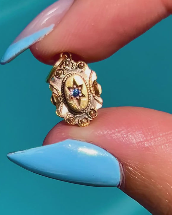 Antique 15ct Gold Sapphire Etruscan Star-Set Charm