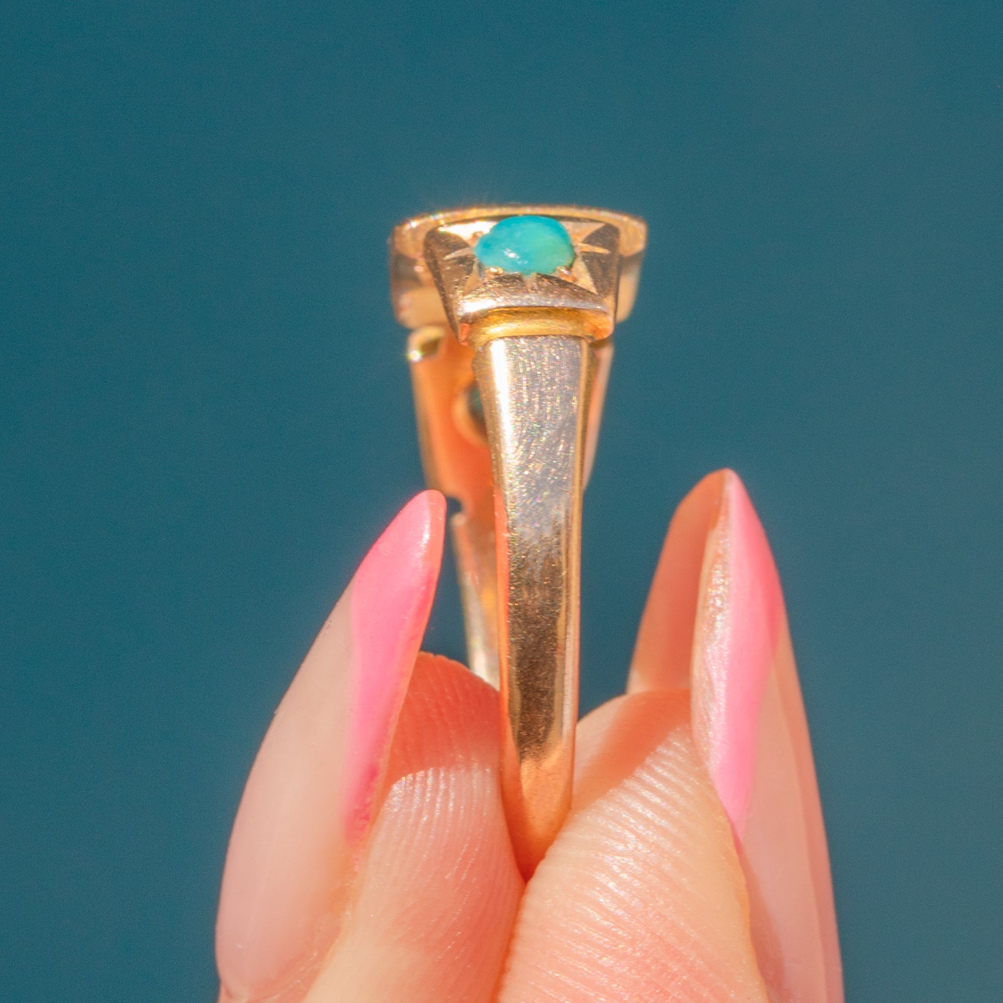 Antique 15ct Gold Turquoise Diamond Star Set Gypsy Ring c.1900