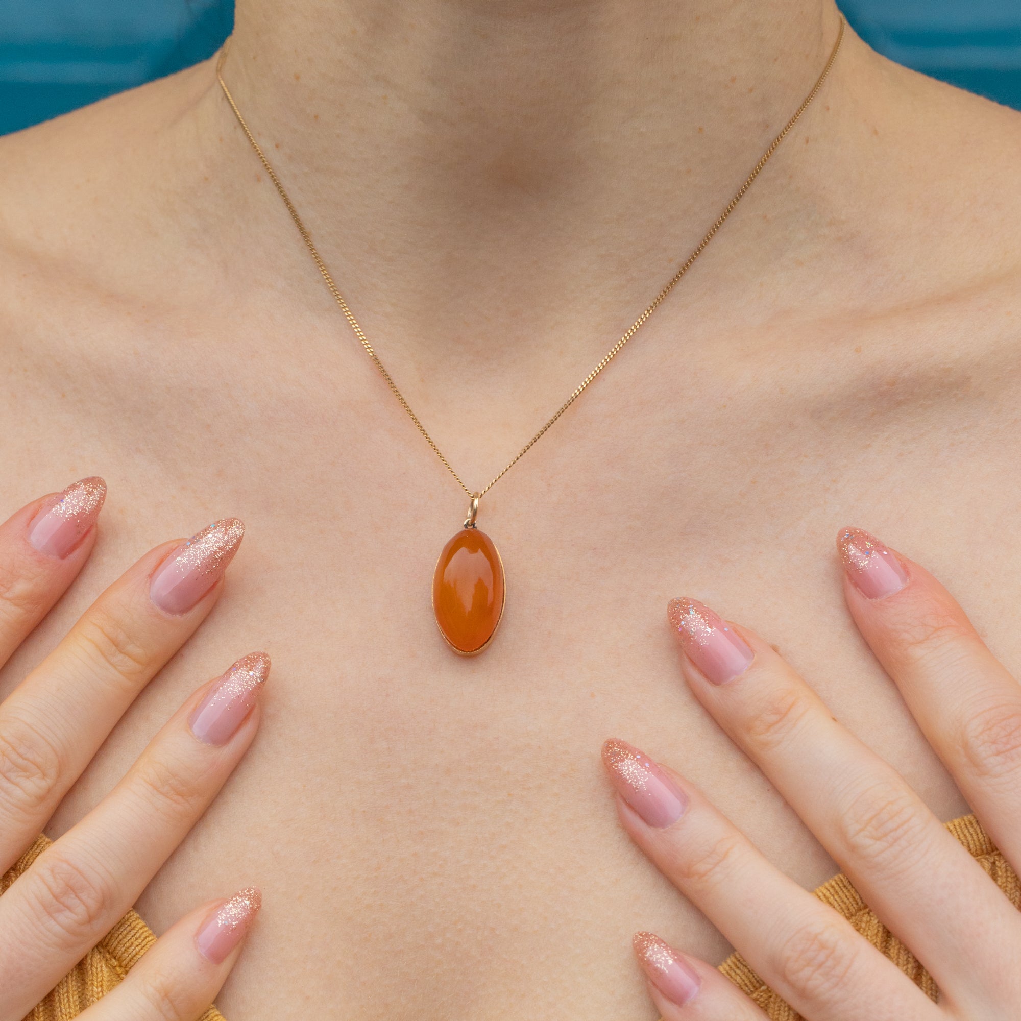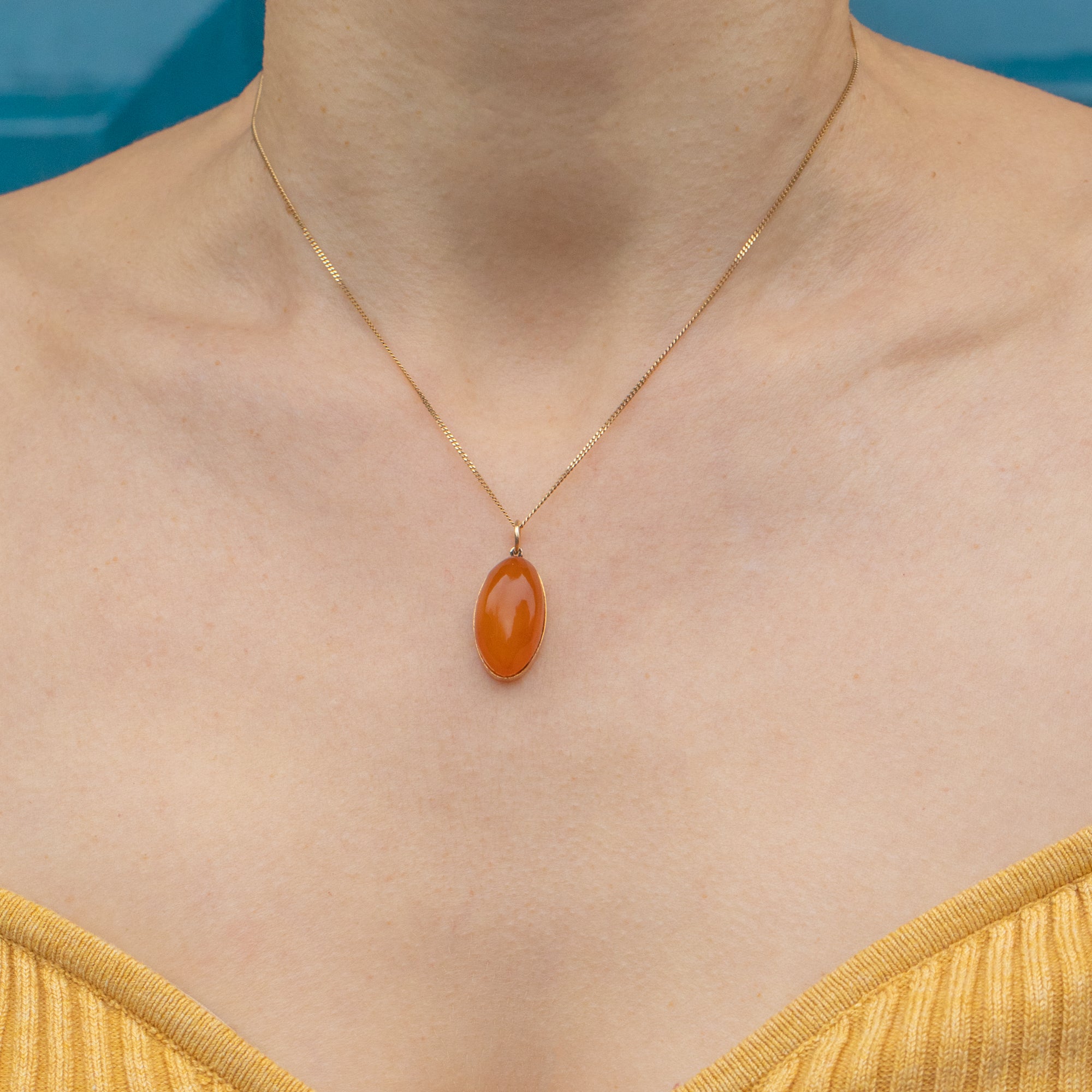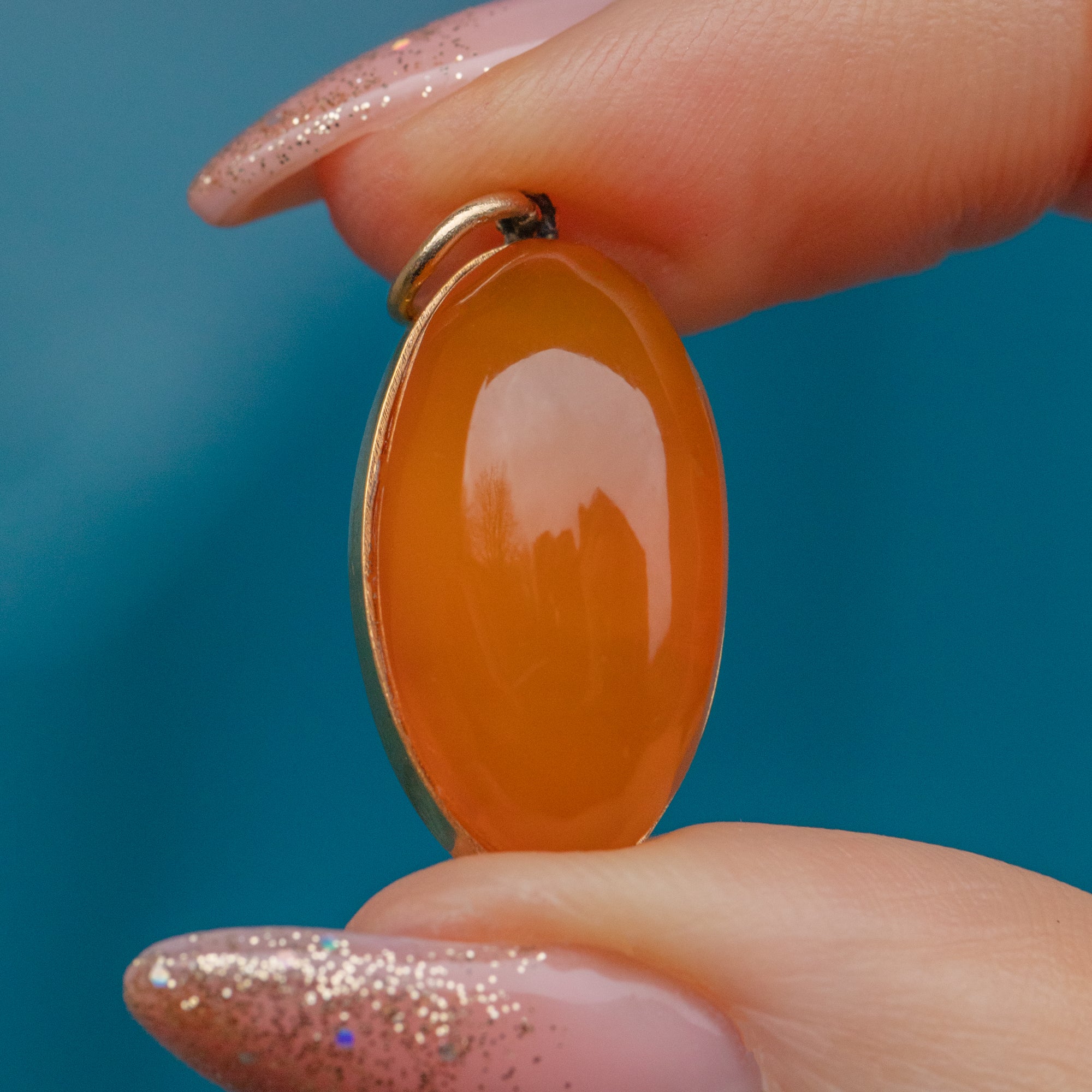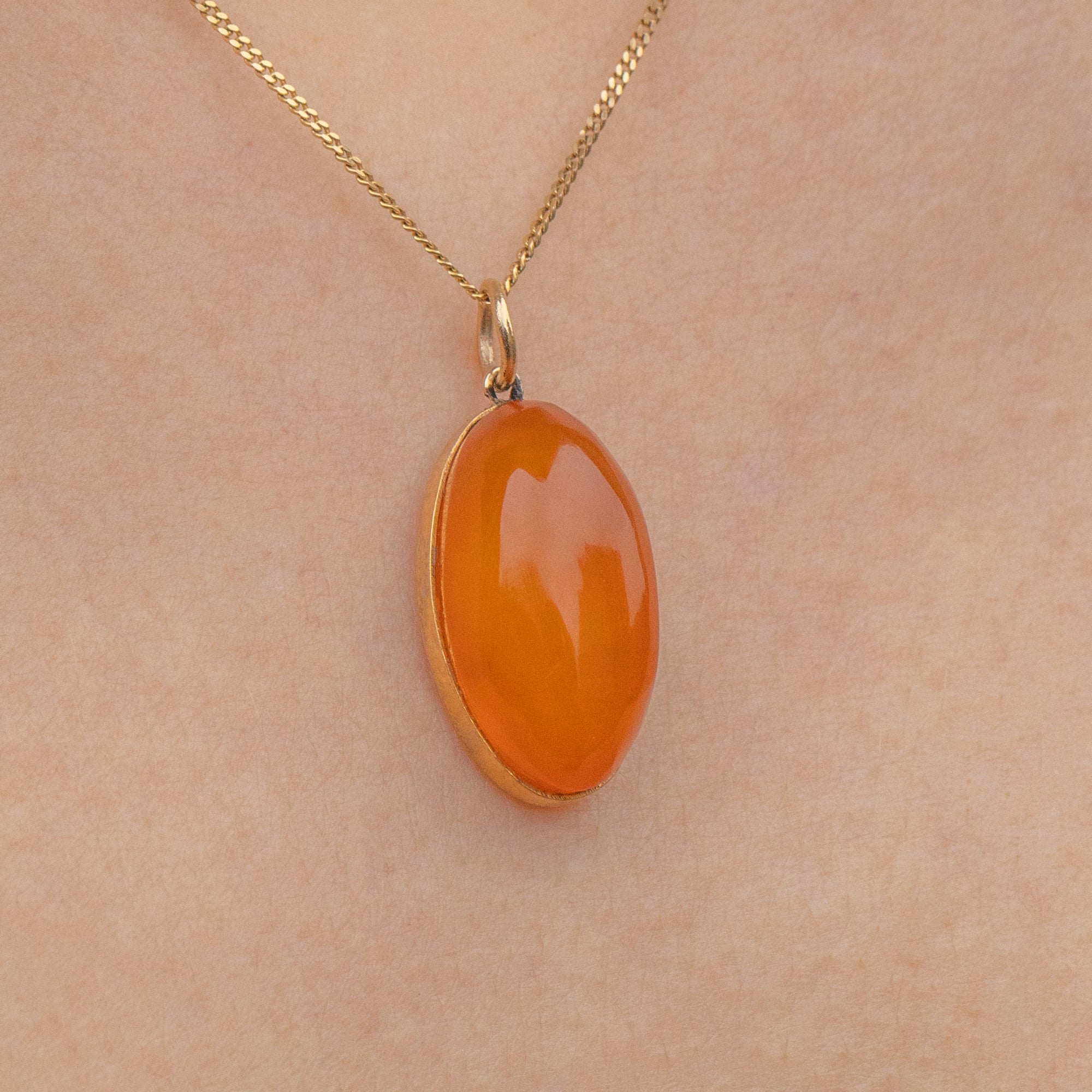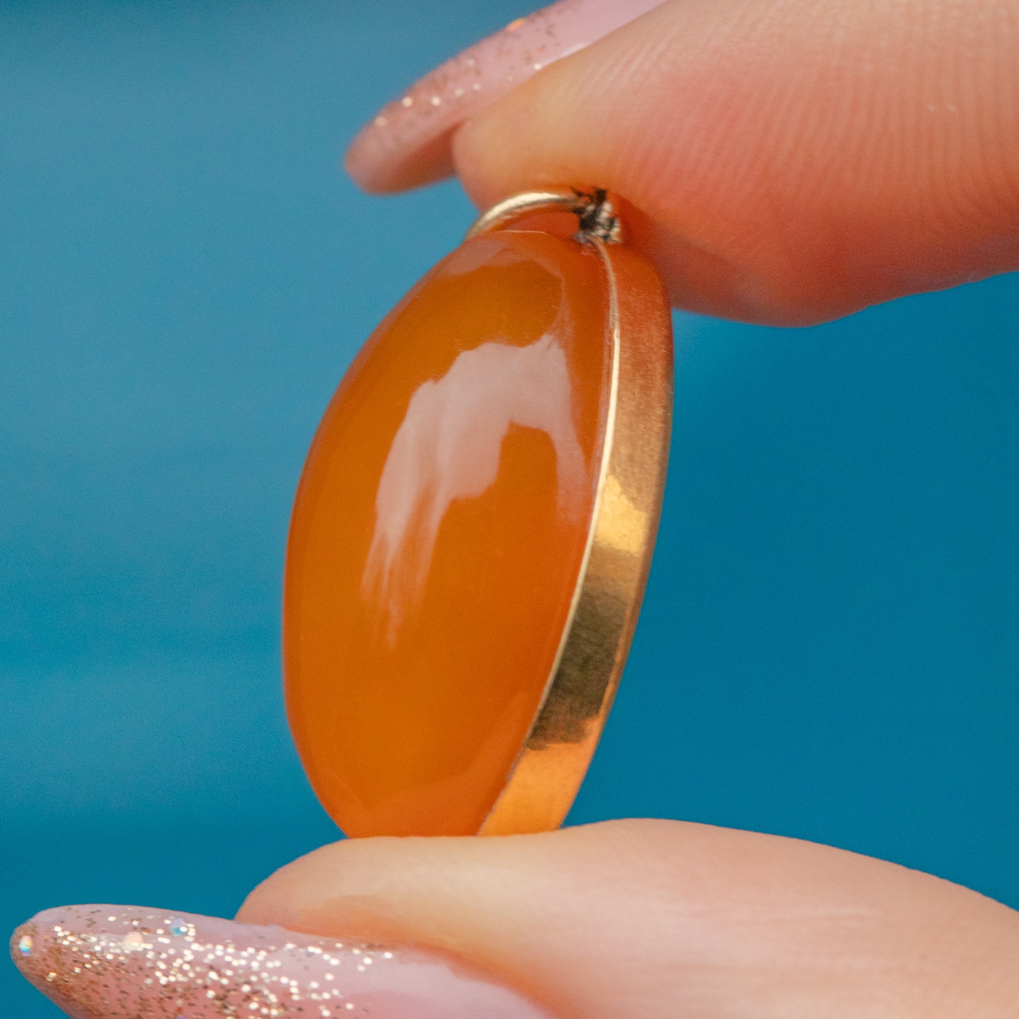 Add a hint of warmth to your collection with this antique Amber cabochon pendant.