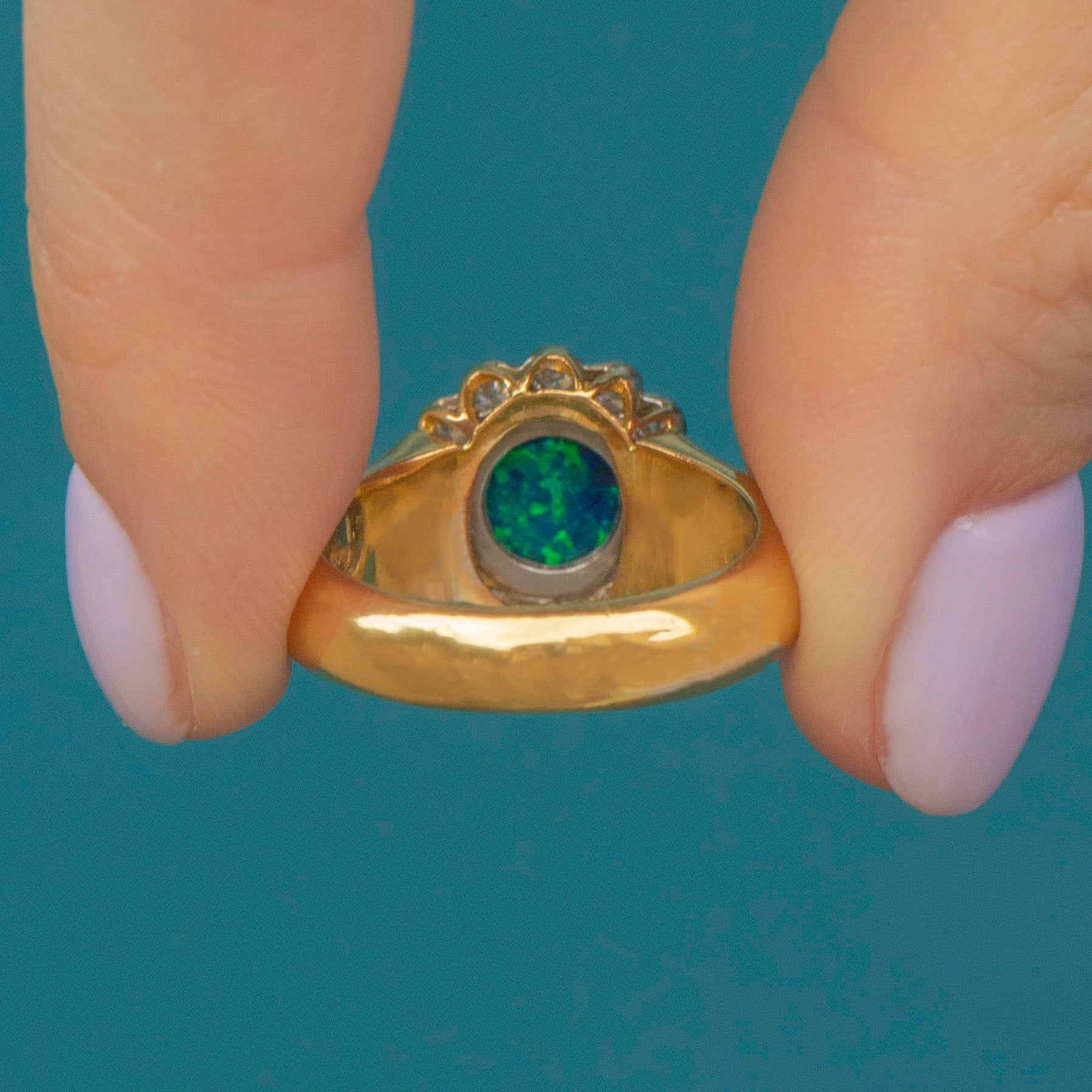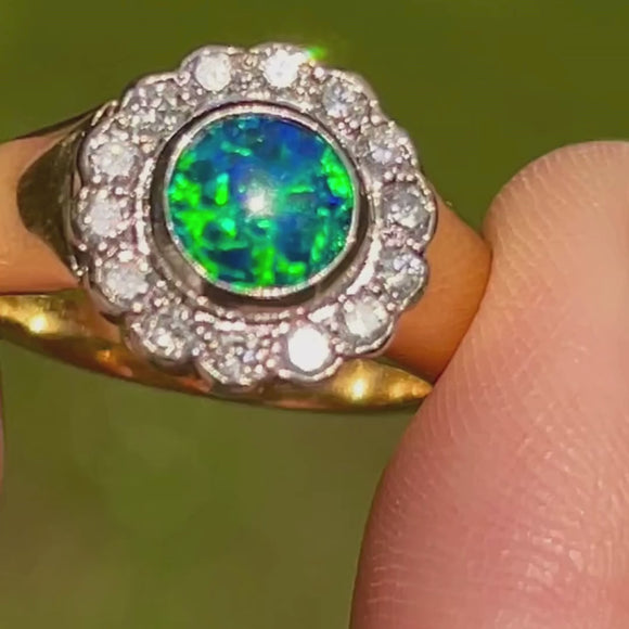Antique 18ct Gold Black Opal & Diamond Cluster Ring