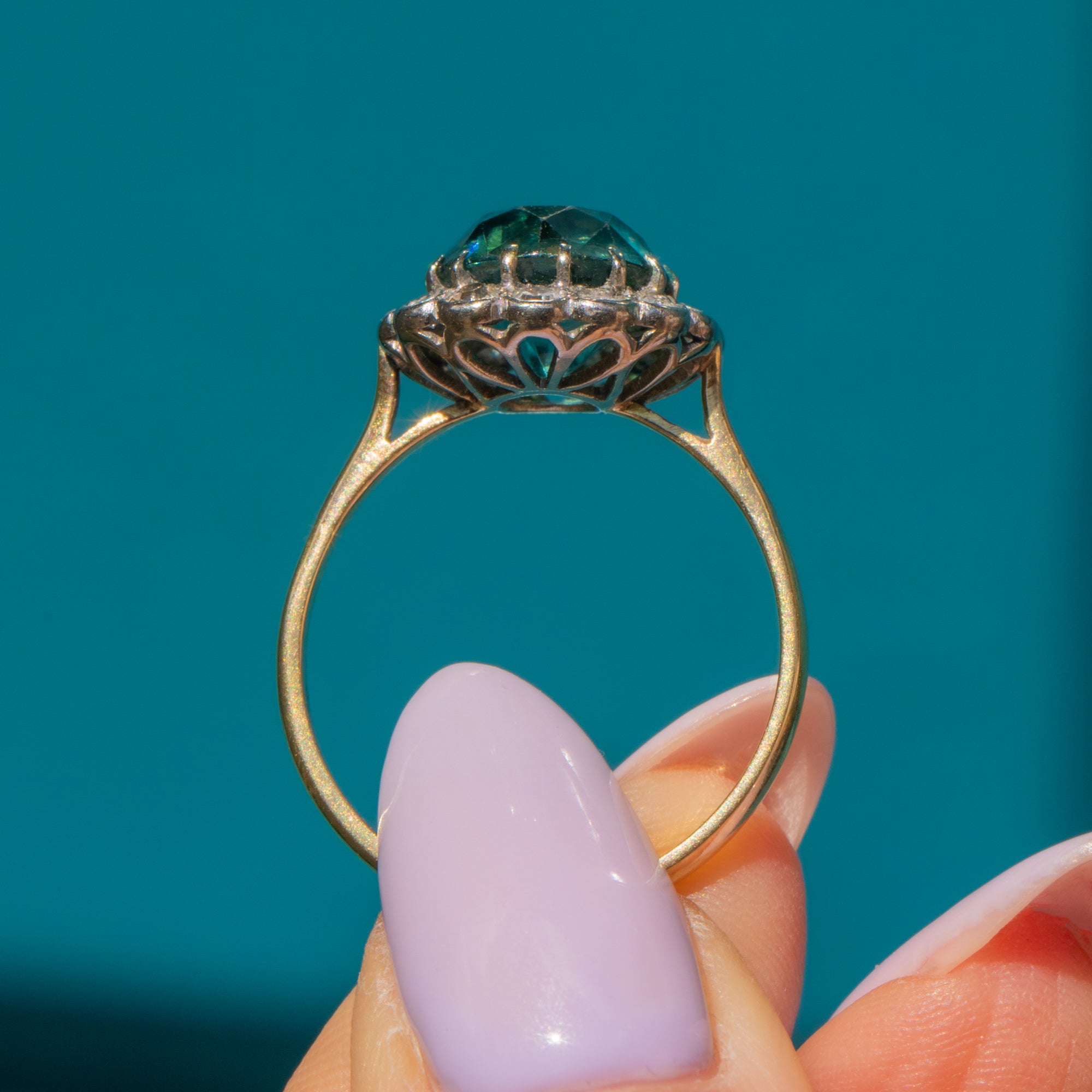Antique 18ct Gold Blue Zircon Diamond Cluster Ring, 4.00ct