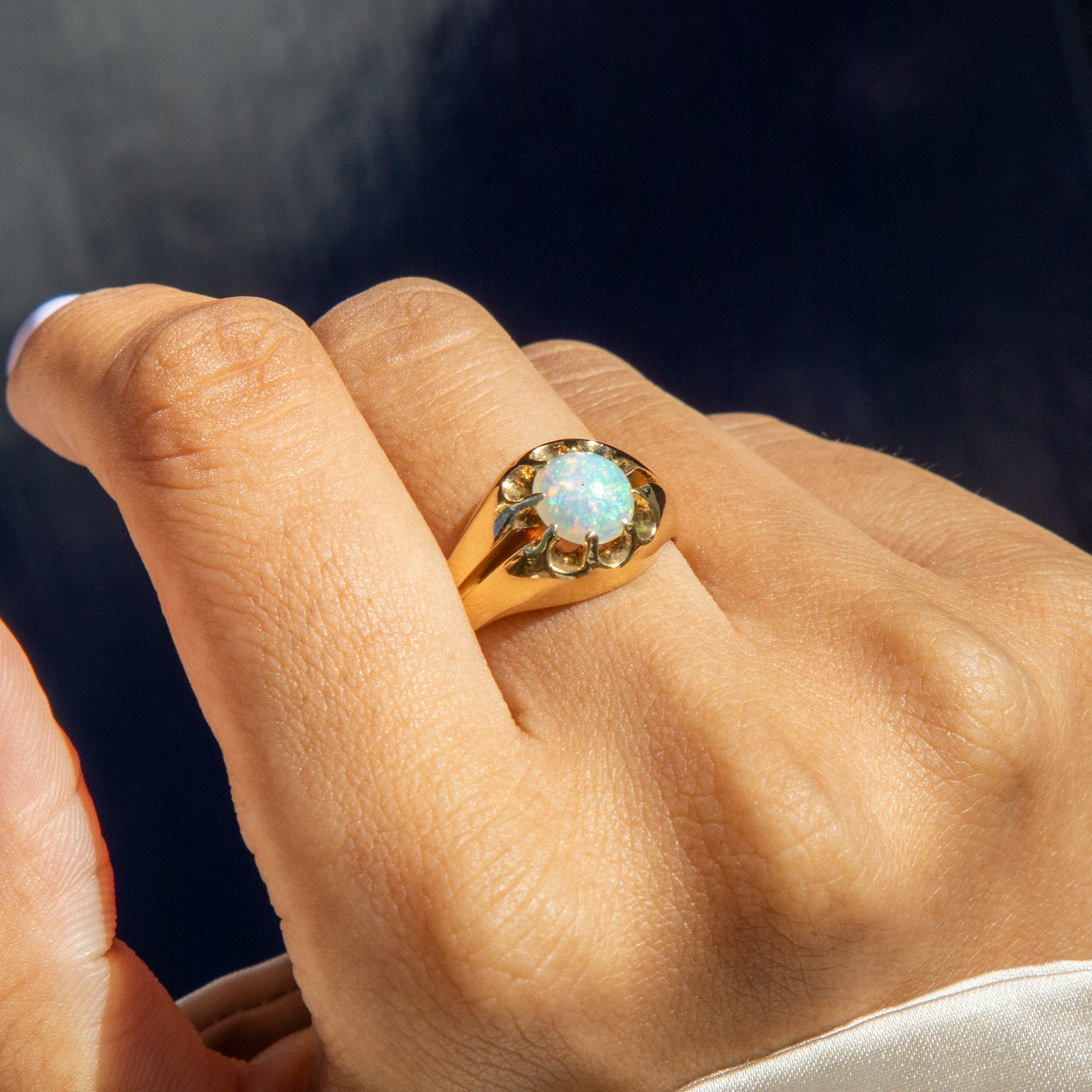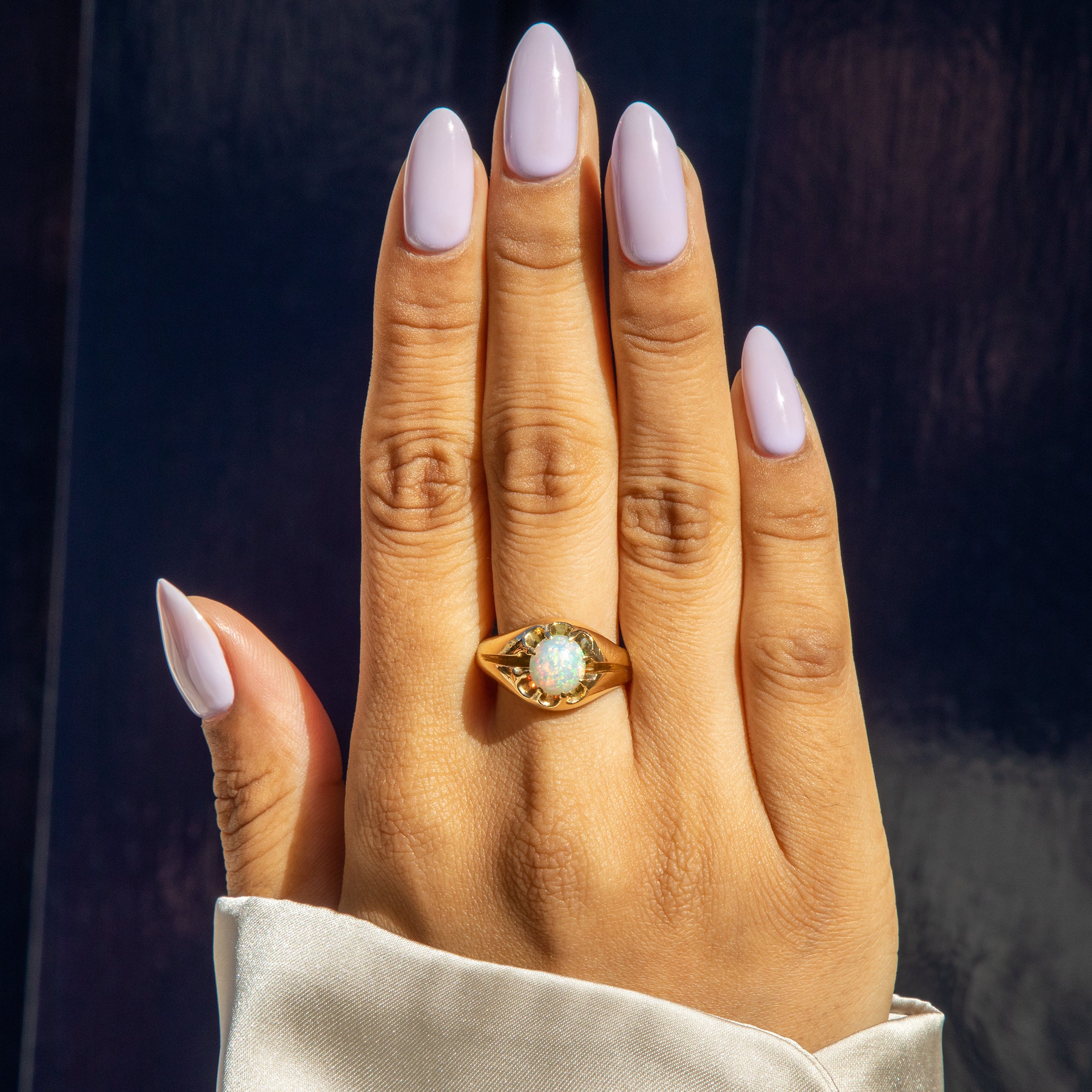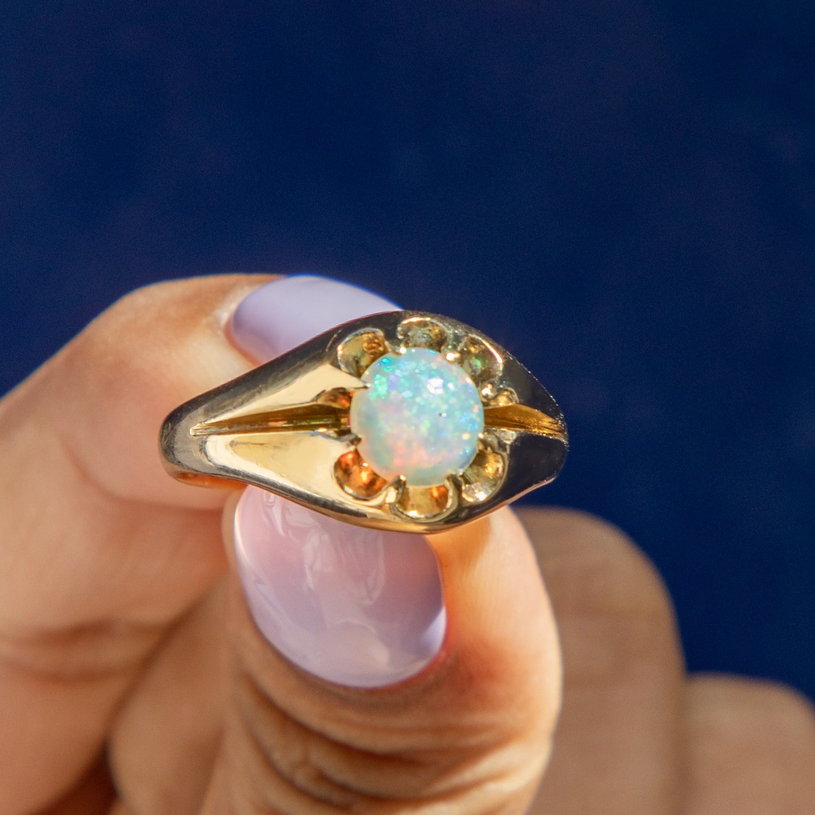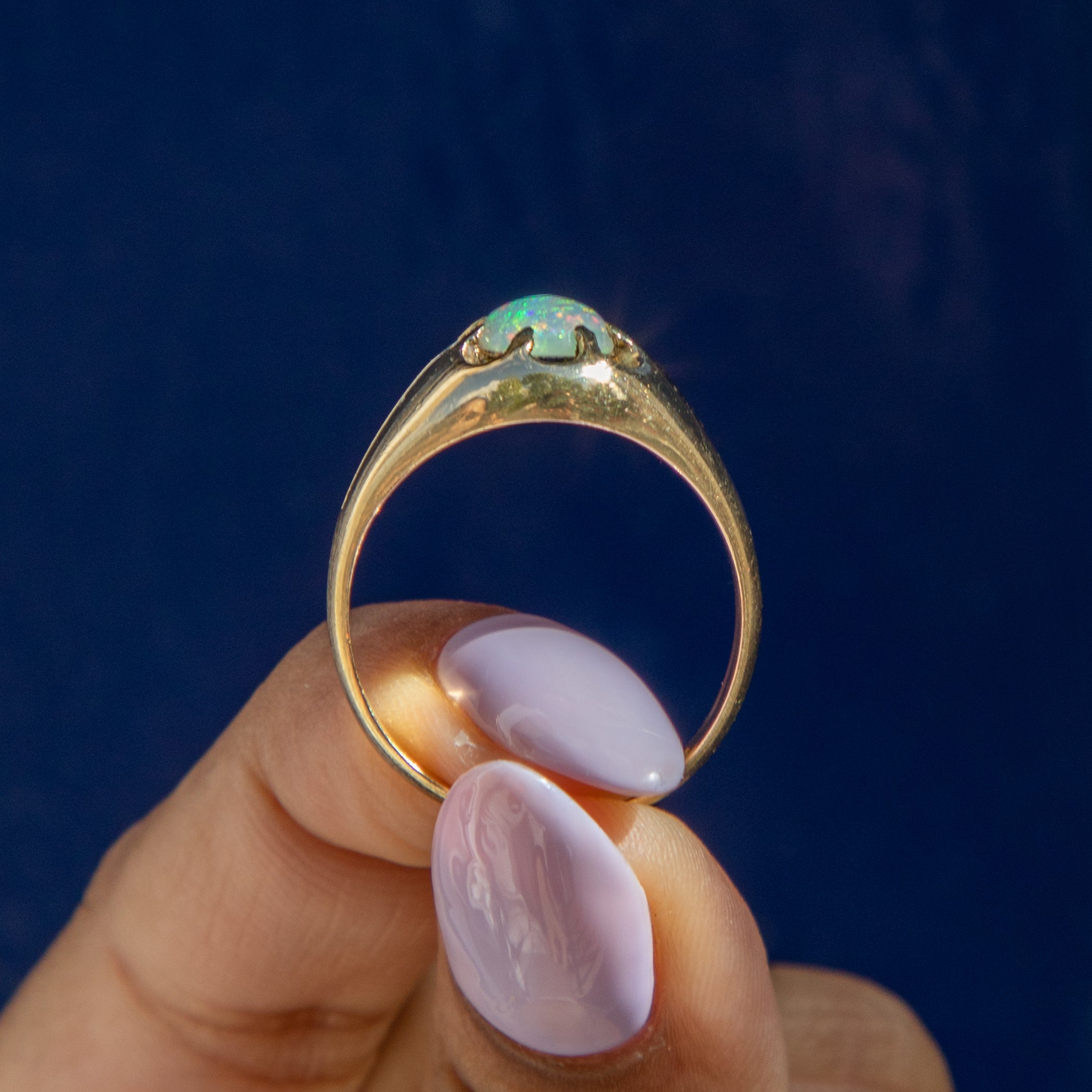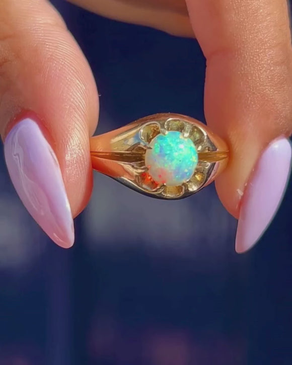 Bague ancienne en or 18 carats sertie d'une opale Buttercup, 0,45 ct