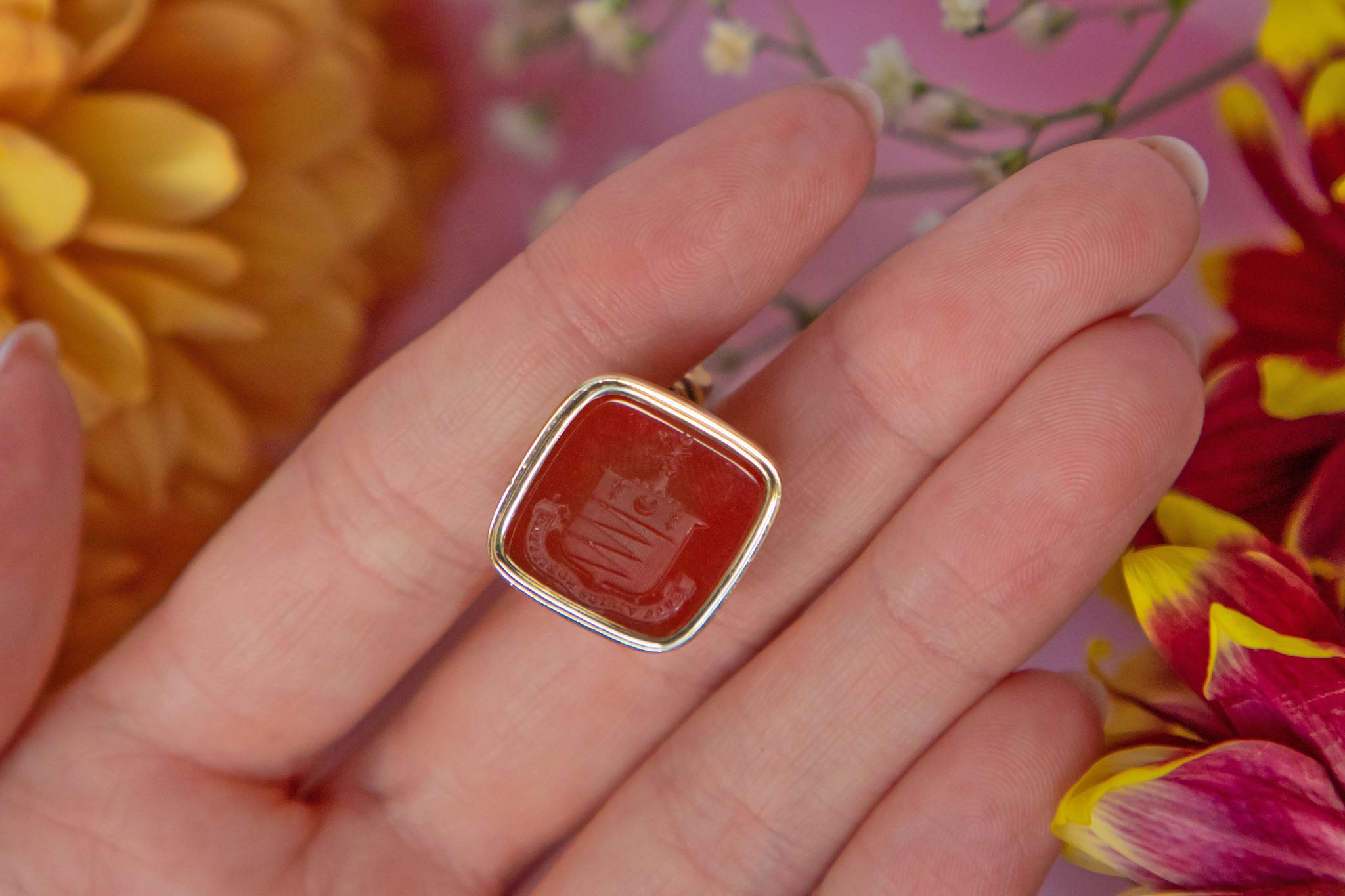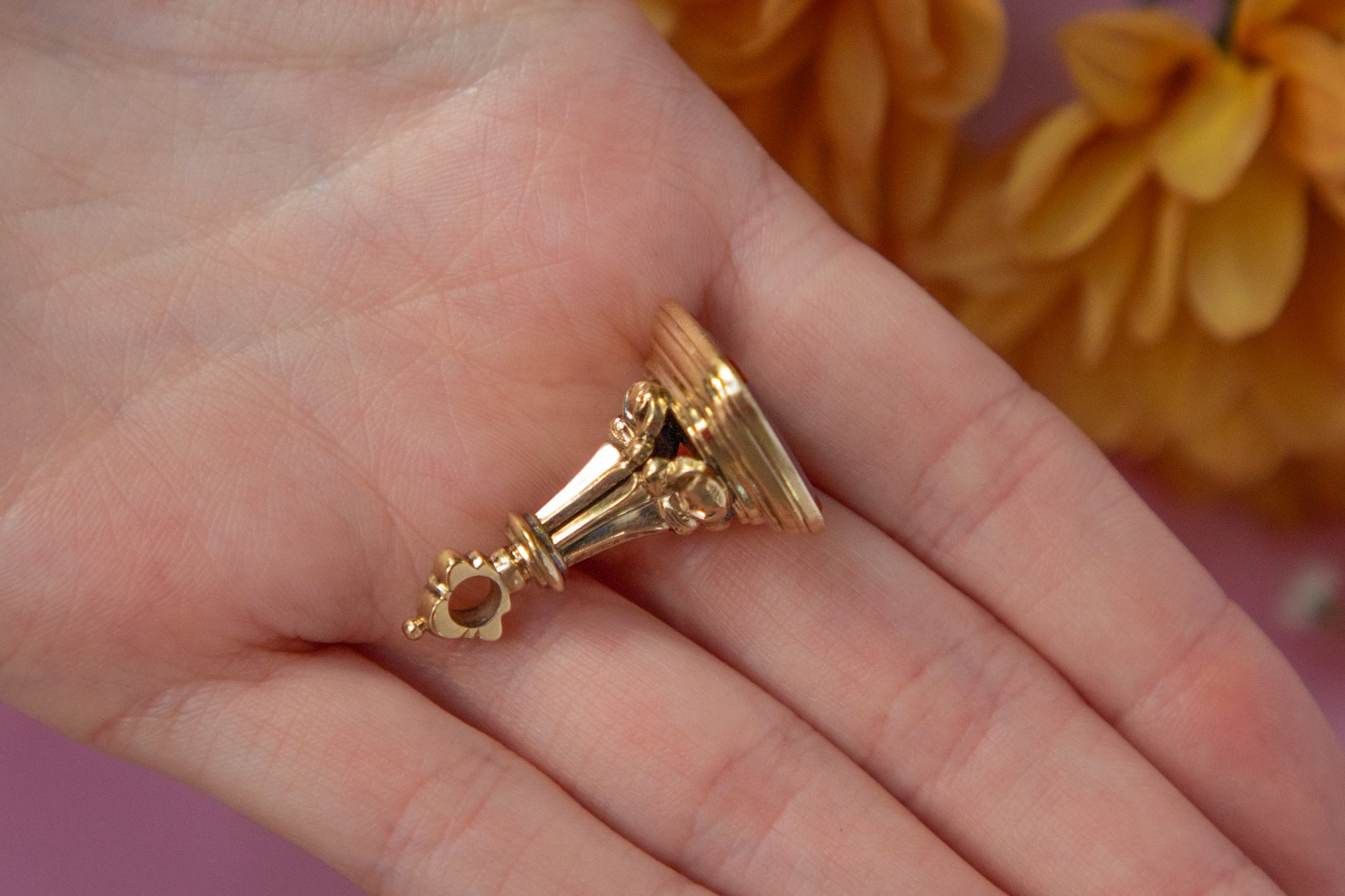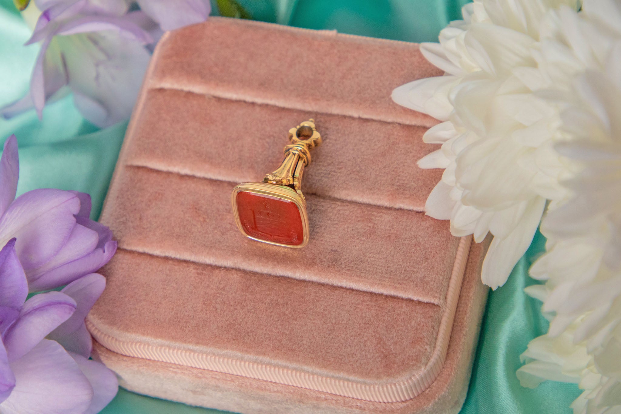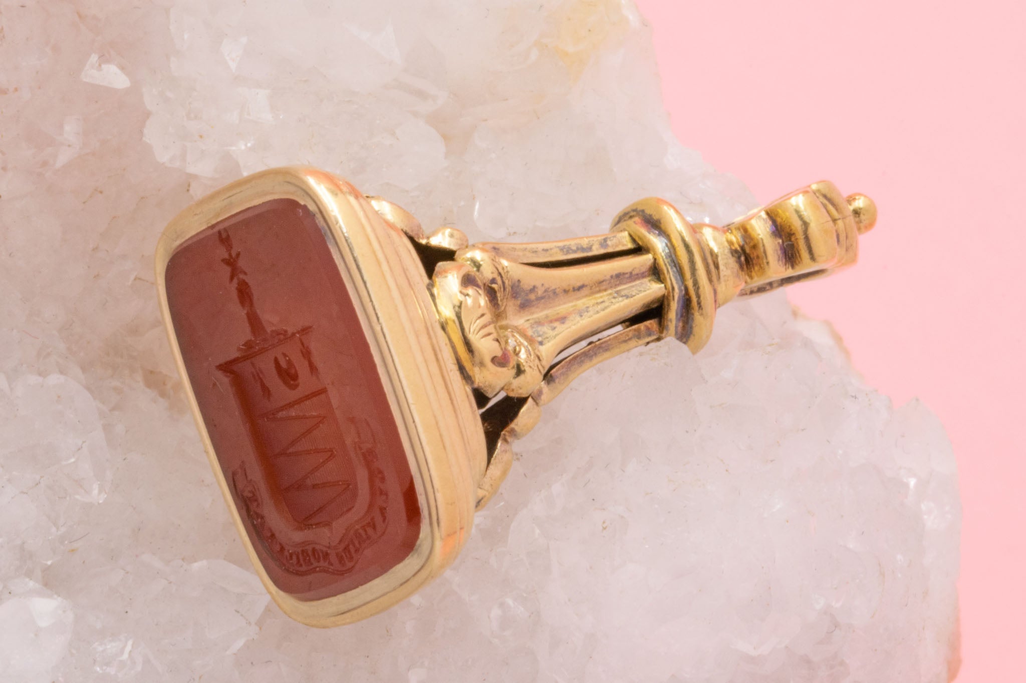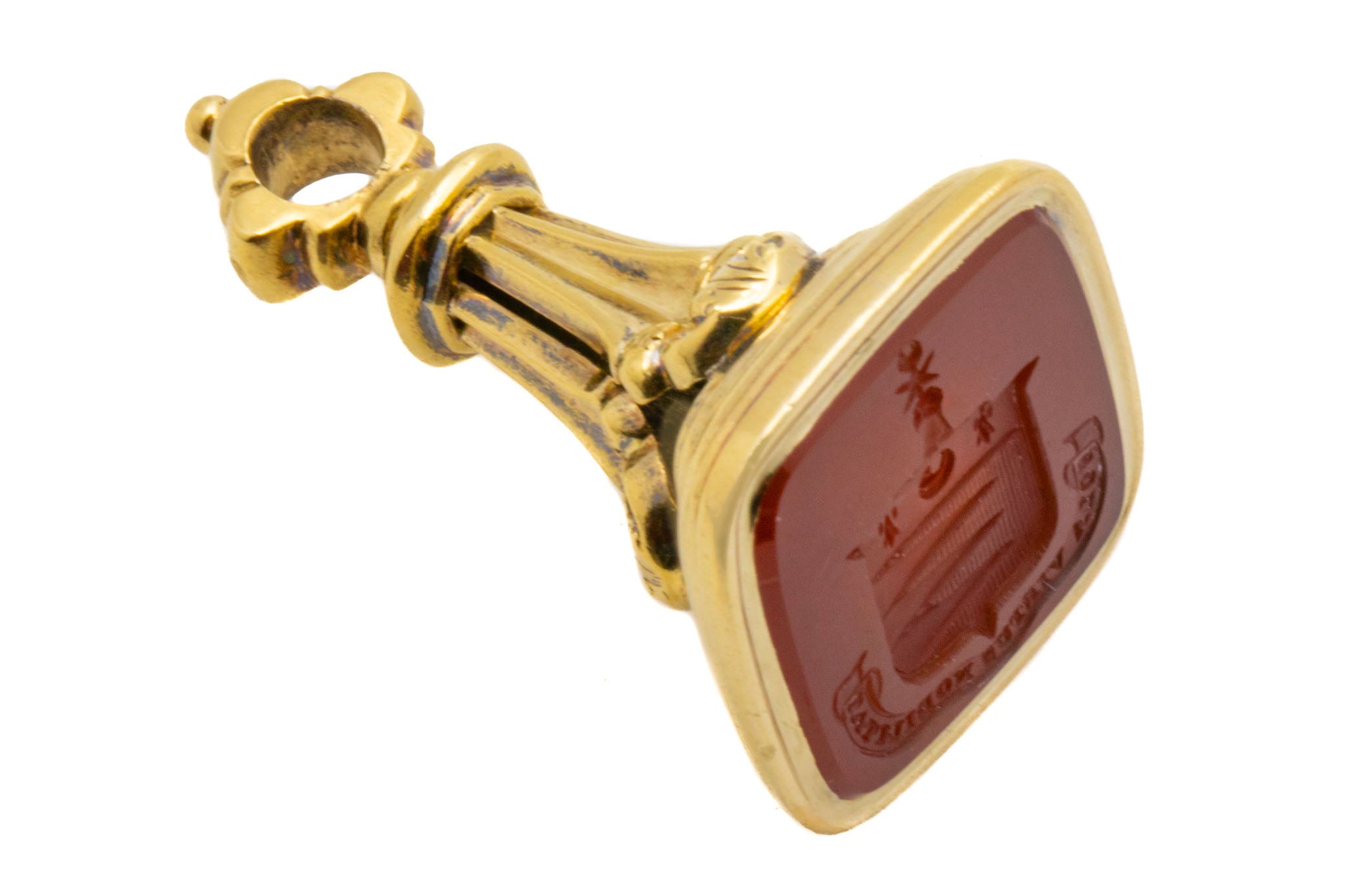 Pendentif Sceau Intaglio en Cornaline en Or 18ct Antique, « La Vertu Seule Ennoblit »