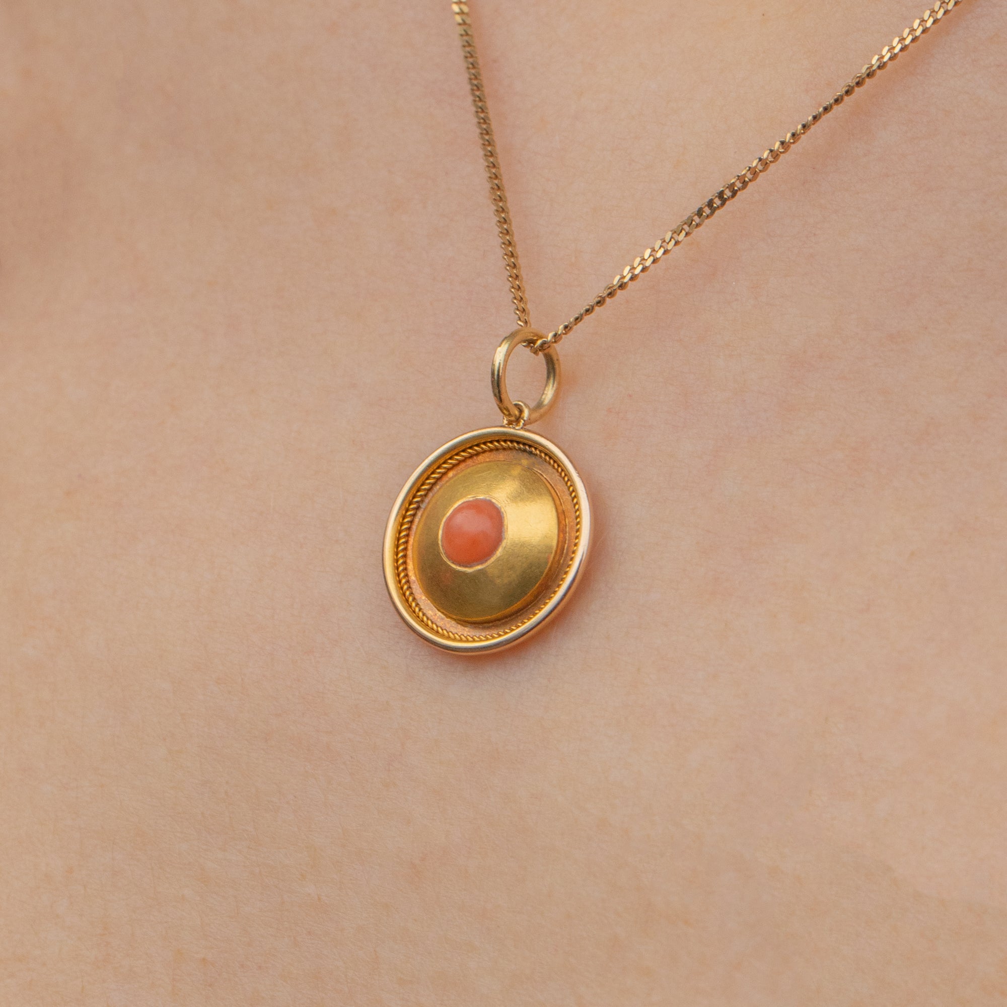 This antique 18ct Gold Coral disc charm is a true treasure!