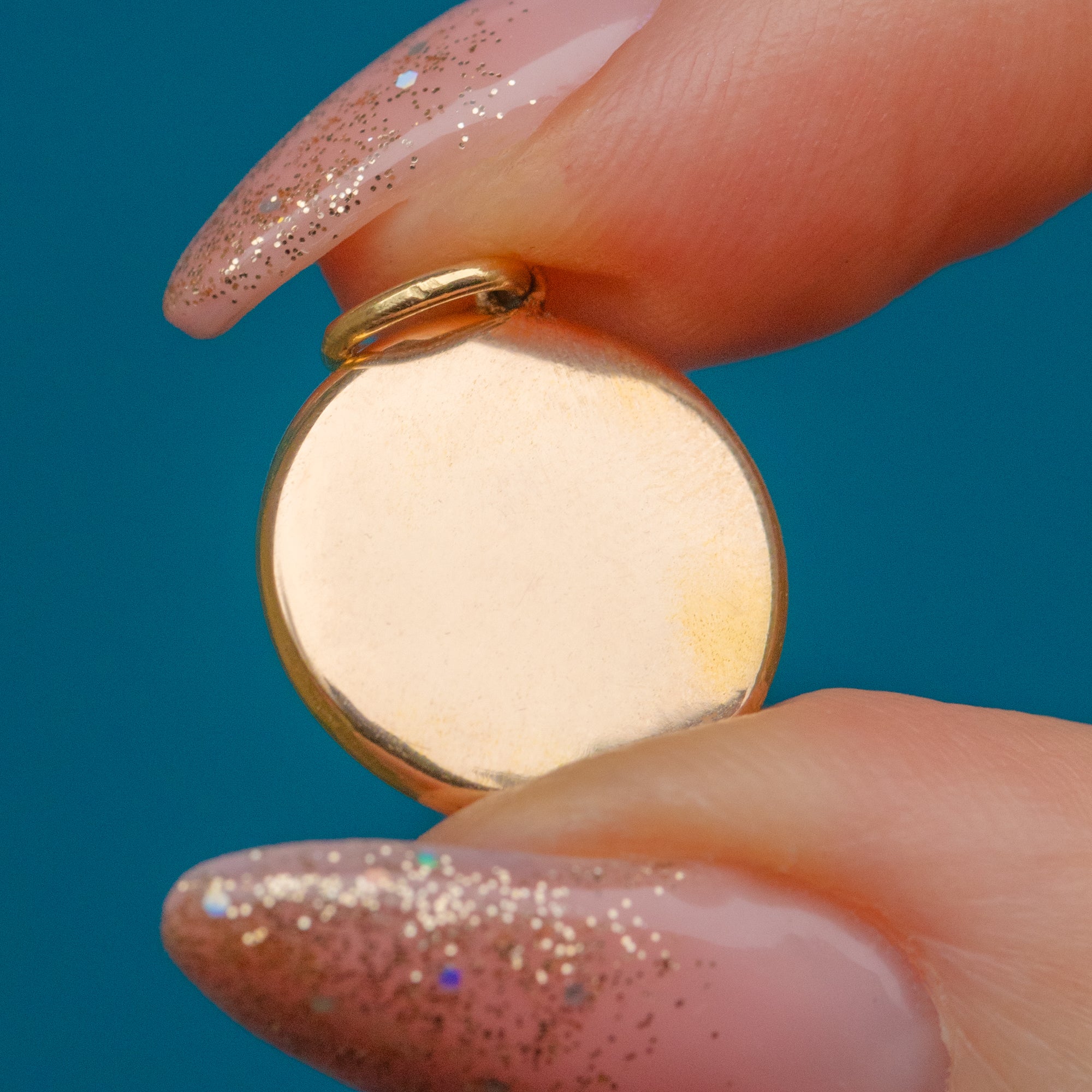 Crafted from 18ct rich yellow Gold, this Victorian disc charm offers exceptional versatility and would look stunning hanging from a delicate chain.