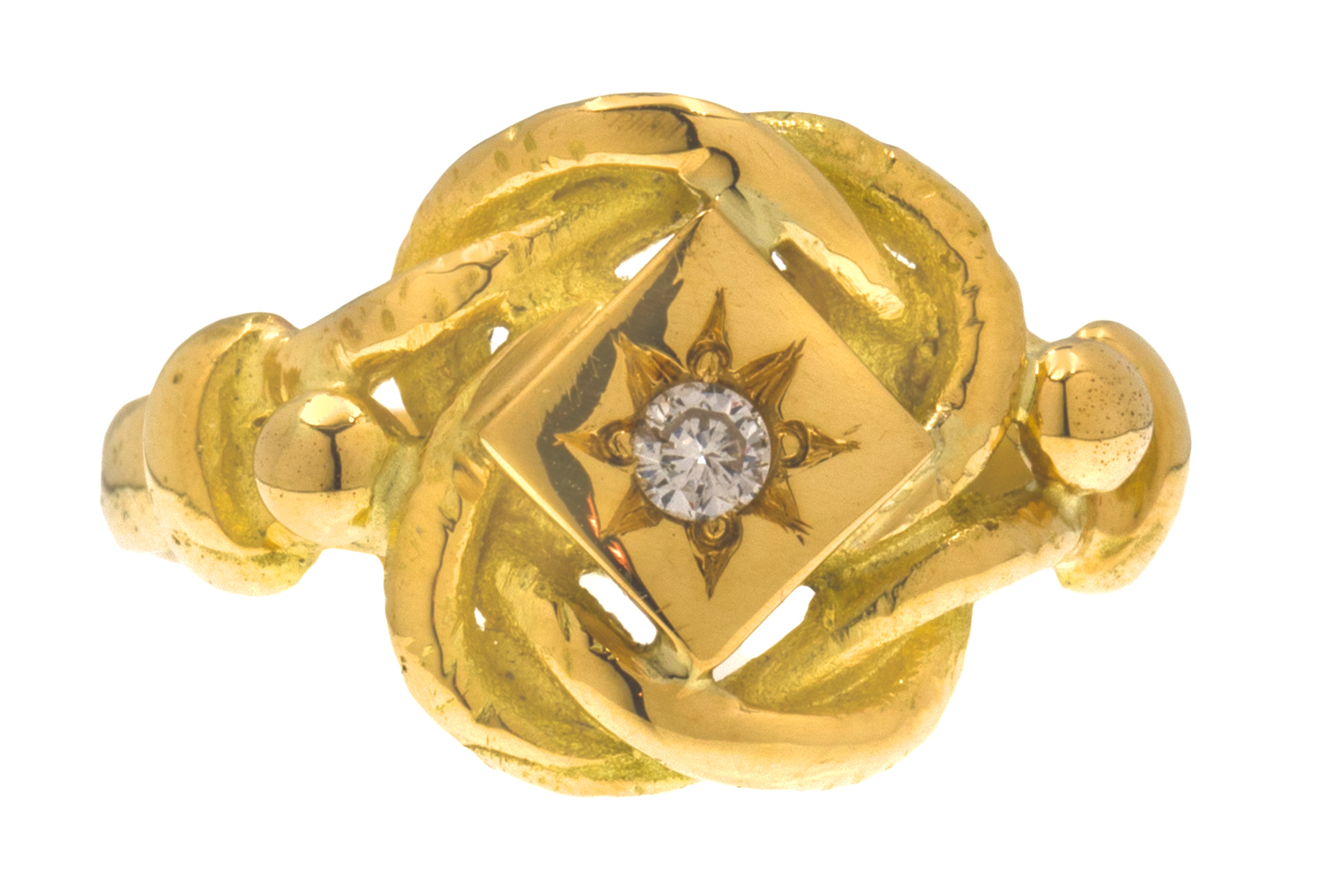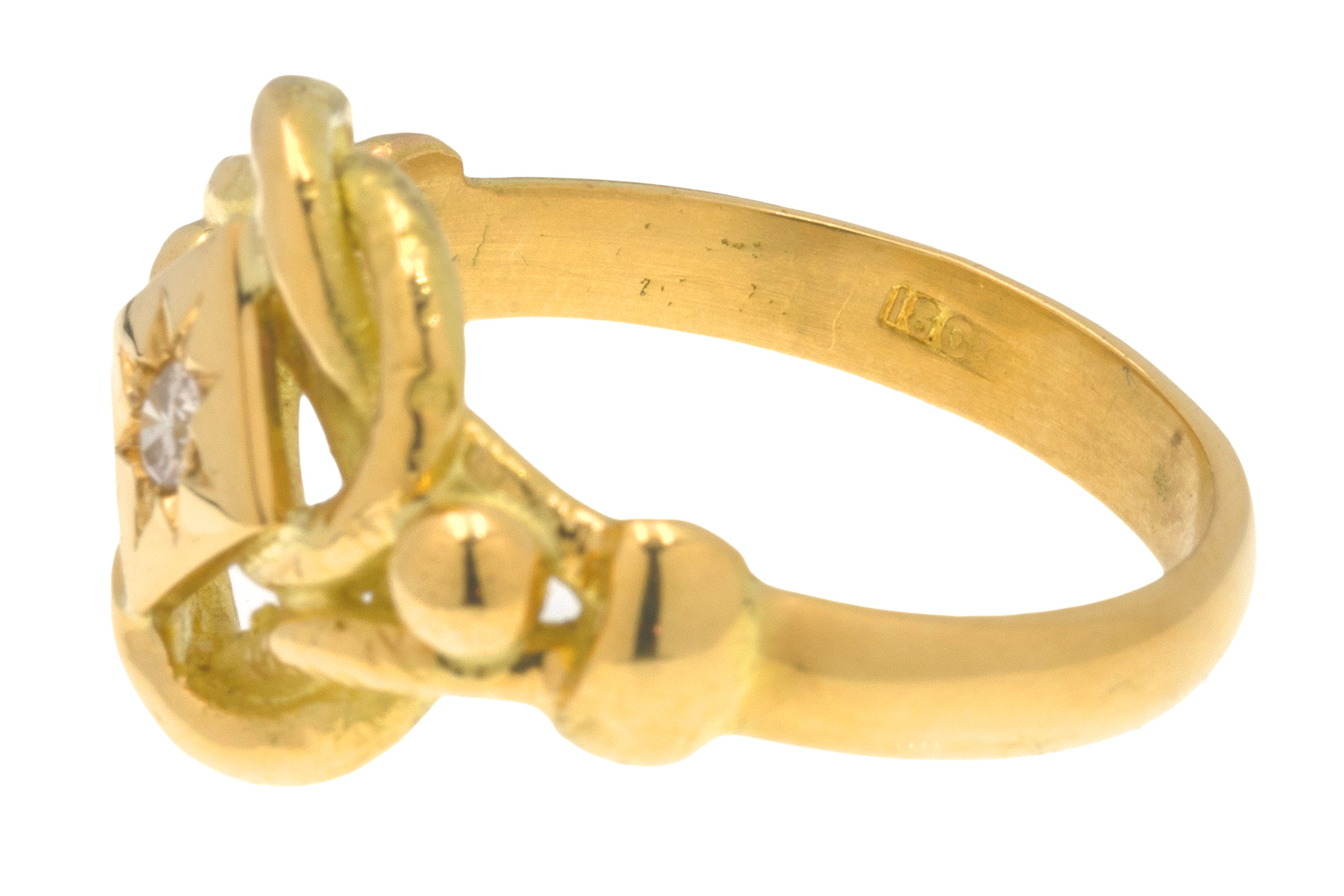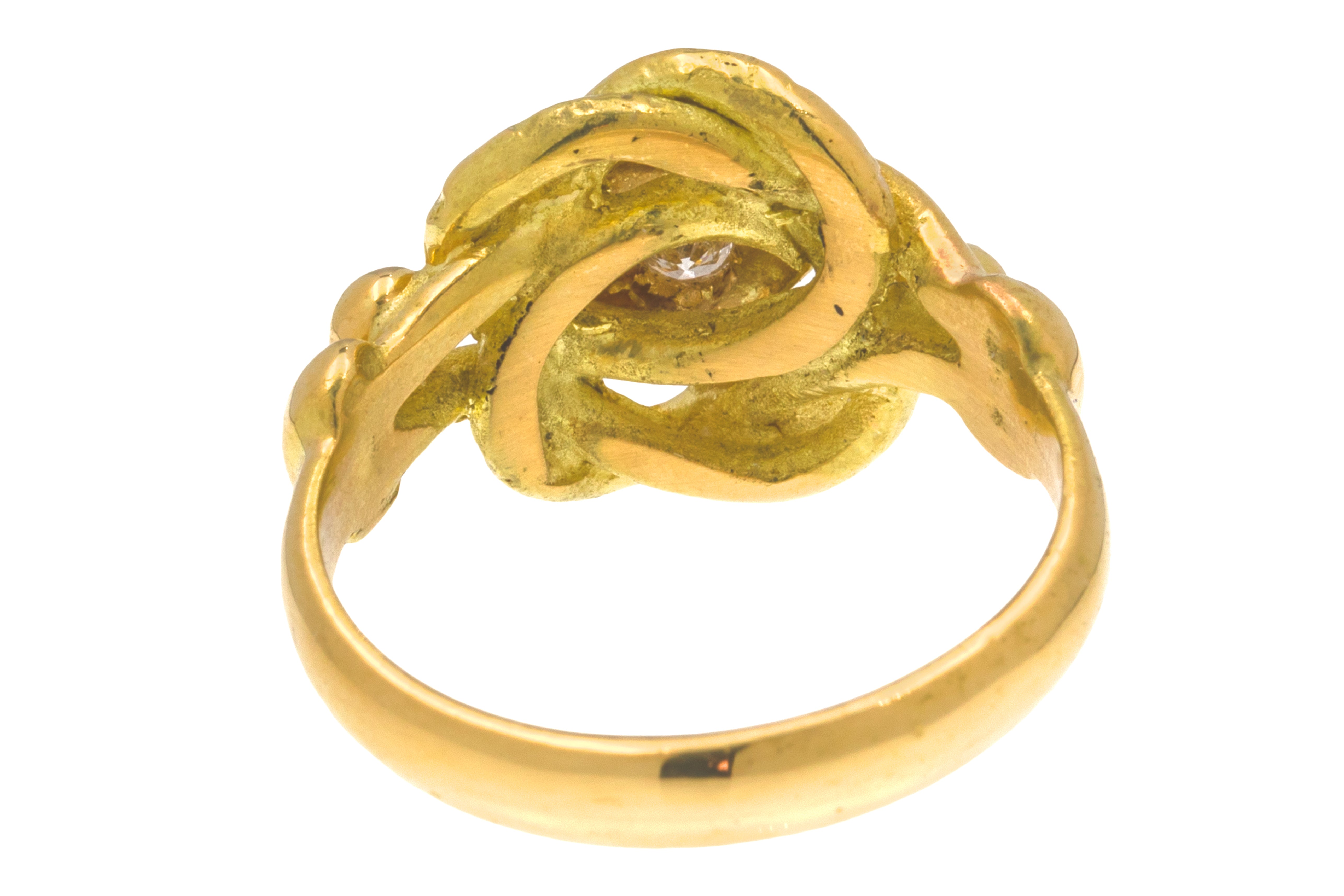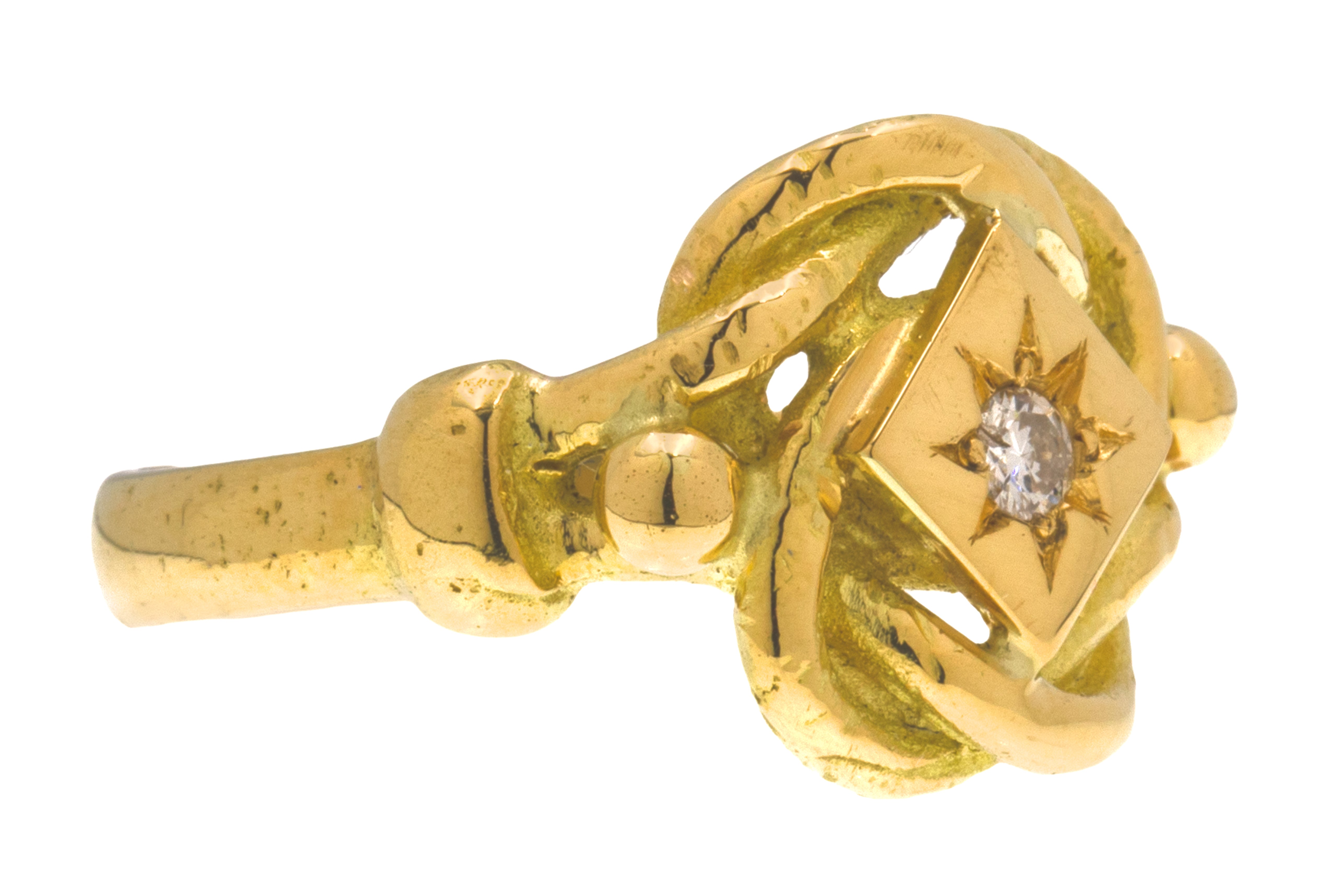Bague ancienne lourde en or 18 carats avec nœud d'amoureux en diamant