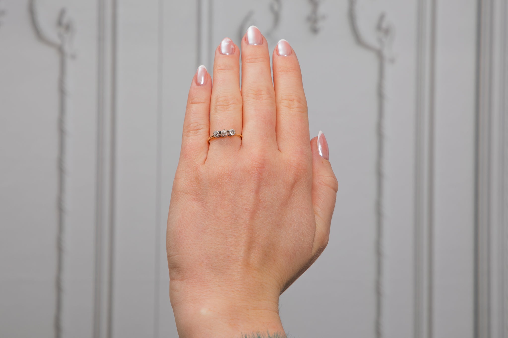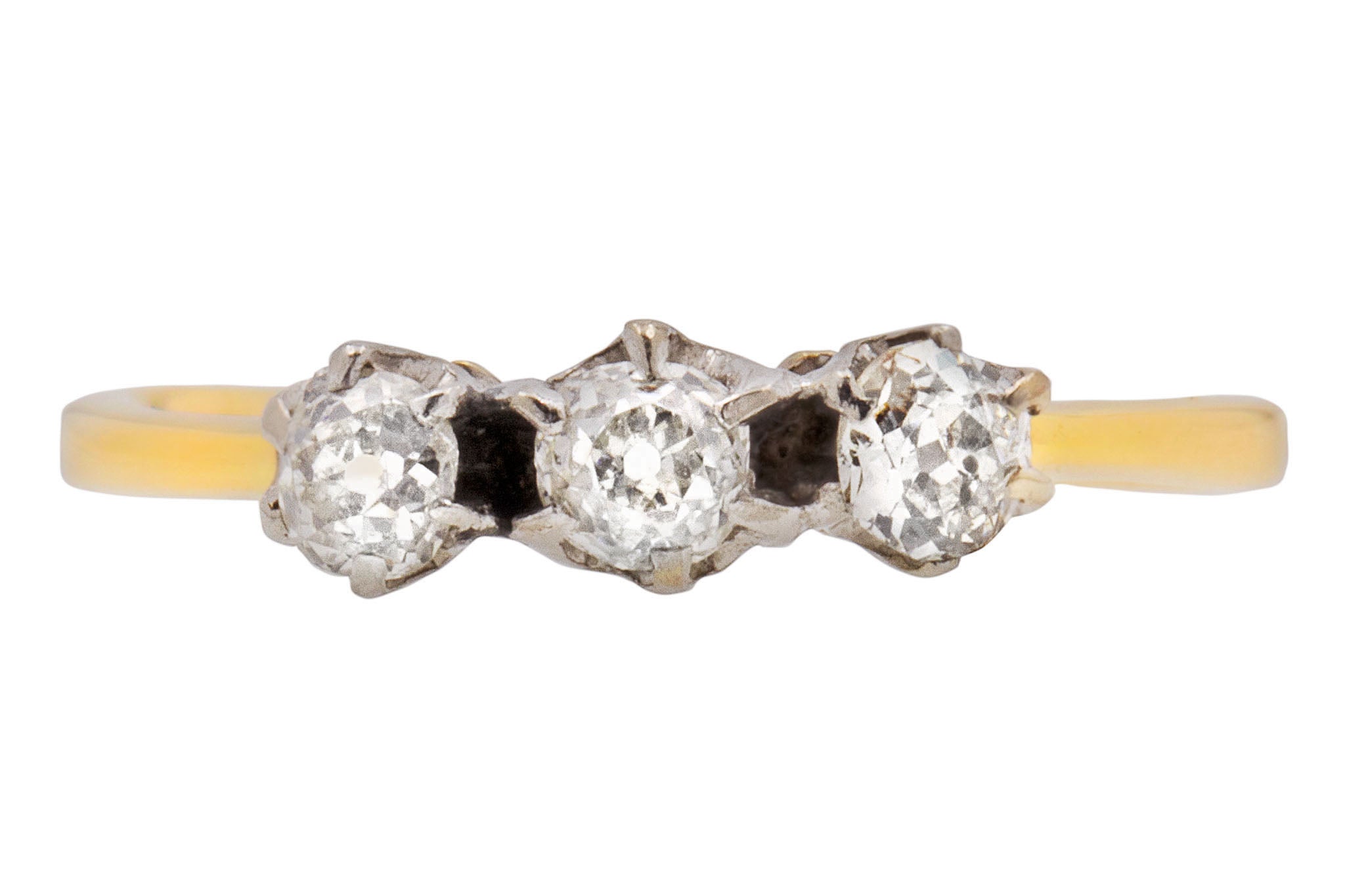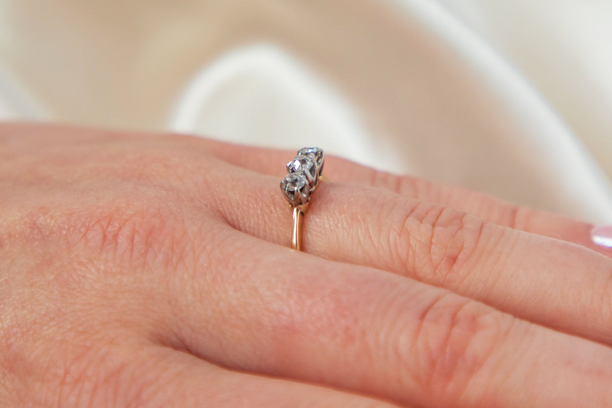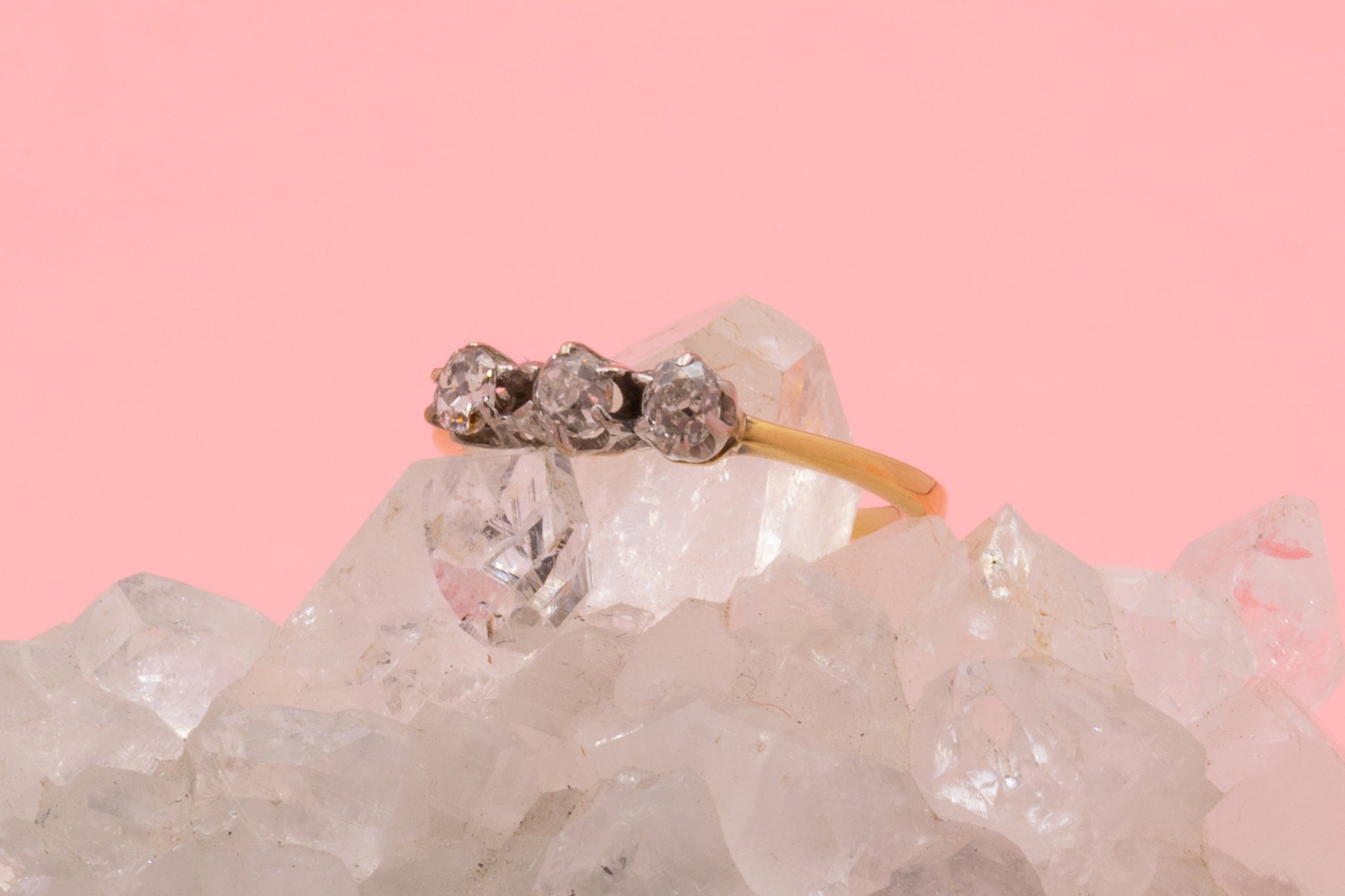 Bague trilogie antique en or 18 carats avec diamants, 0,30 ct