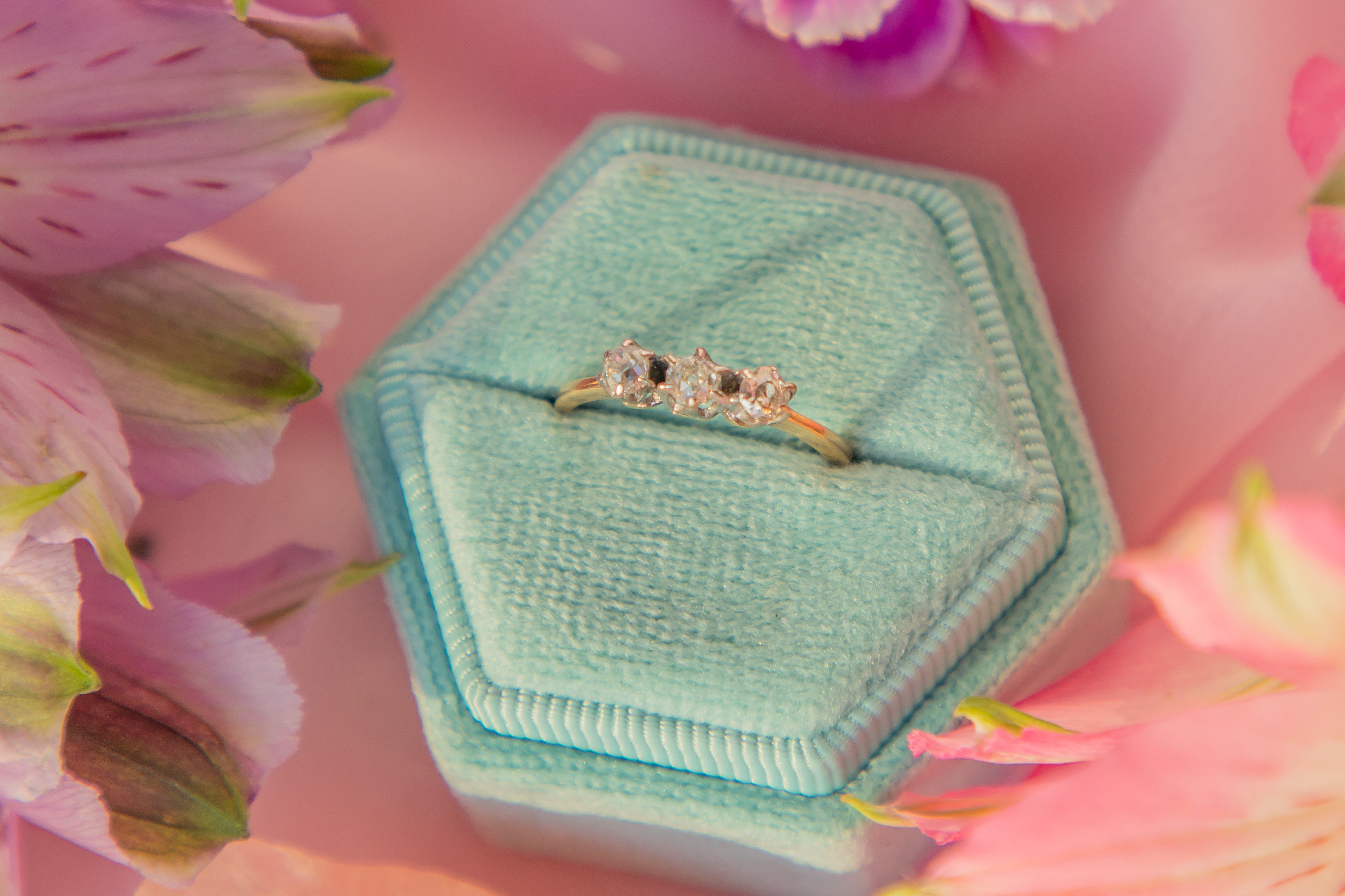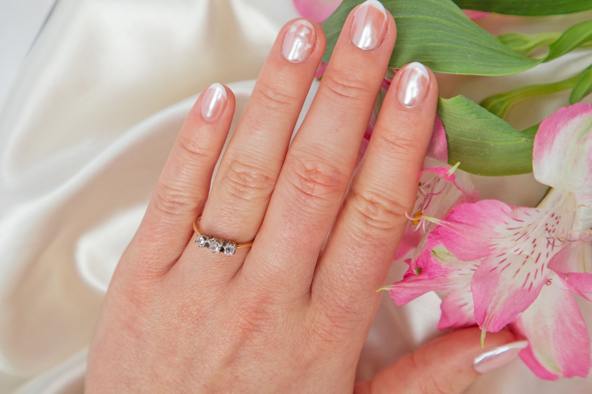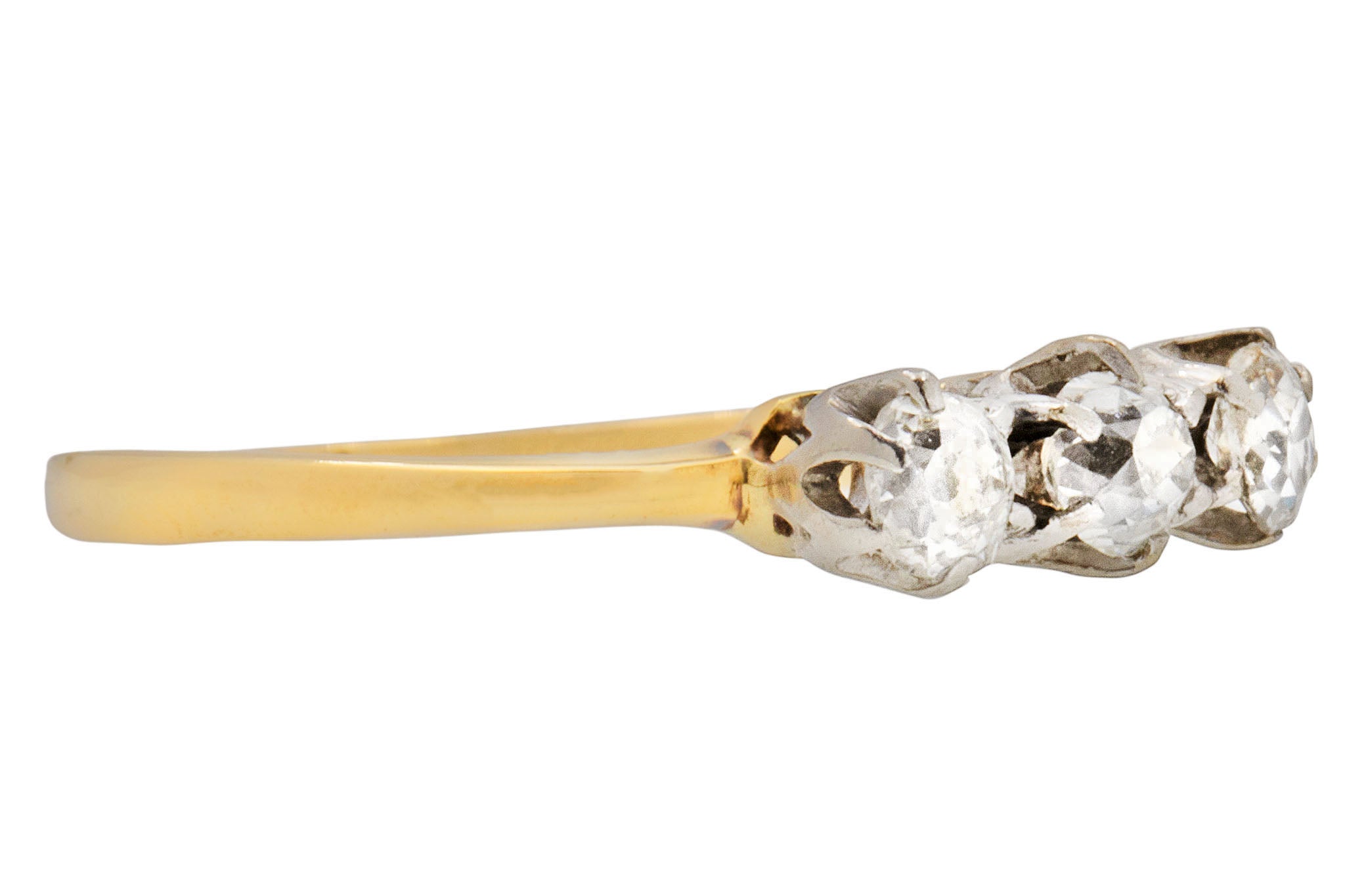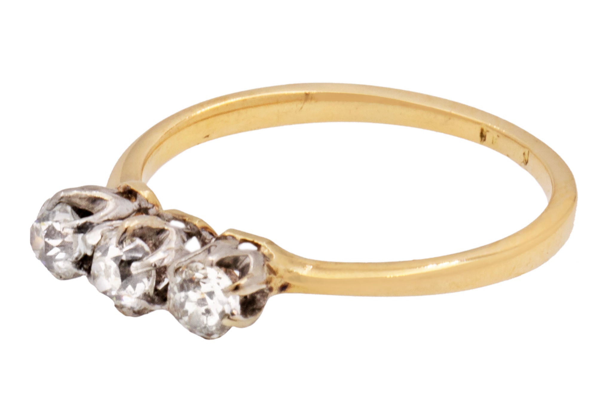 Bague trilogie antique en or 18 carats avec diamants, 0,30 ct