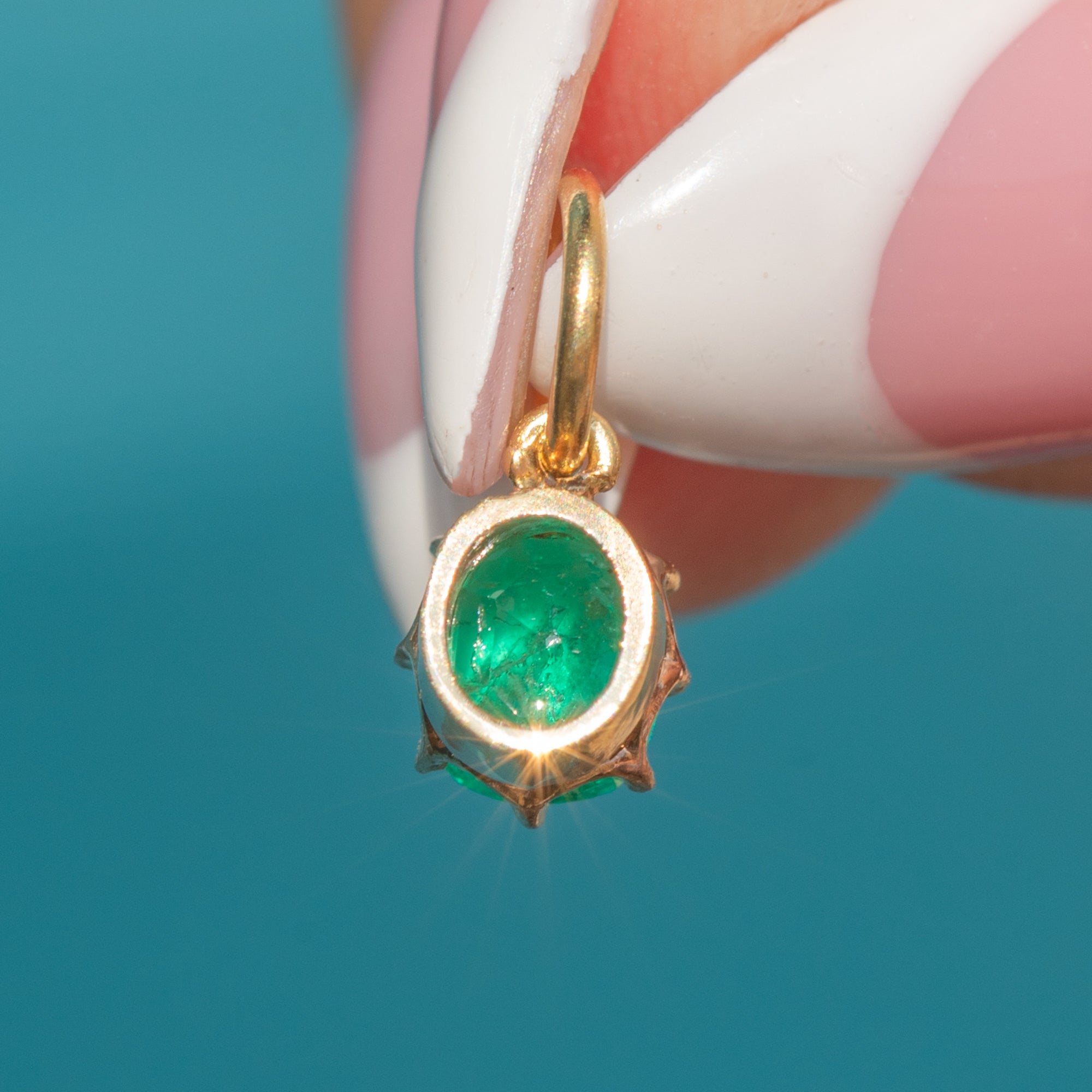 EXCELLENT: The Emerald is secure and displays bright, even colour. The Gold claw setting is in excellent condition, and the charm has been well preserved.