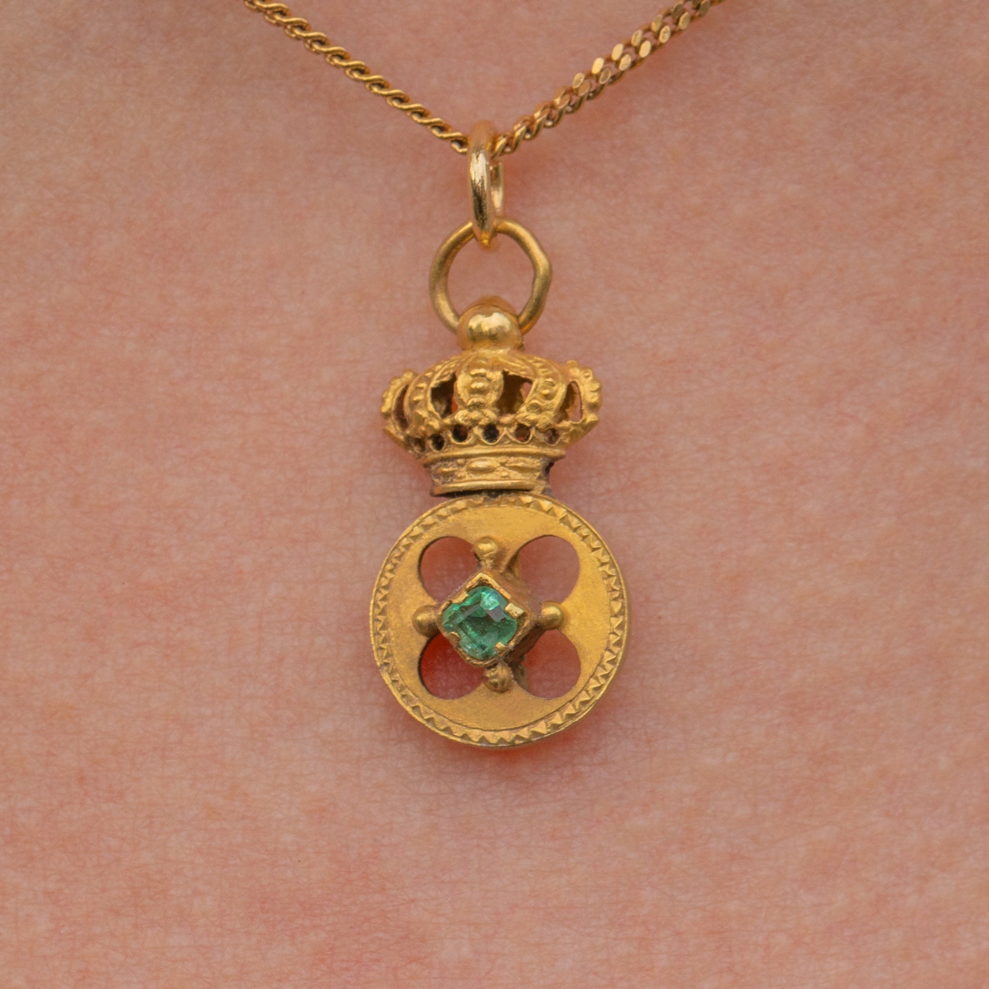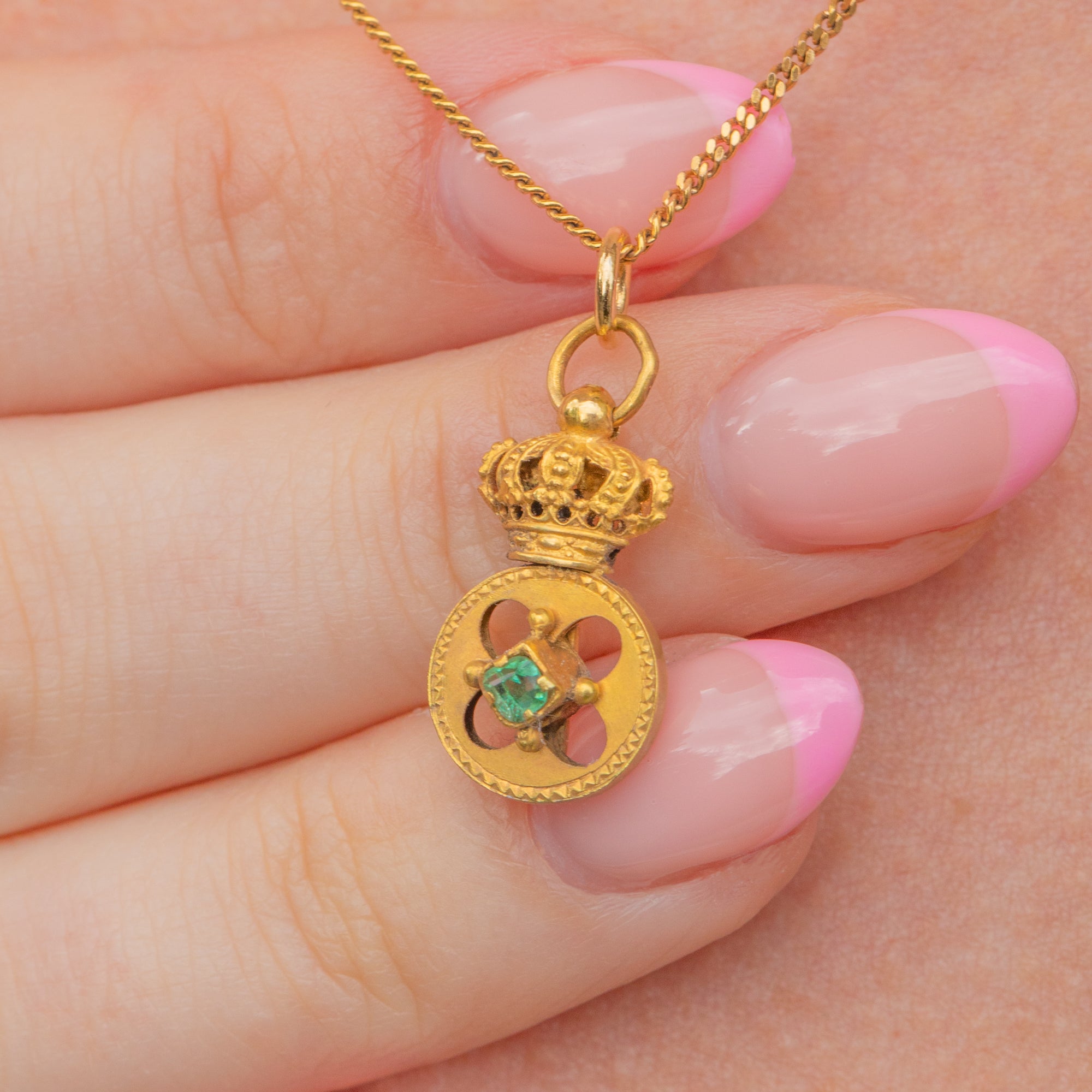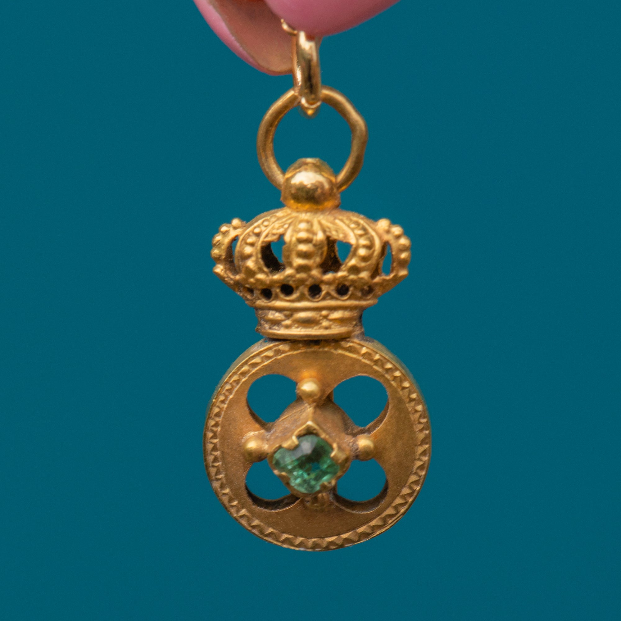 Antique 18ct Gold Emerald Crown Charm