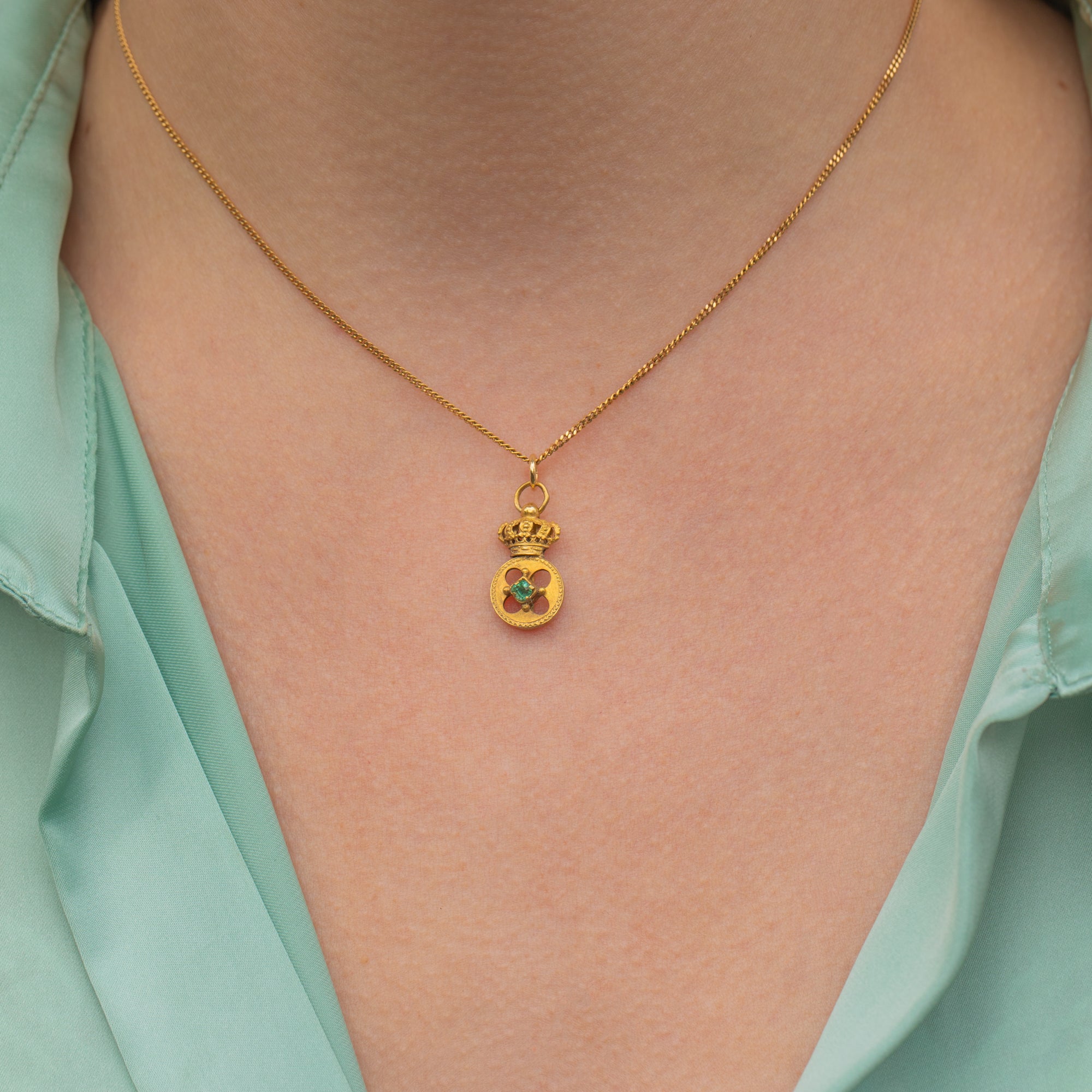 This antique 18ct Gold Emerald crown charm is the sweetest way to add some regal energy into your collection.