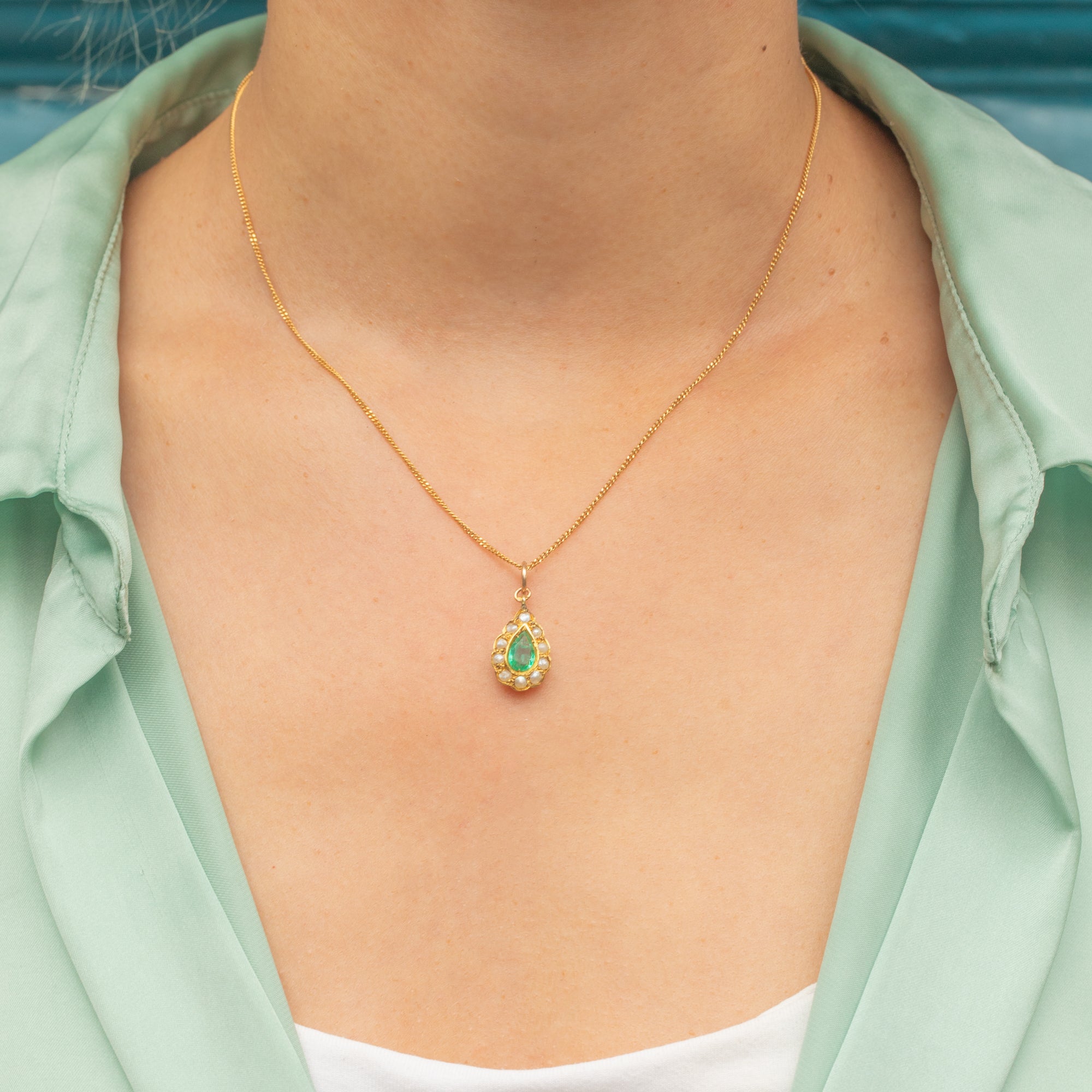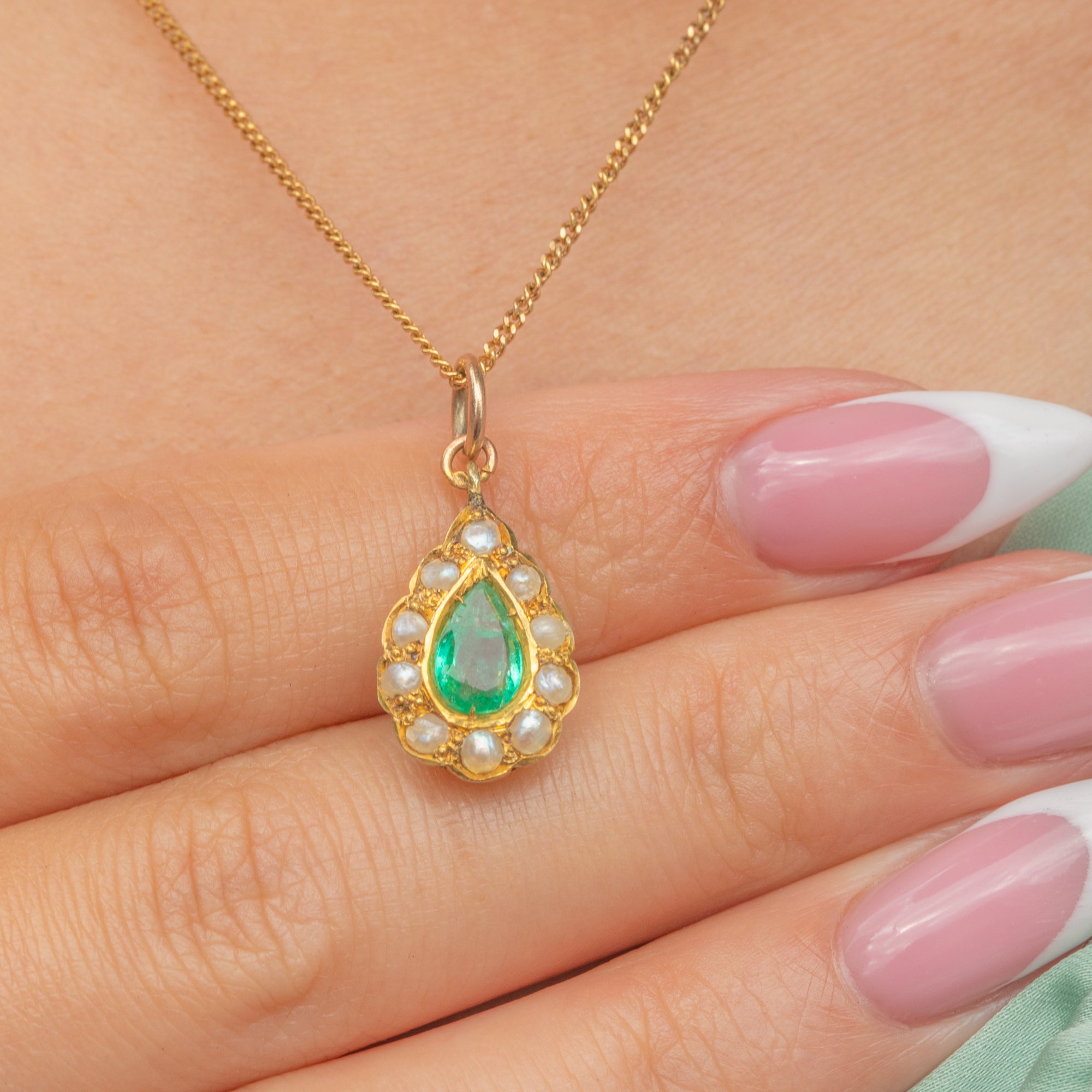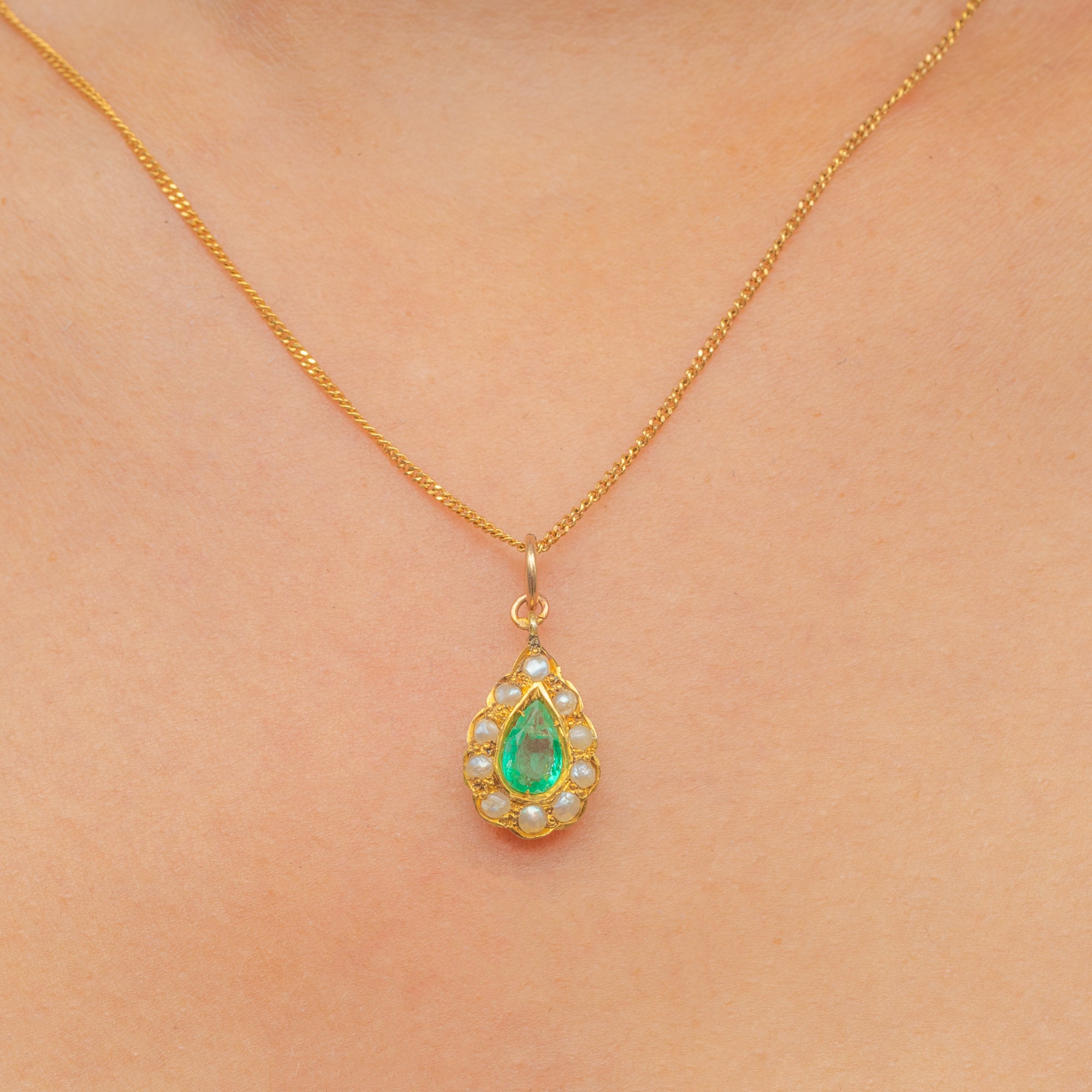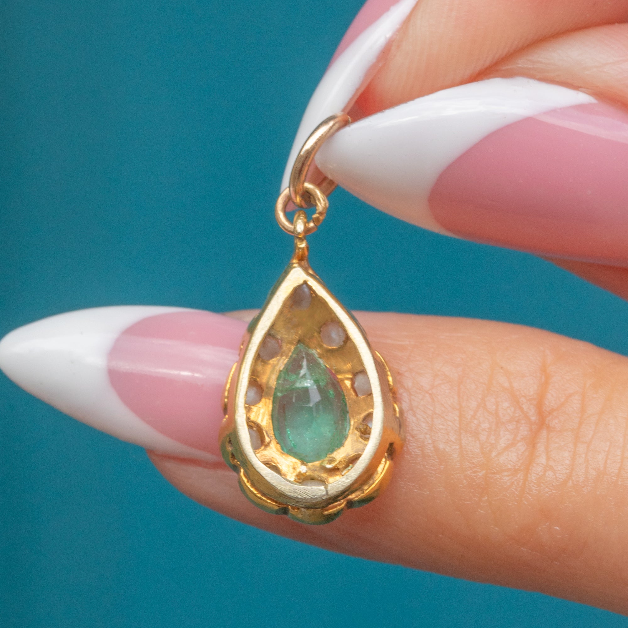 Antique 18ct Gold Emerald Pearl Pear Charm
