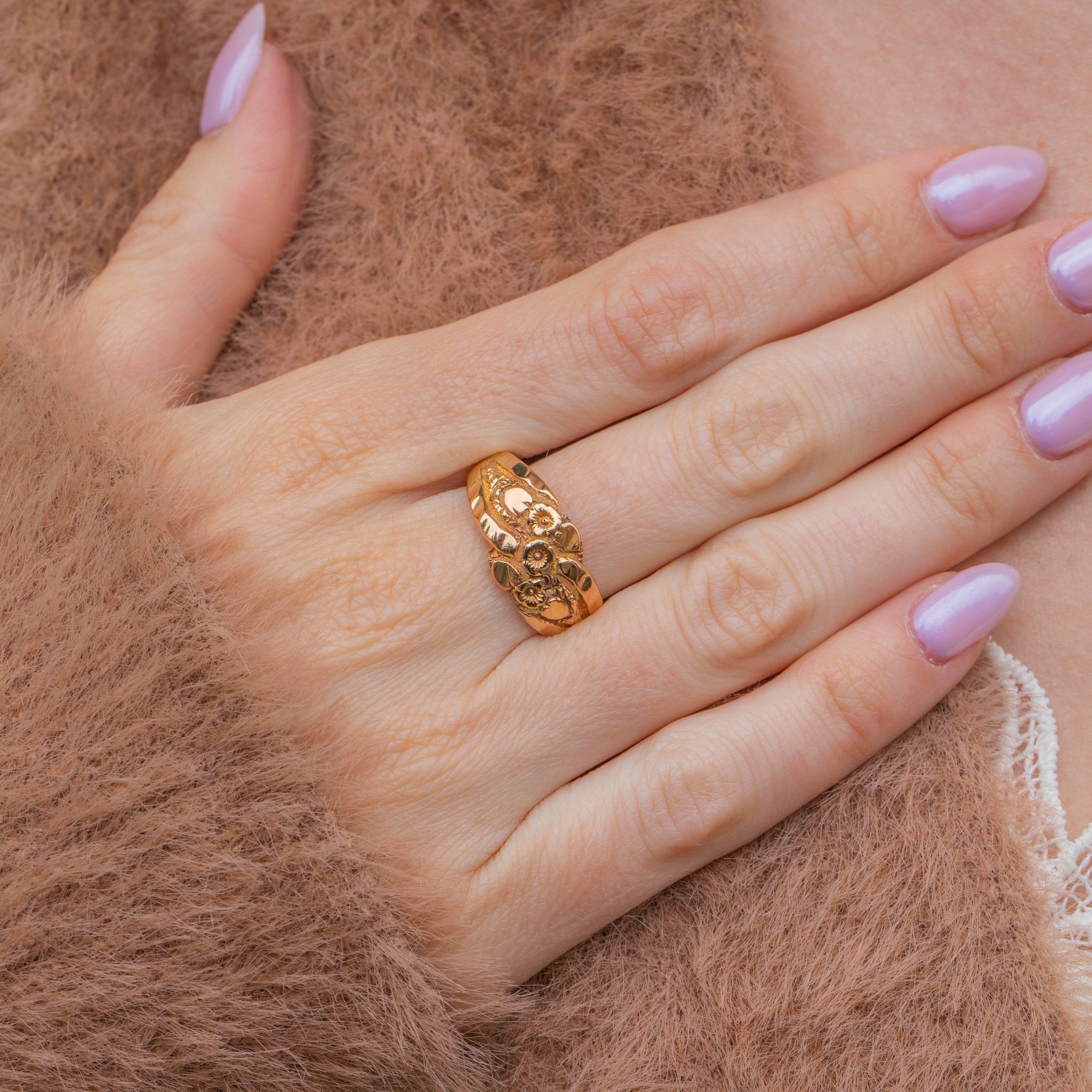 Exuding a sweet, fanciful charm, this Edwardian Gold ring is perfect for everyday wear and will stack seamlessly amongst your other favourite rings. If you are looking for a unique wedding band, this chunky delight will make a wonderful choice!