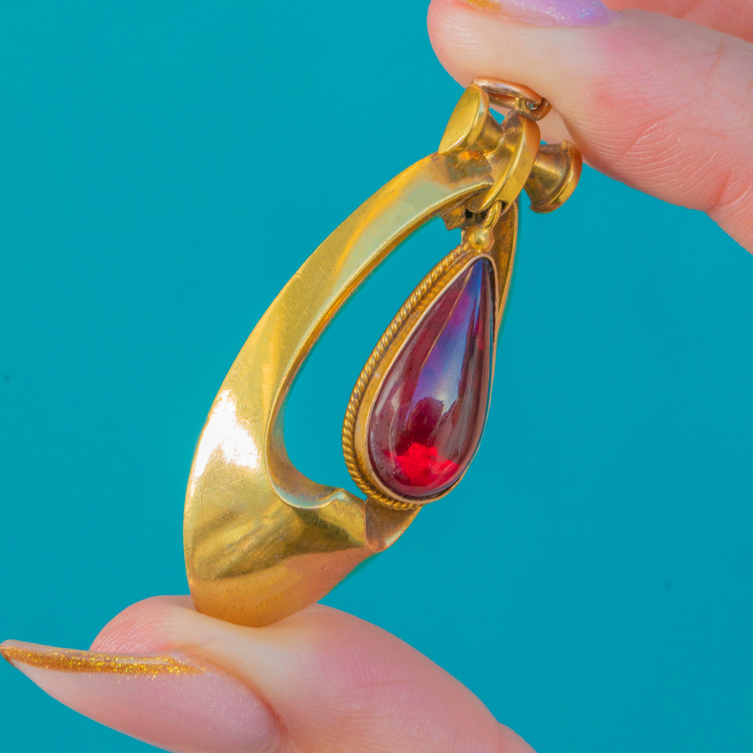 Pendentif ancien en or 18 carats style Renaissance étrusque avec grenat, 1884