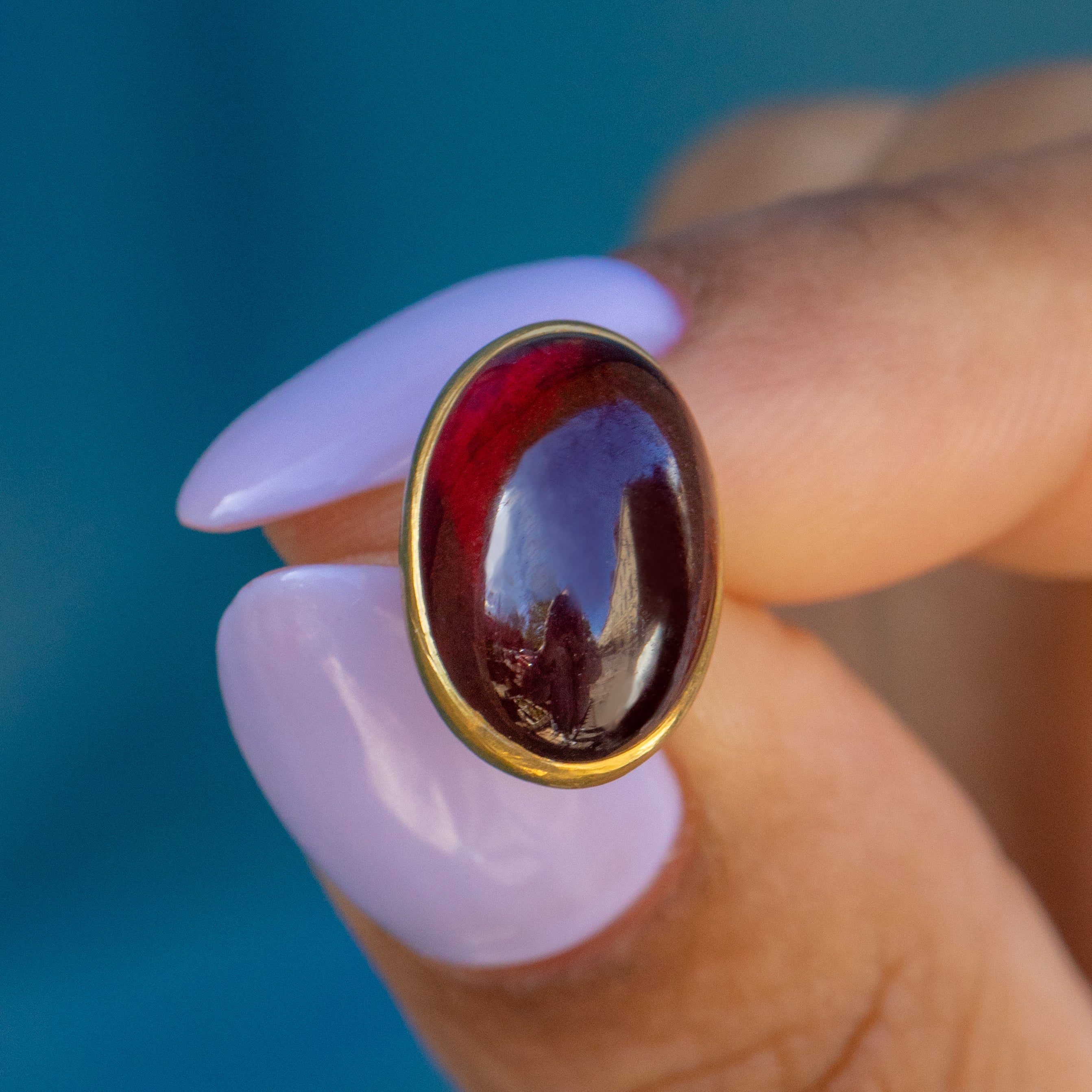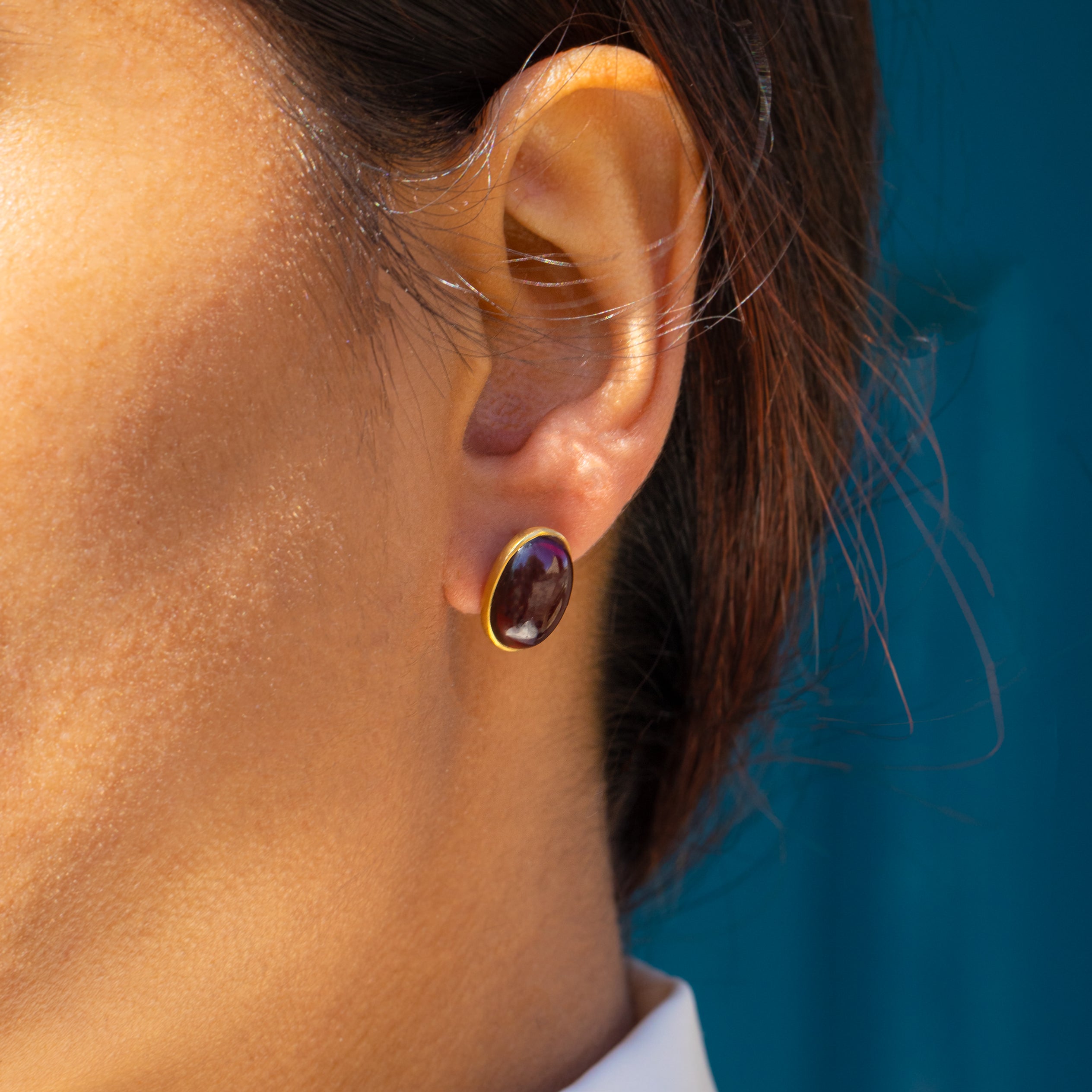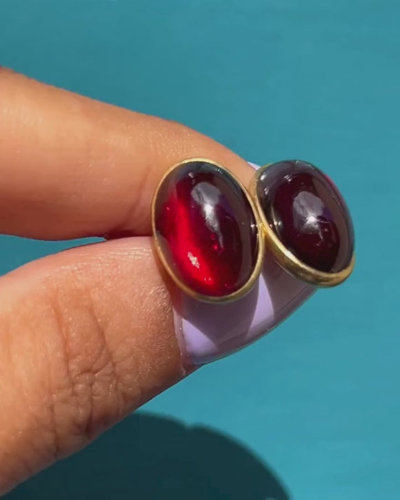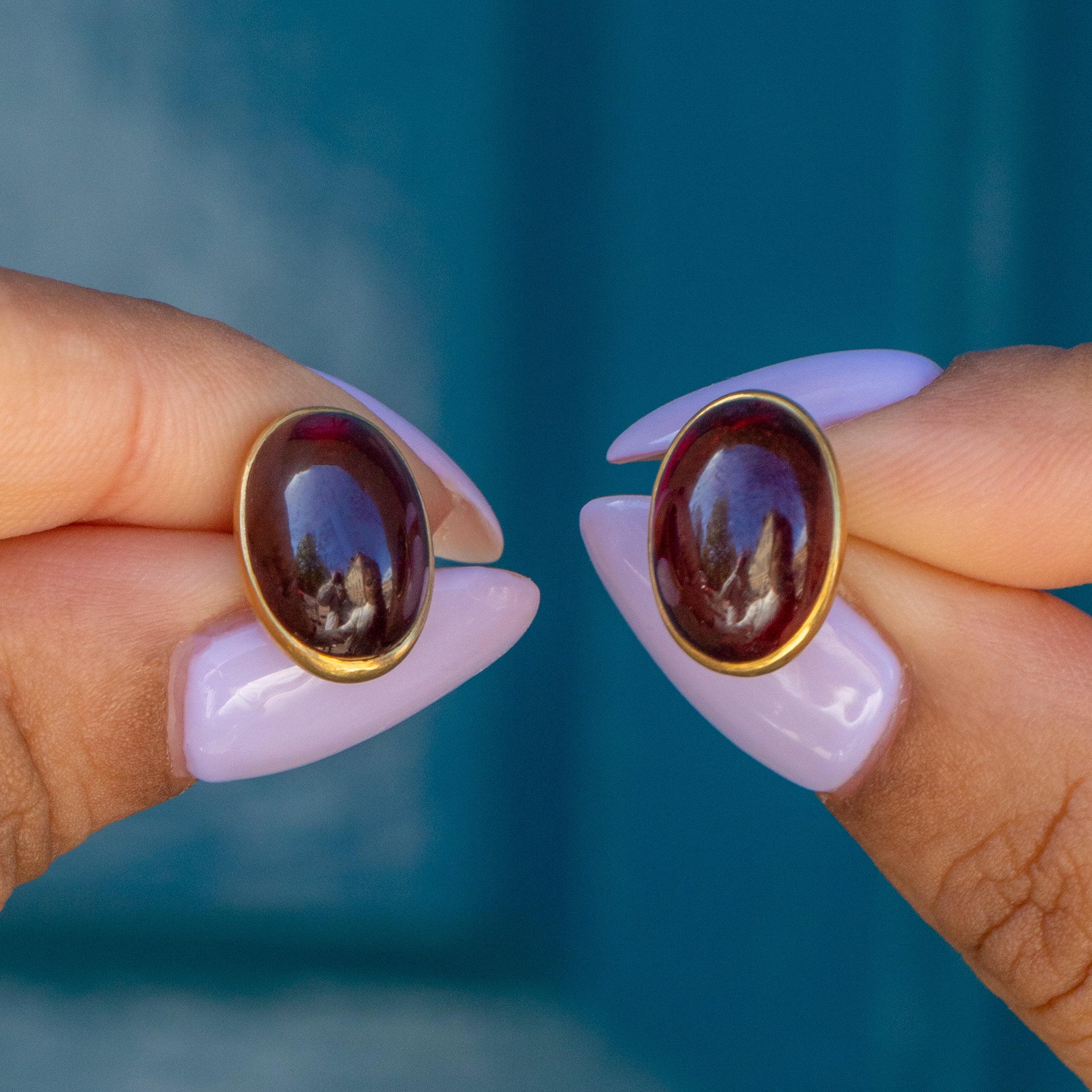 Boucles d'oreilles clous anciennes en or 18 carats avec cabochon grenat, 11,40 ct