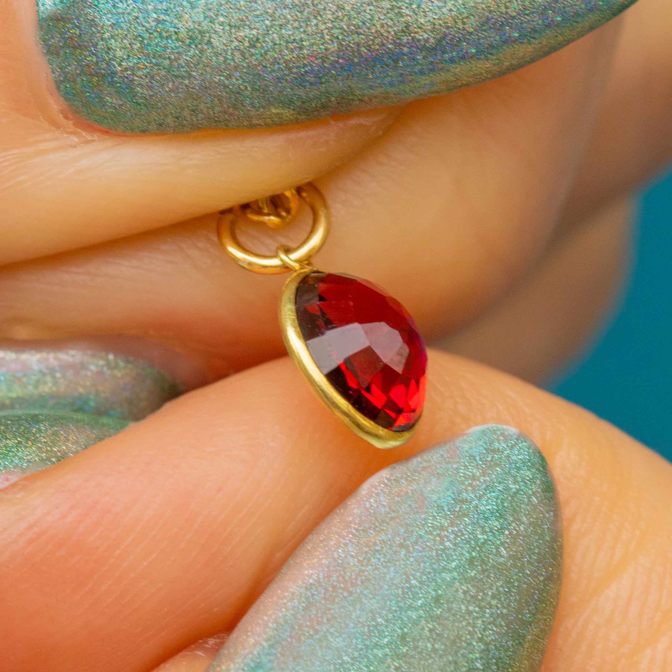 Her dainty size packs a serious punch with highly saturated hues, and once suspended from an antique Gold chain, this Victorian Garnet charm will bring the perfect amount of sparkle.