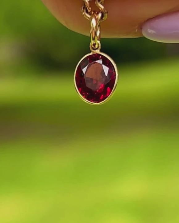 Bring a pop of colour to any attire with the pool of sangria and flashes of crimson this 1.10ct antique 18ct Gold Garnet charm provides!