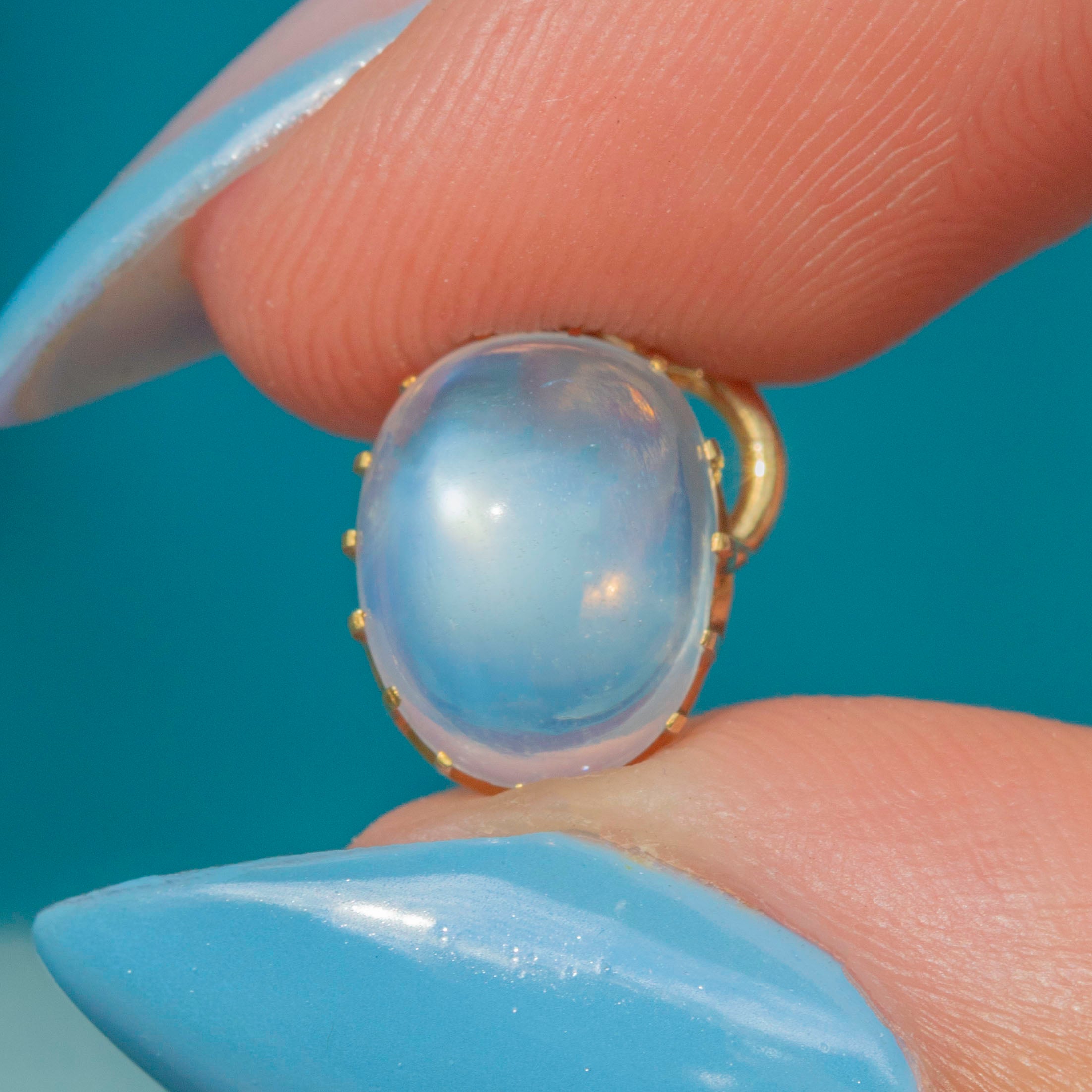 EXCELLENT: The 18ct Gold is brightly saturated and the Moonstone is smooth and securely displayed with its claw settings.