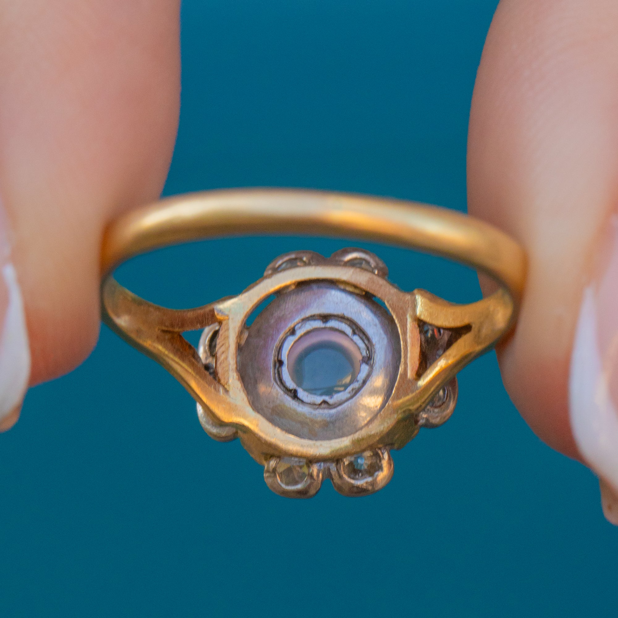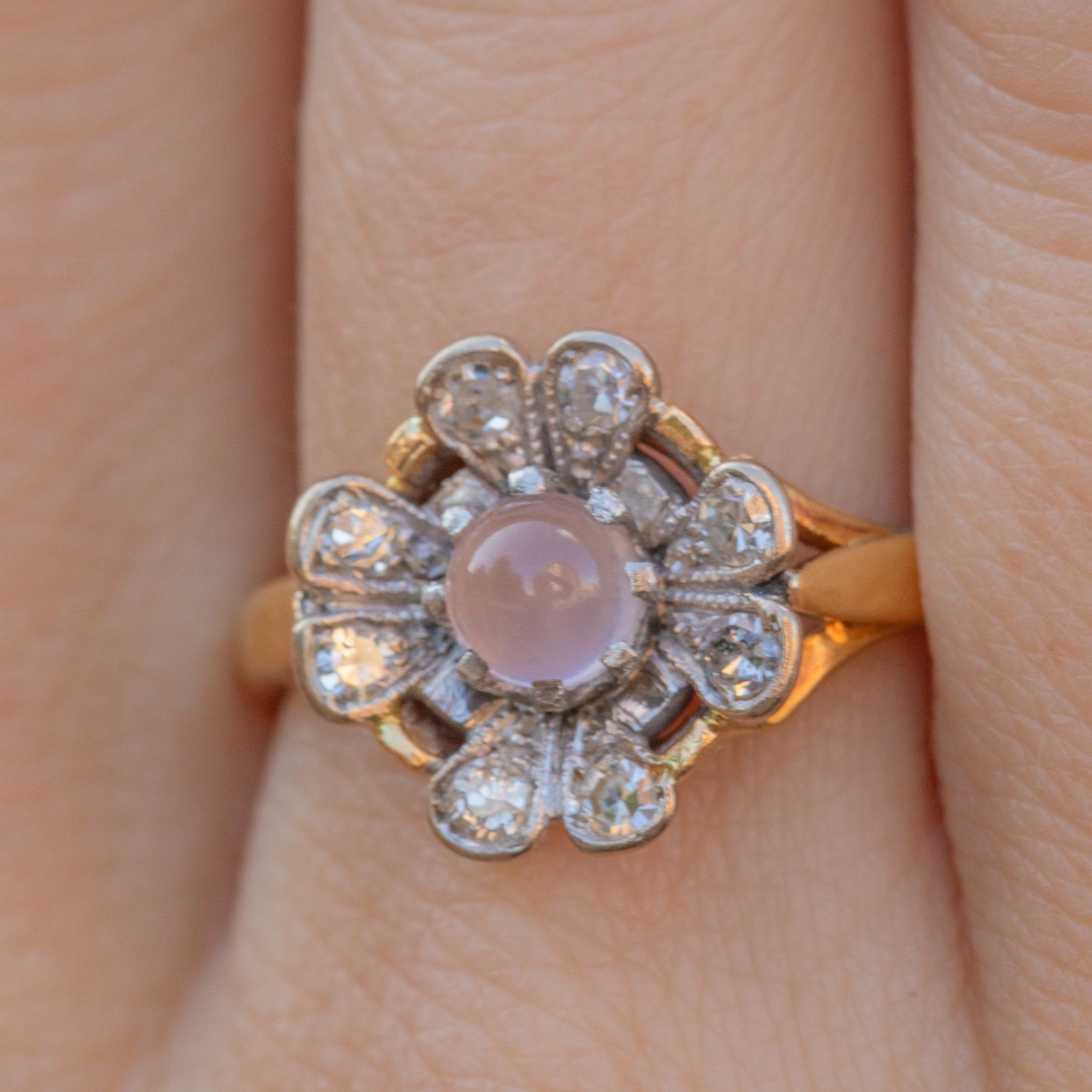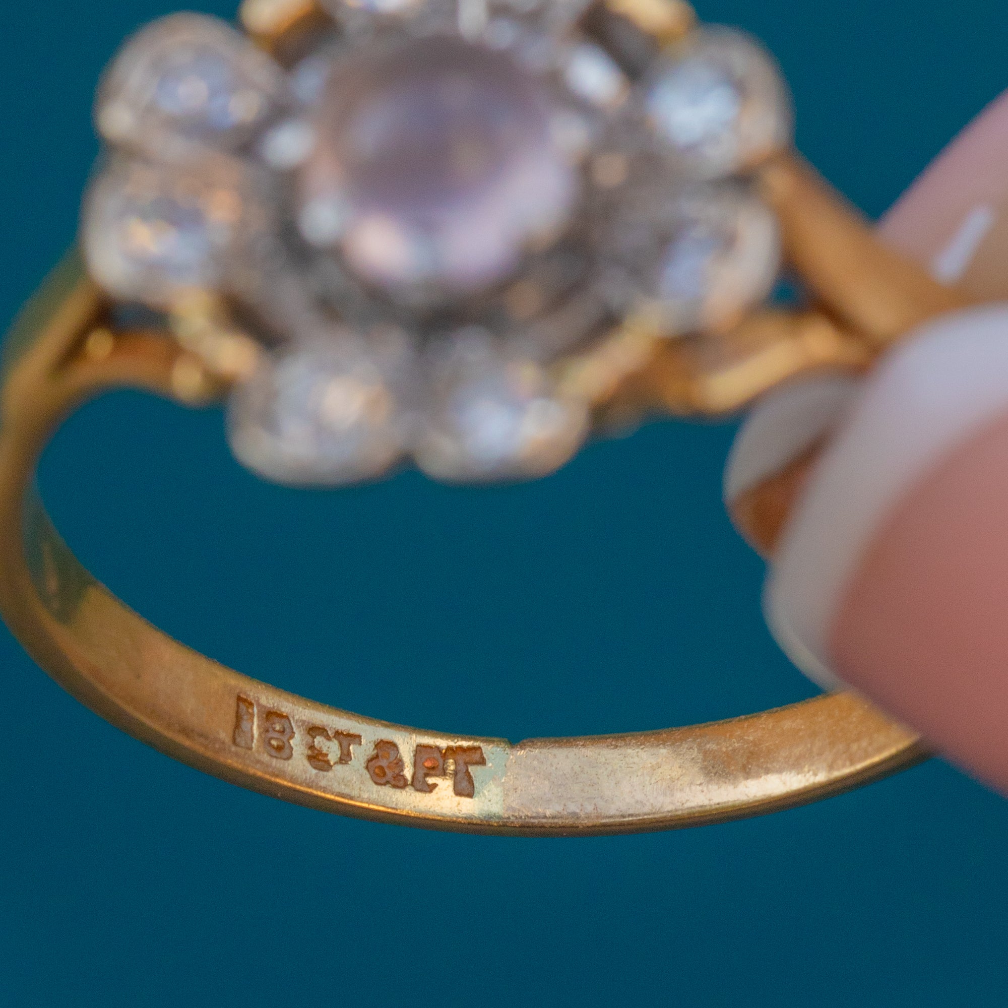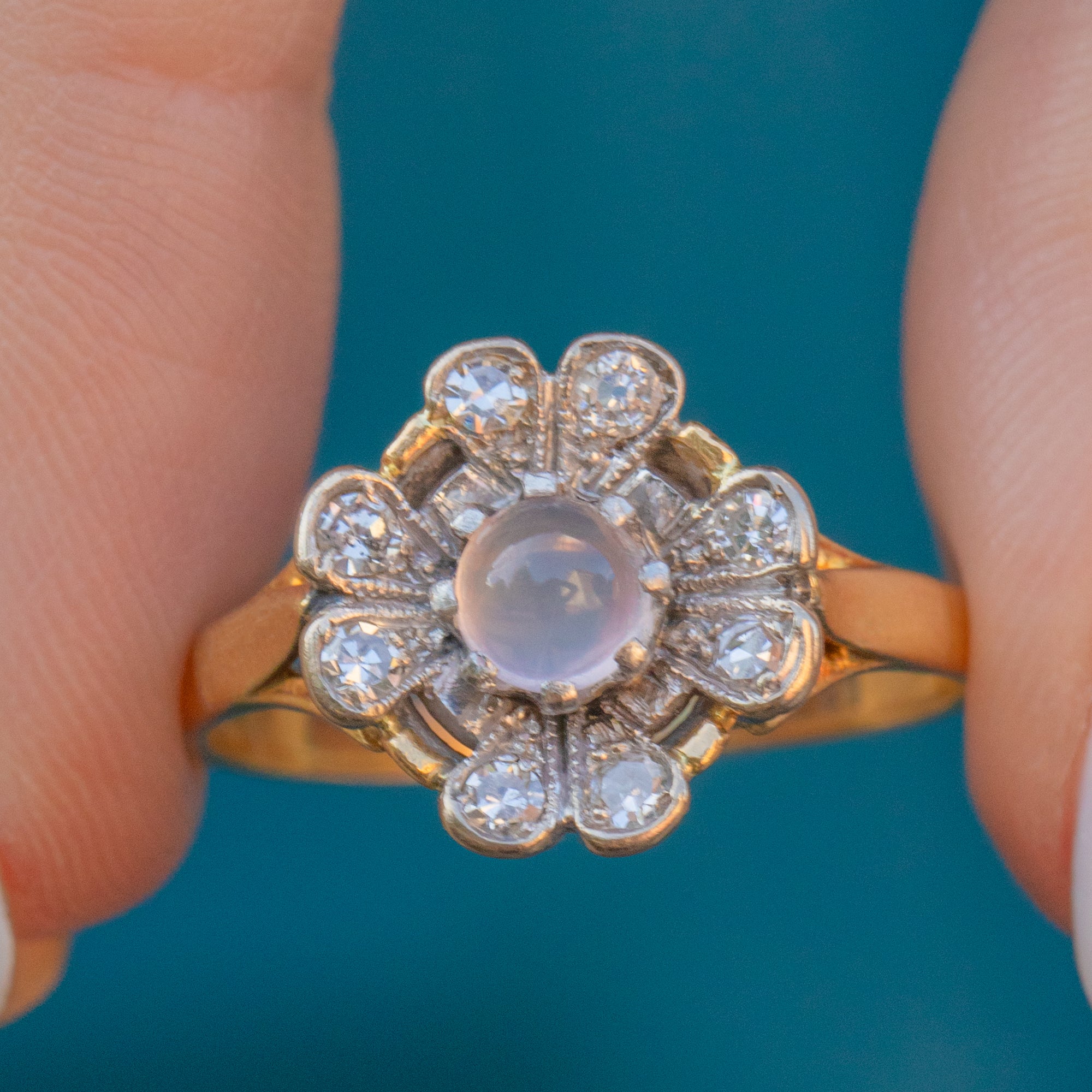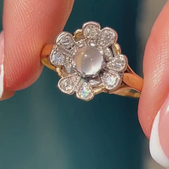 Antique 18ct Gold Moonstone Diamond Flower Ring