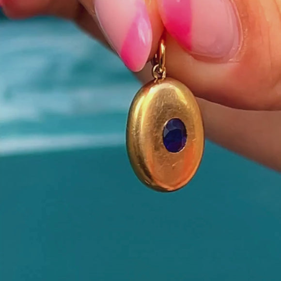 Antique 18ct Gold Natural Ceylon Sapphire Pendant