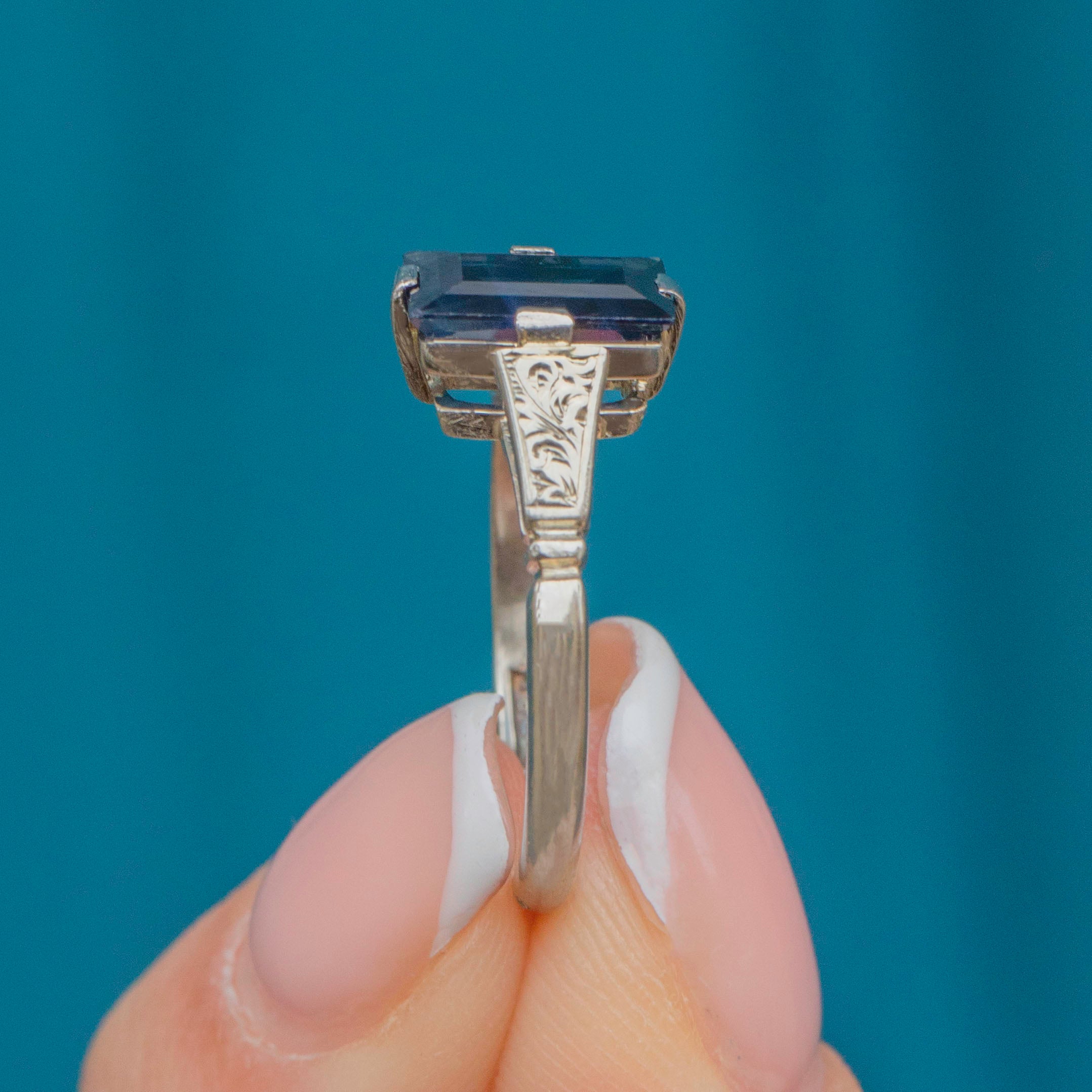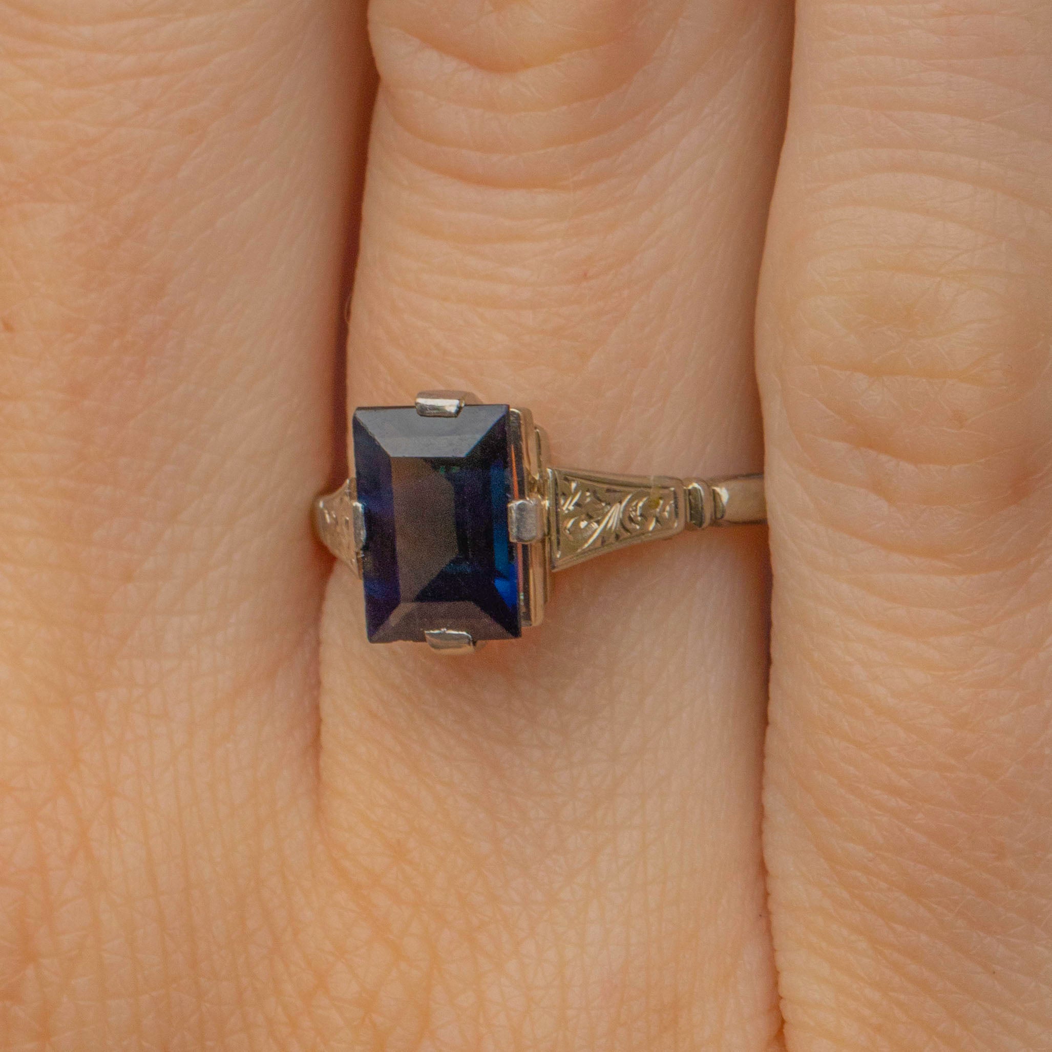 The perfect "Something old, something blue" to wear down the aisle on your special day, or just a superb piece of jewellery to add to your collection! With a lovely wide band feeling luxurious against the skin, this Art Deco ring is ideal for everyday wear.