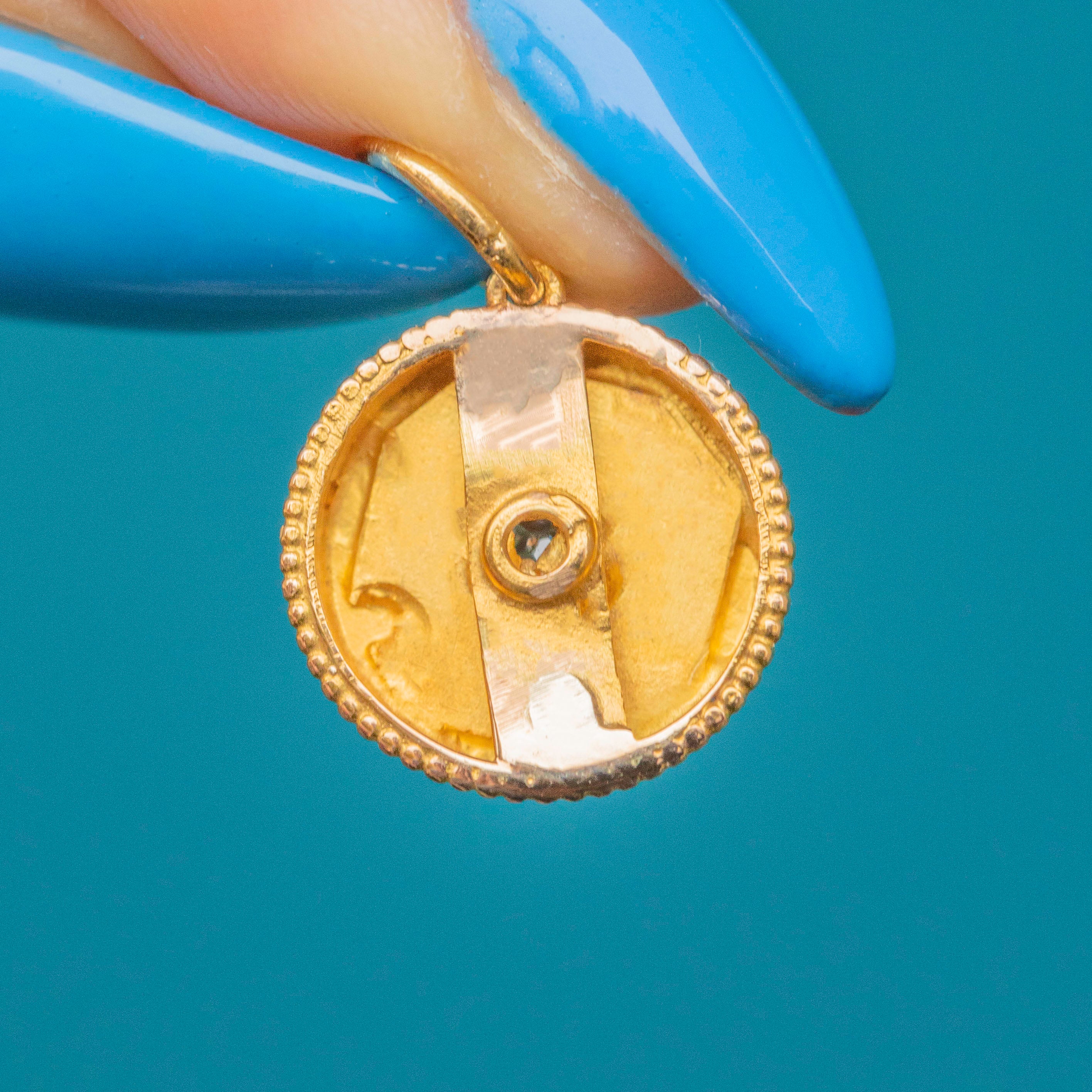 Antique 18ct Gold Old-Mine-Cut Diamond Disk Charm