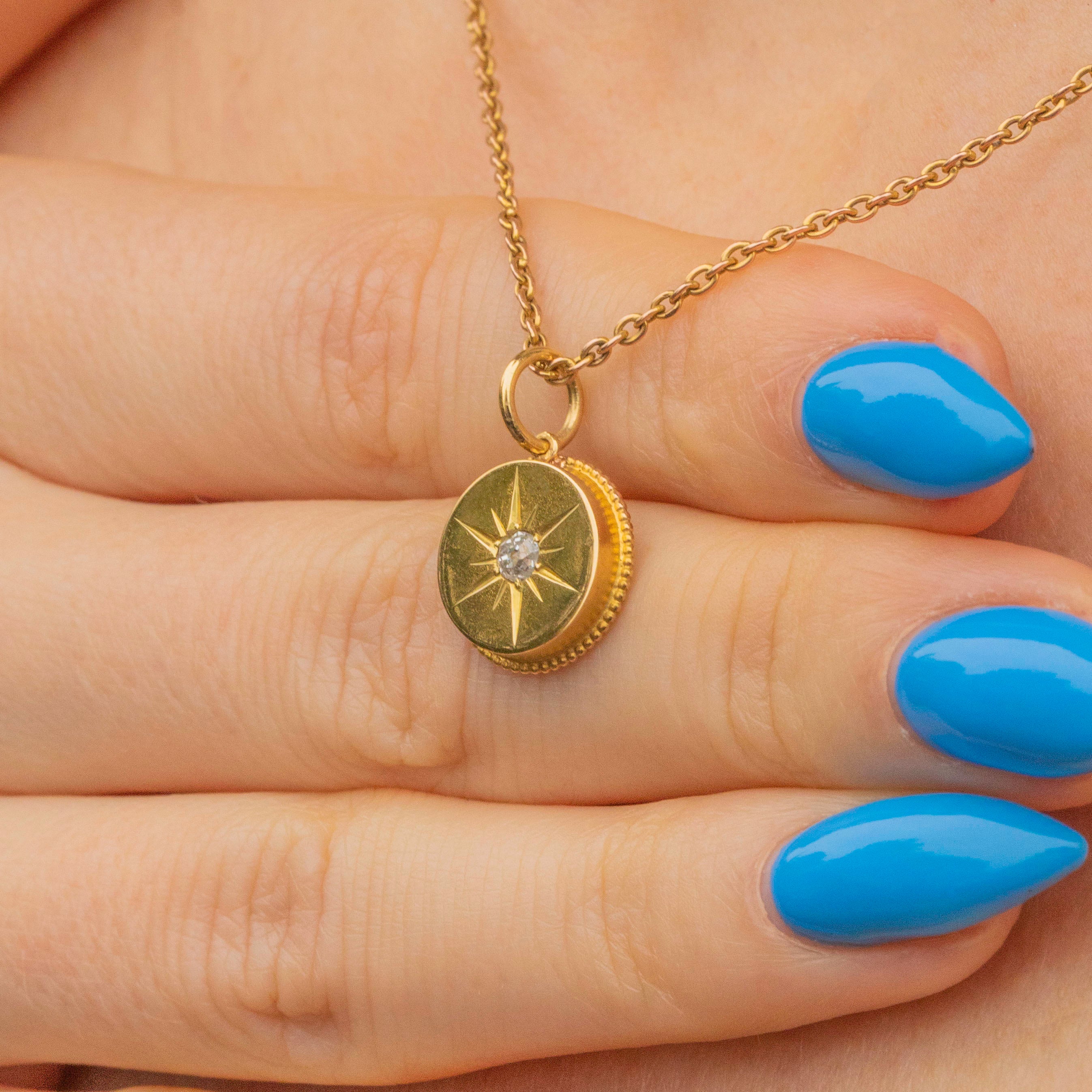 This antique 18ct Gold old-mine-cut Diamond disk charm is a celestial beauty!