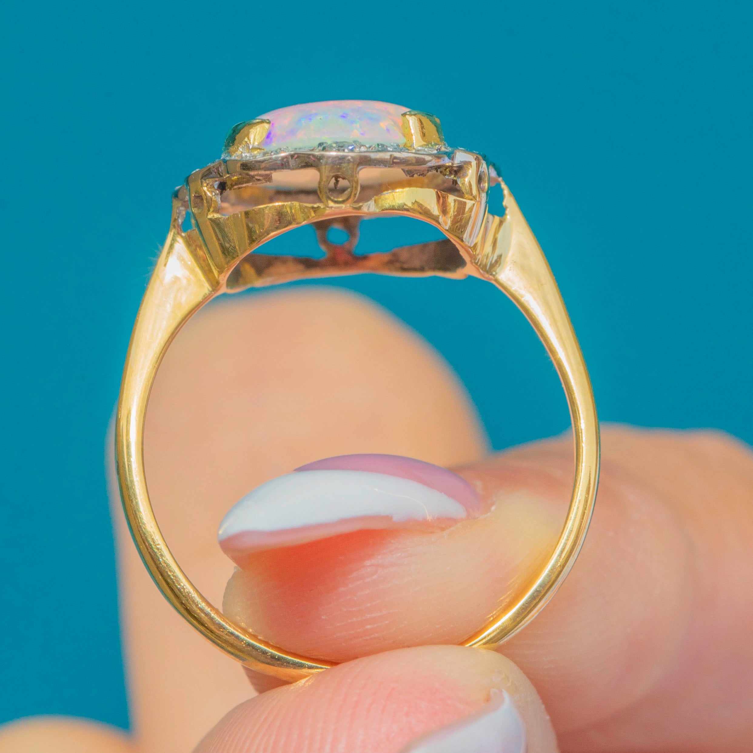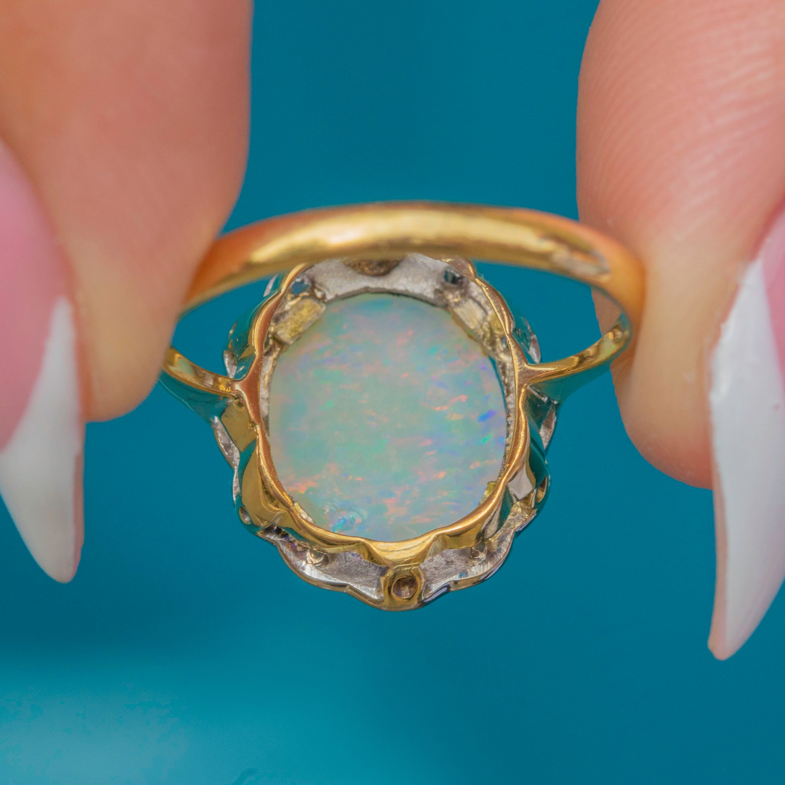 Antique 18ct Gold Opal Diamond Cluster Dress Ring 1.10ct Opal