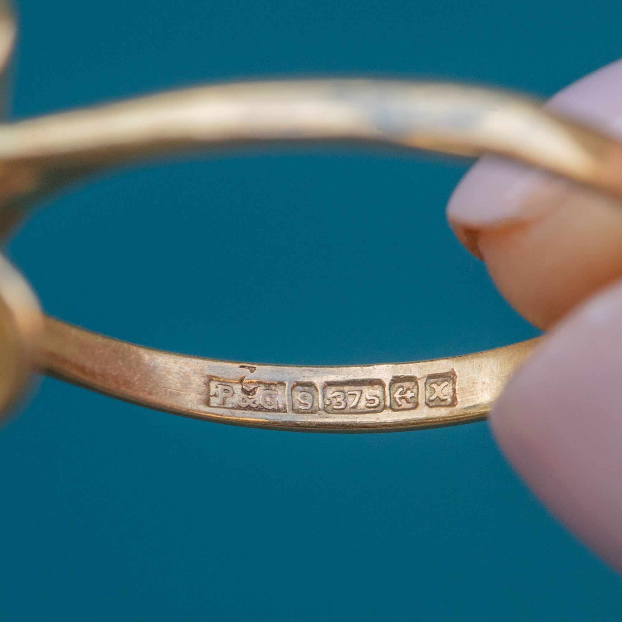 HALLMARKS: Maker's Mark P&G, 9, .375, Birmingham Assay, date letter x for the year 1897.
