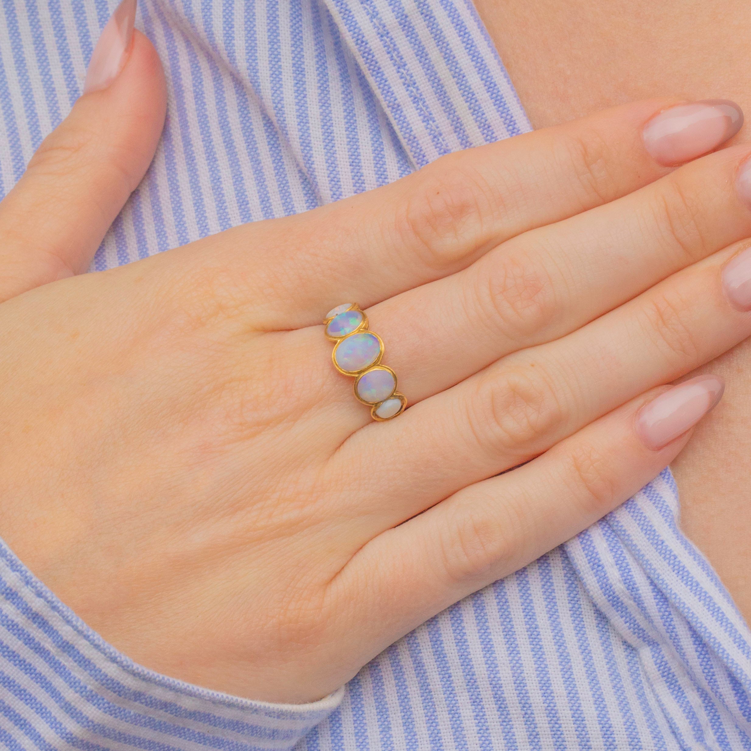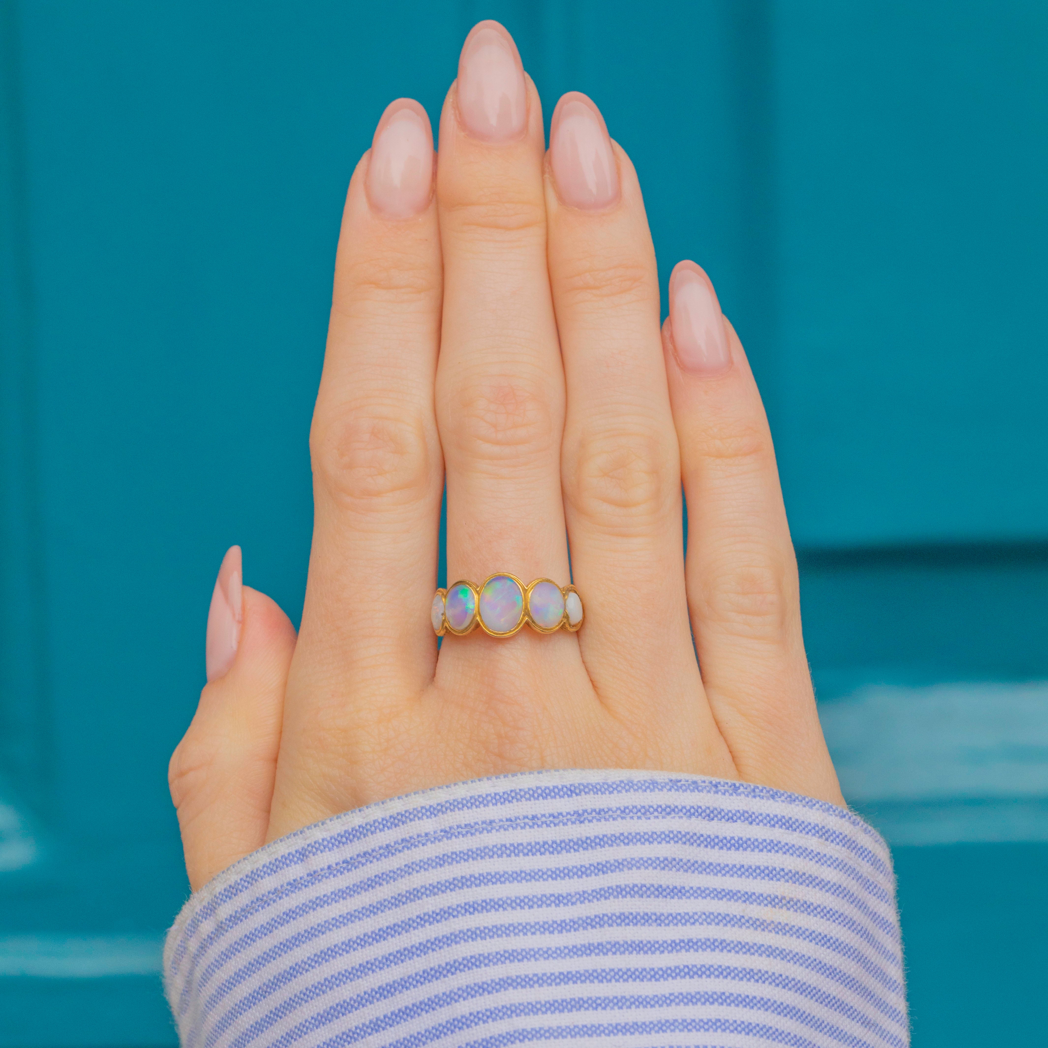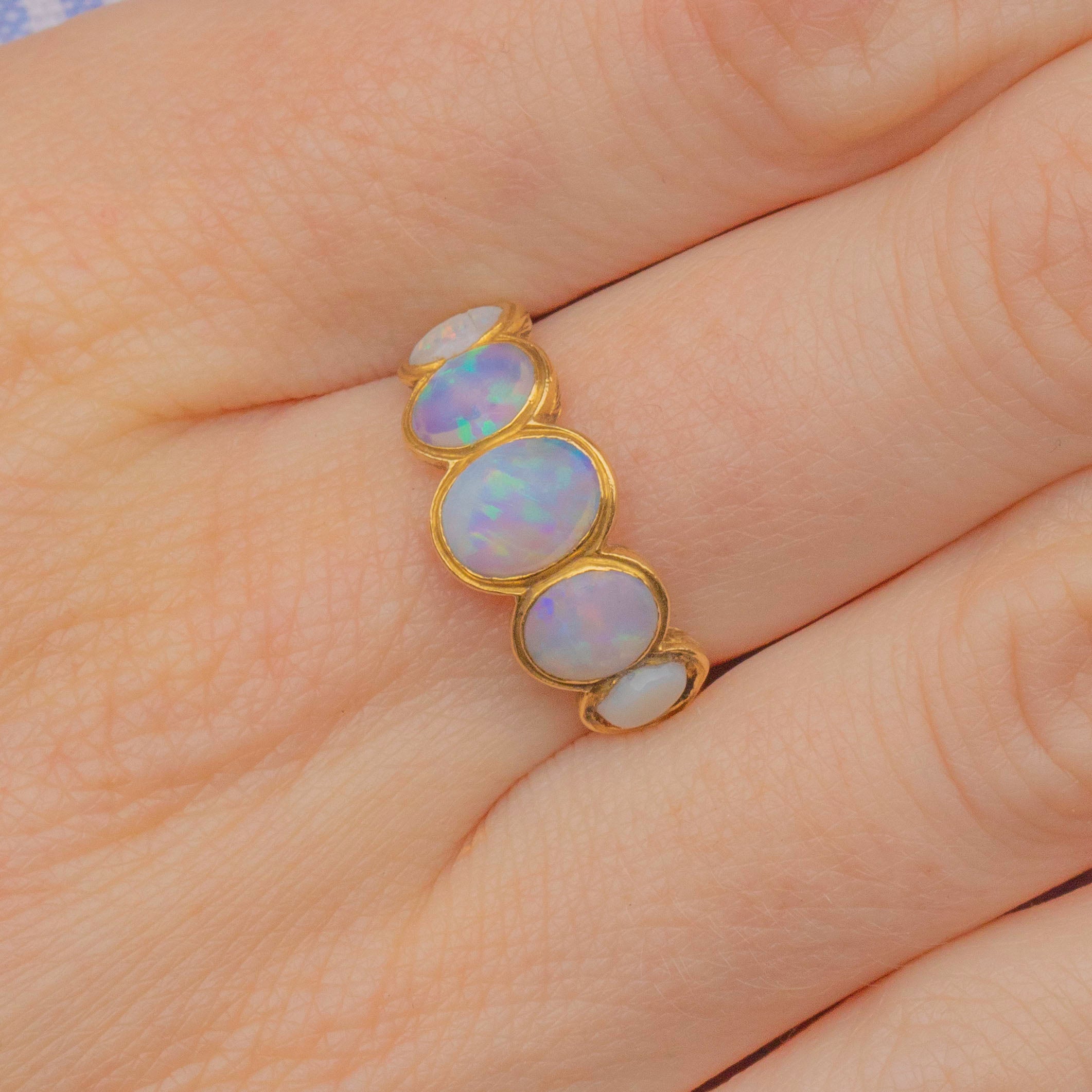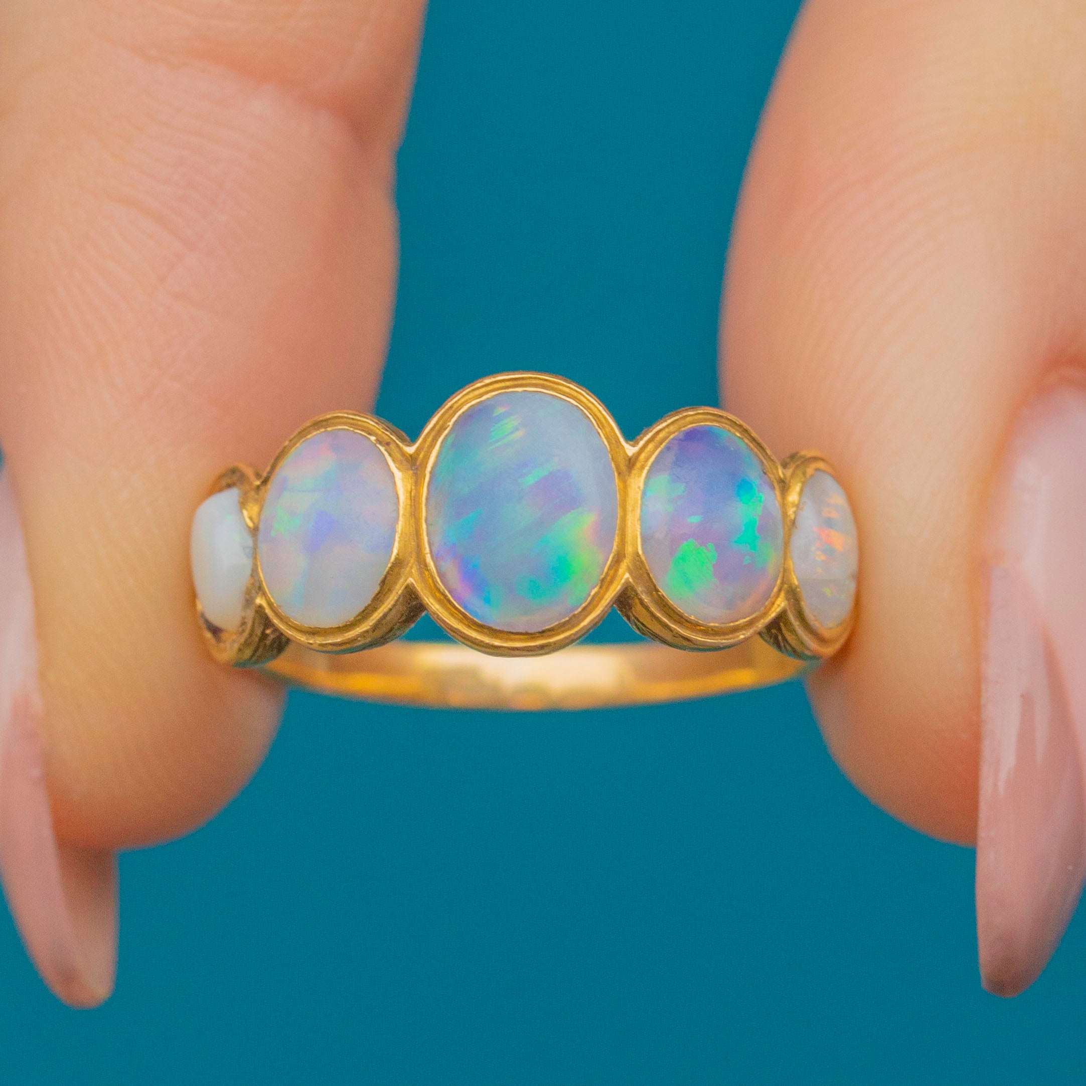 This stunning Antique 18ct Gold Opal Five Stone Ring is a sublime example of Victorian jewellery making mastery.