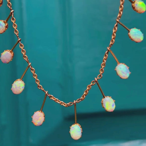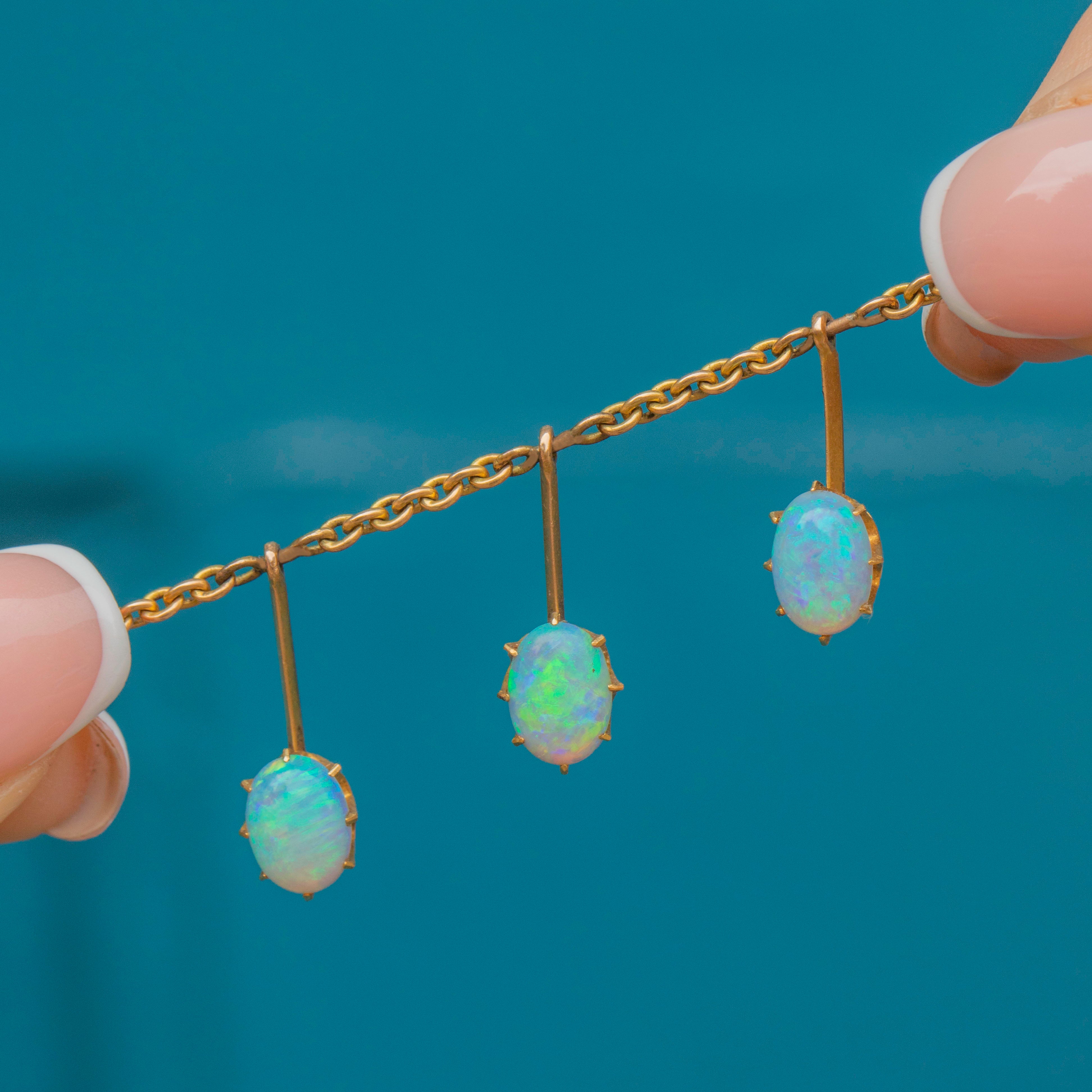 Antique 18ct Gold Opal Fringe Drop Necklace, 7.48ct