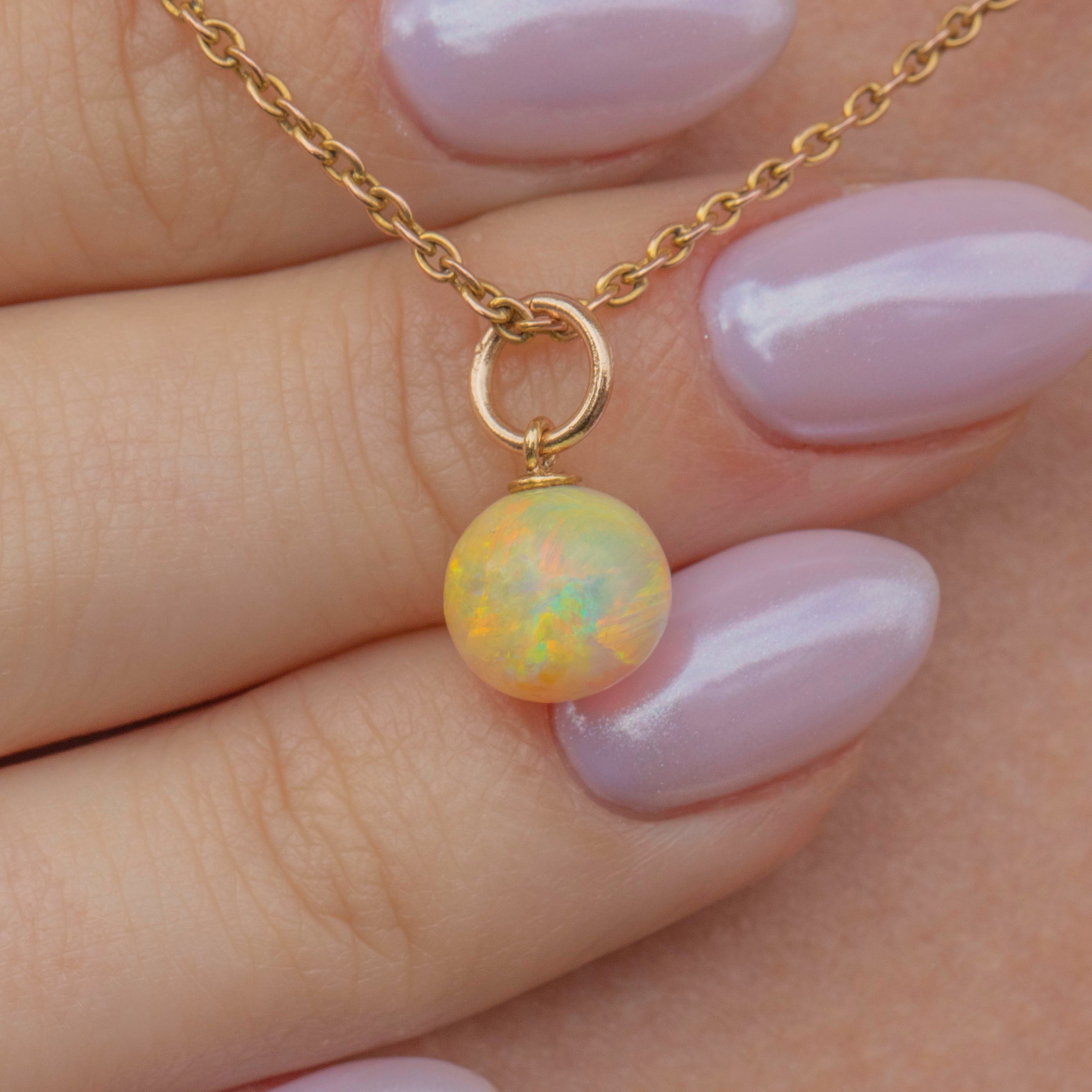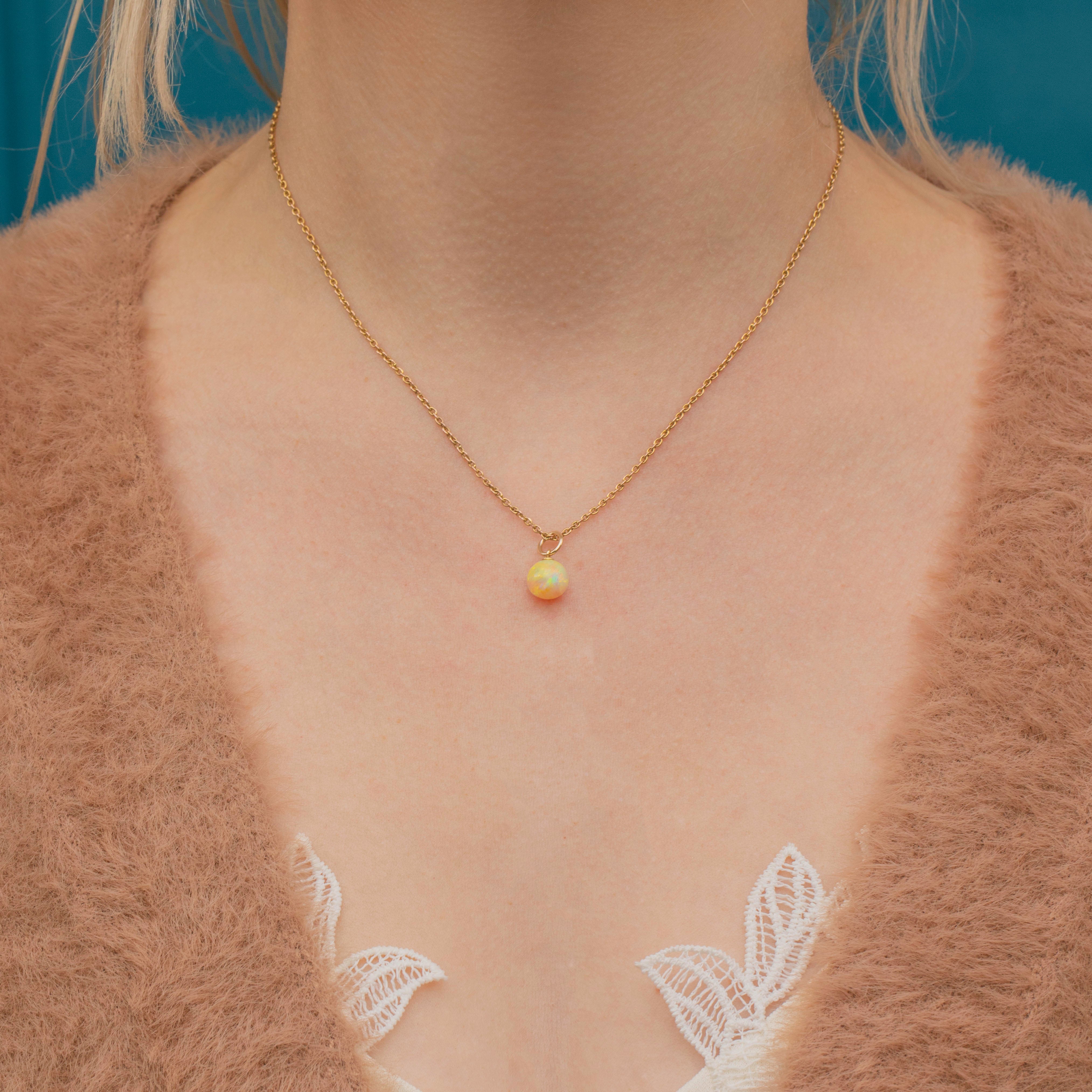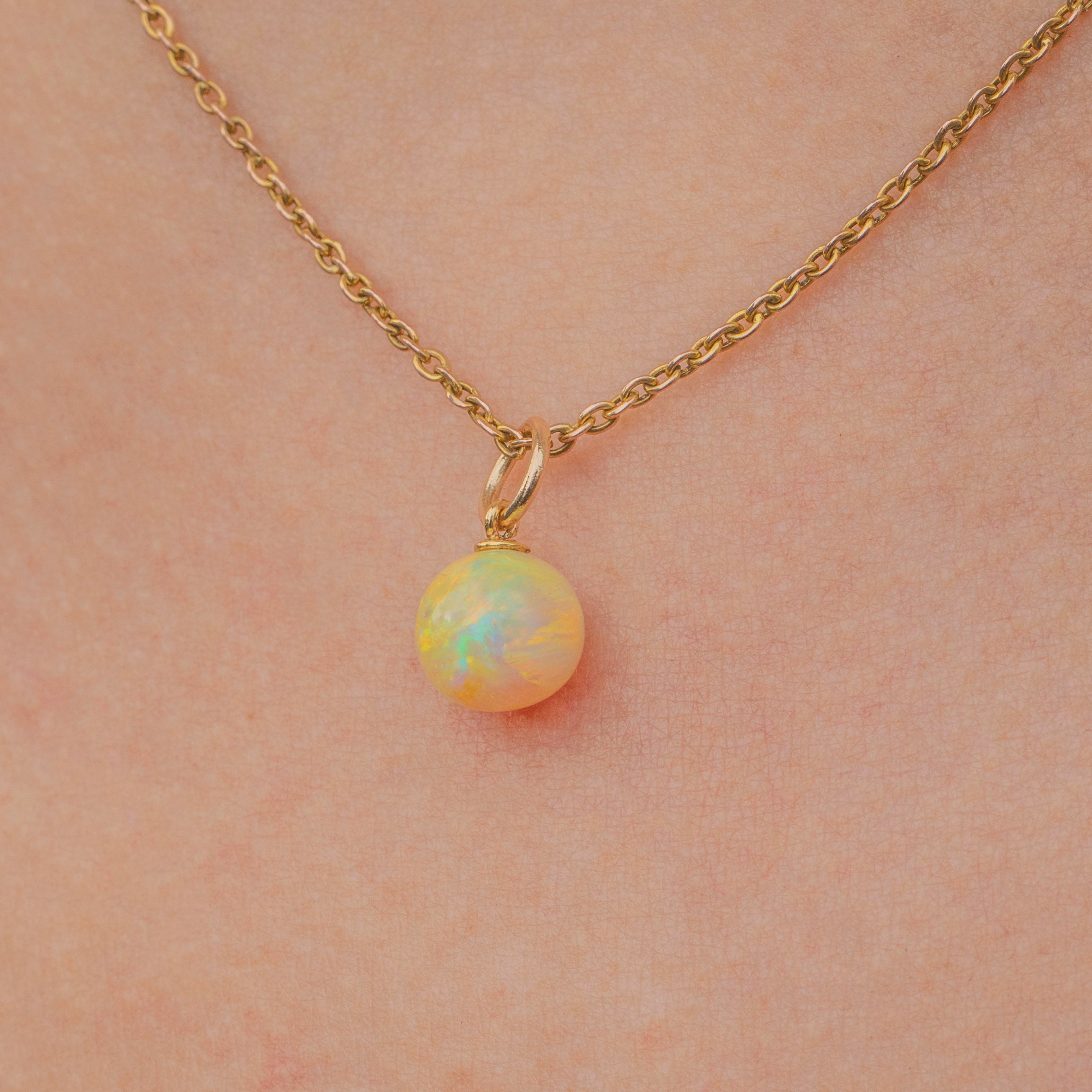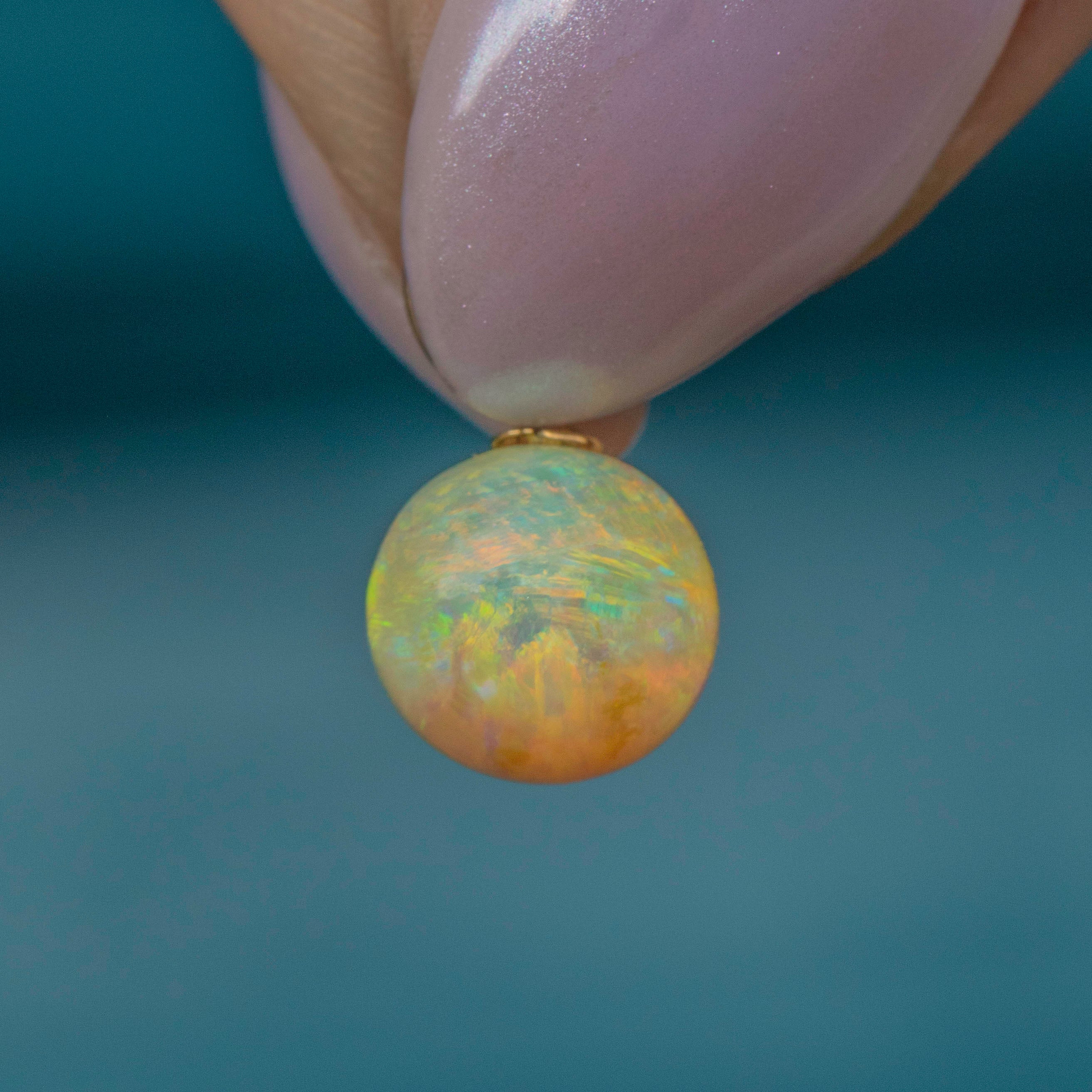 EXCELLENT. This antique 18ct Gold Opal orb charm is in excellent condition! Her orb is smooth to the touch with no damage to note, flaunting an exceptional play of colour. With a soldered jump-ring, enjoy this Victorian Opal charm as she rolls across your décolletage suspended from an antique Gold chain.