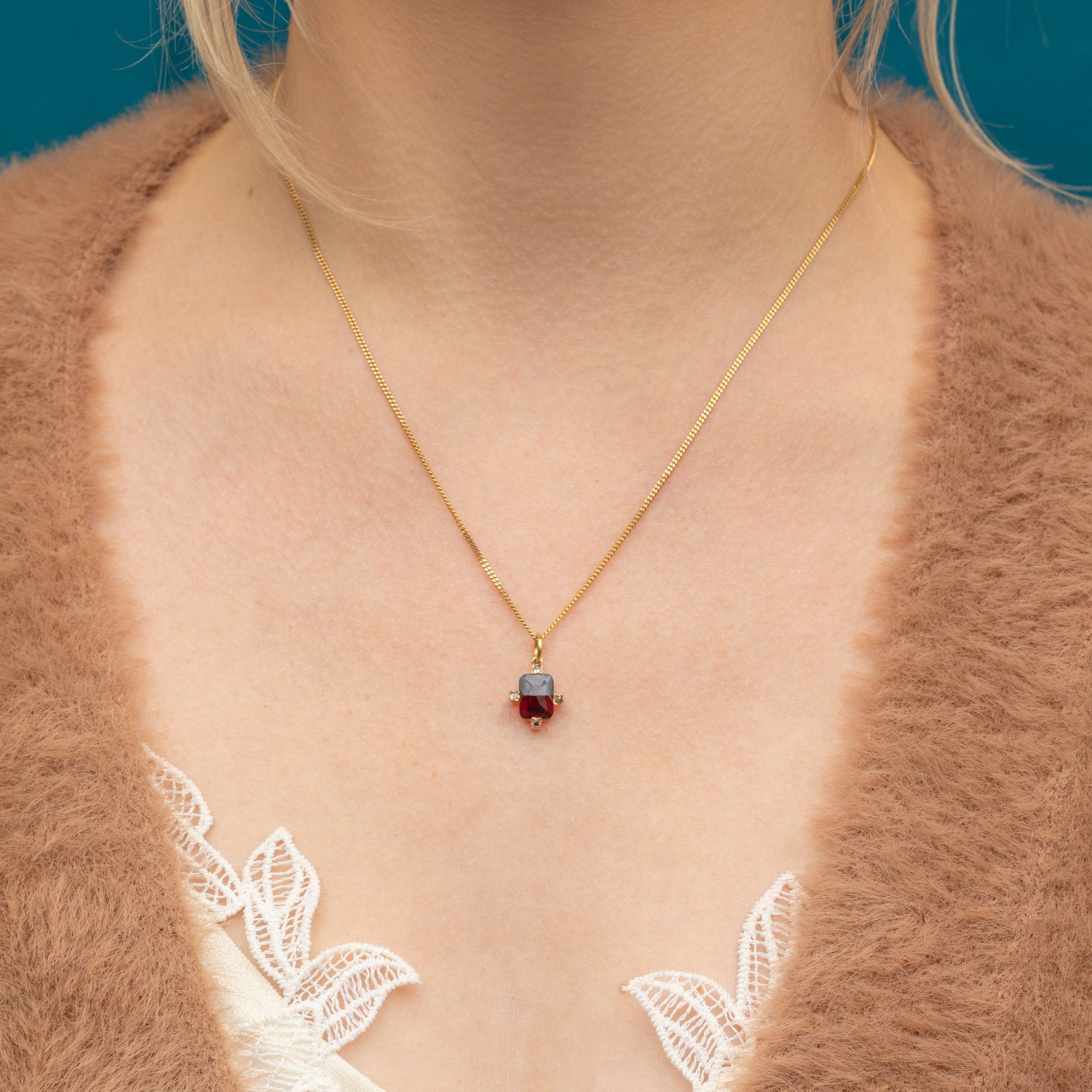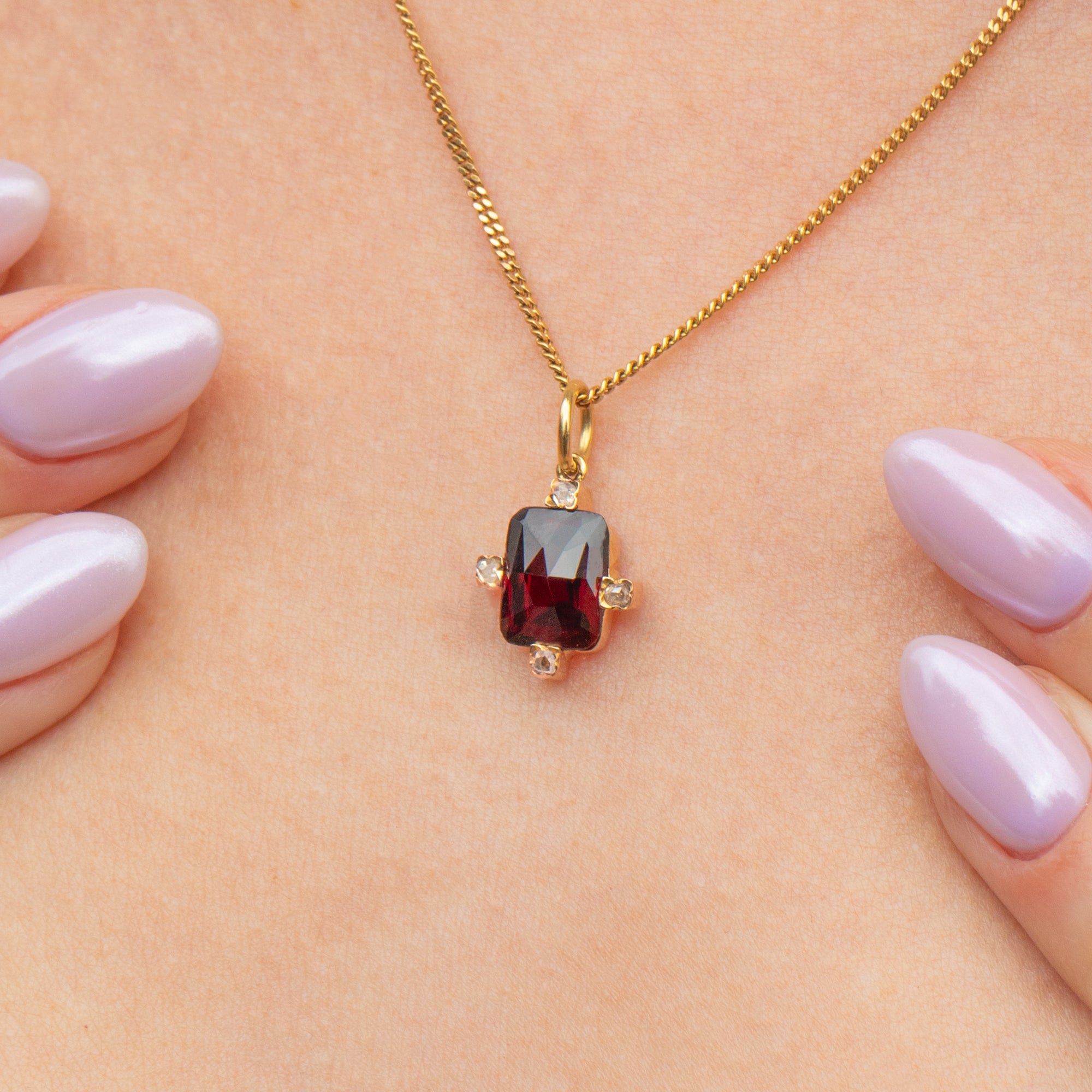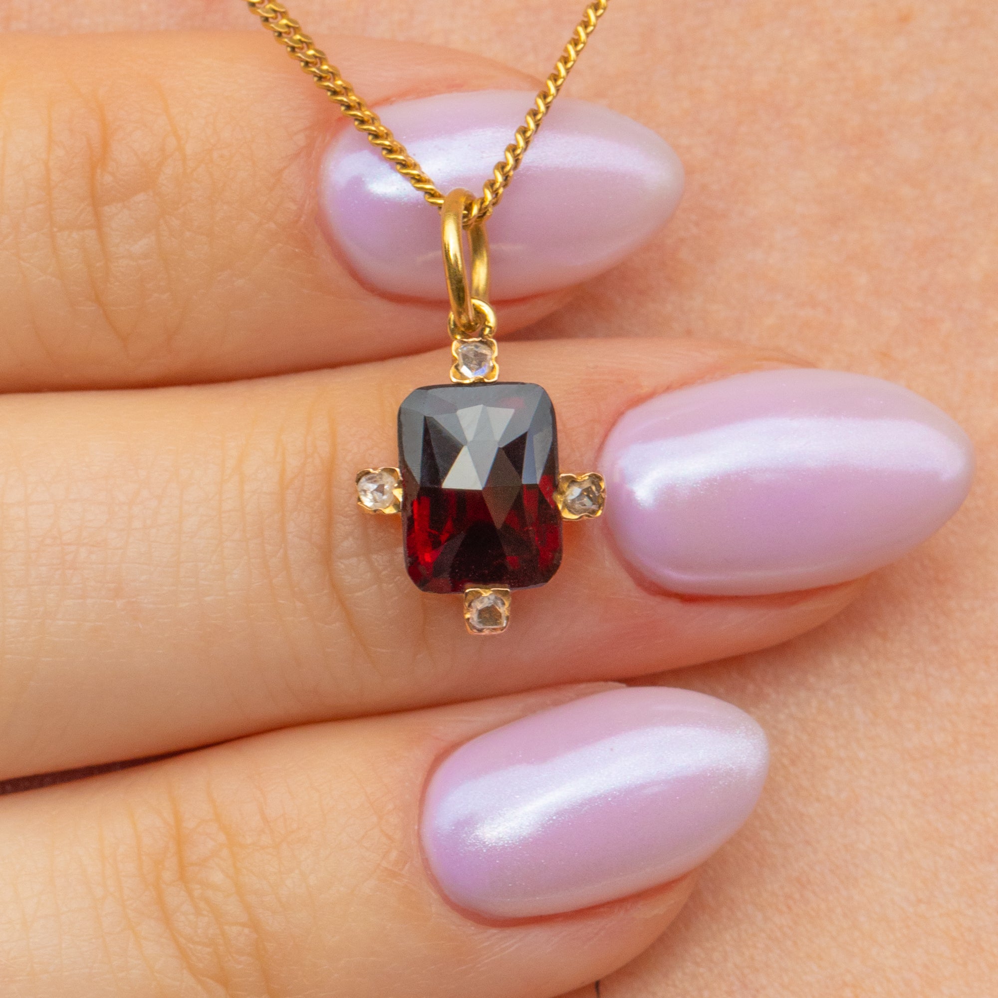 This antique 18ct Gold Perpignan Garnet Diamond charm is just beautiful! A petite piece perfect for date night, this Victorian pendant has a gorgeous and rare 5.20ct Perpignan Garnet with petite rose-cut Diamonds that glint in the light.