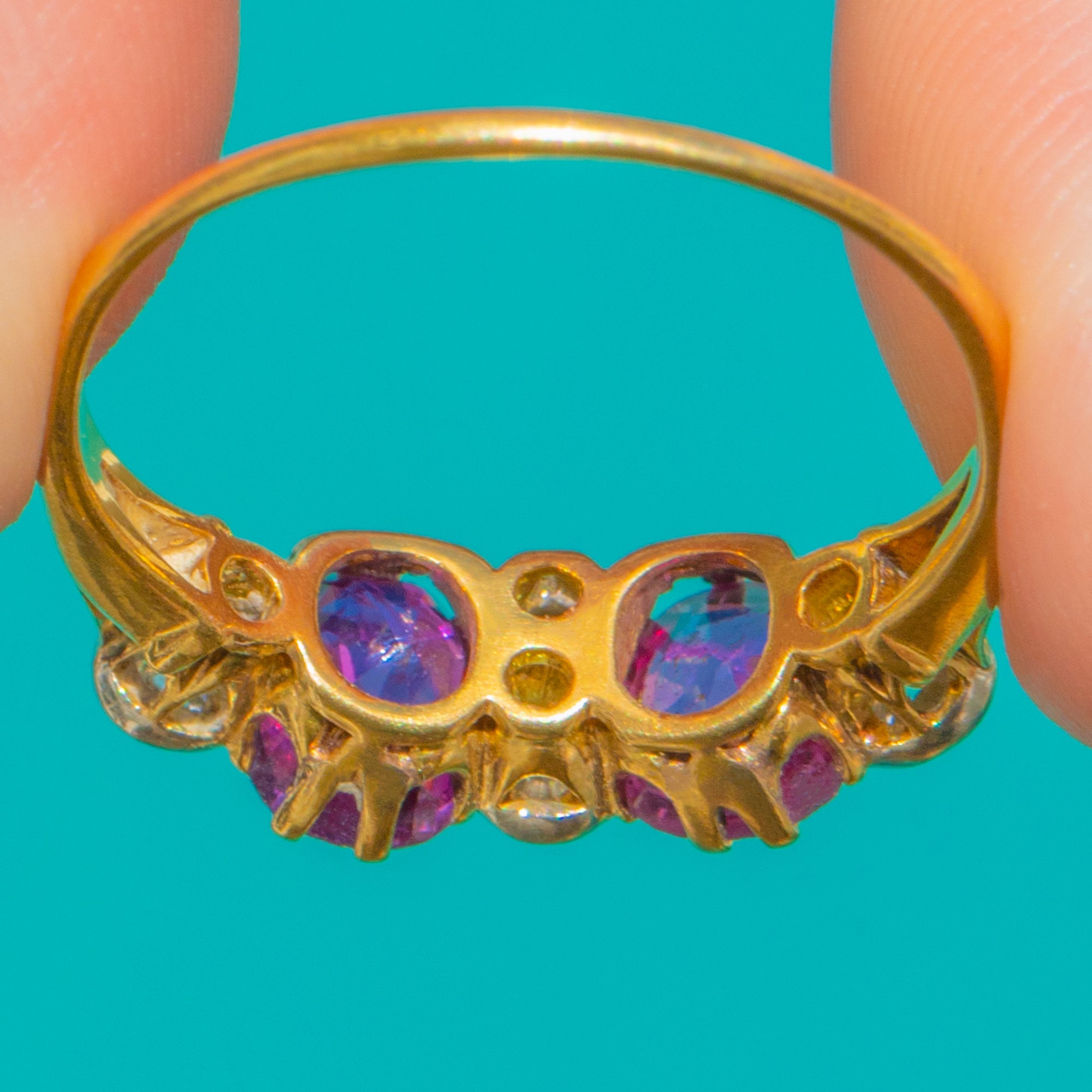 Antique 18ct Gold Pink Sapphire Diamond Six Stone Ring, c.1890