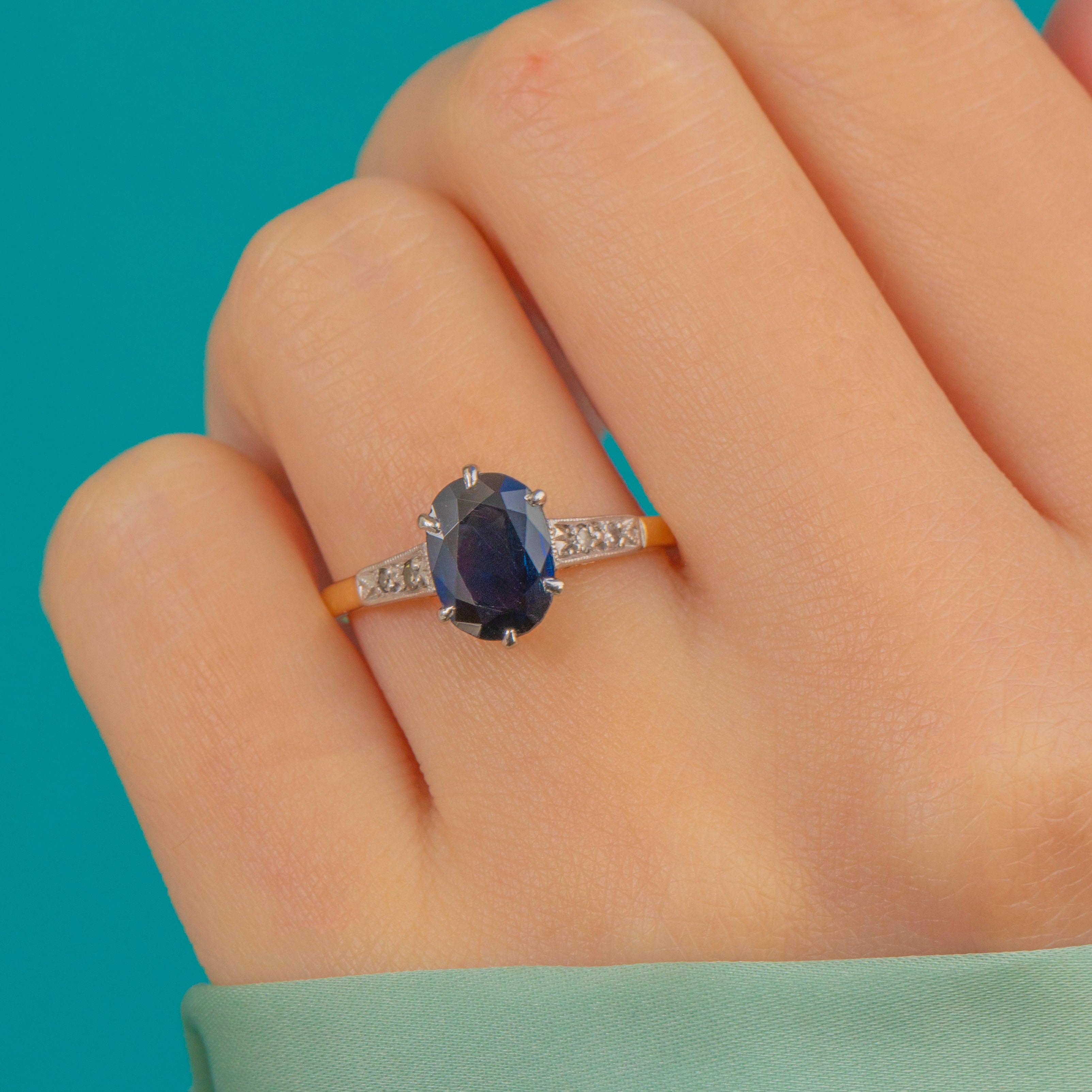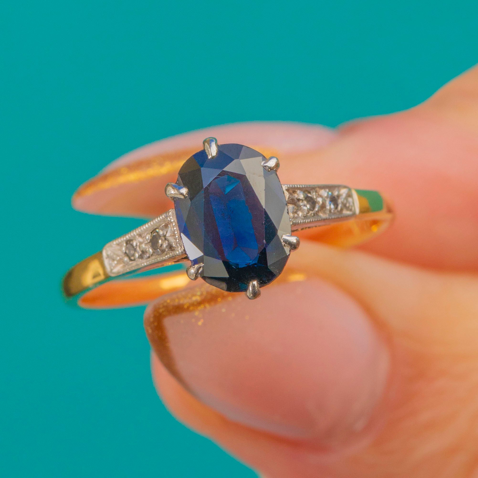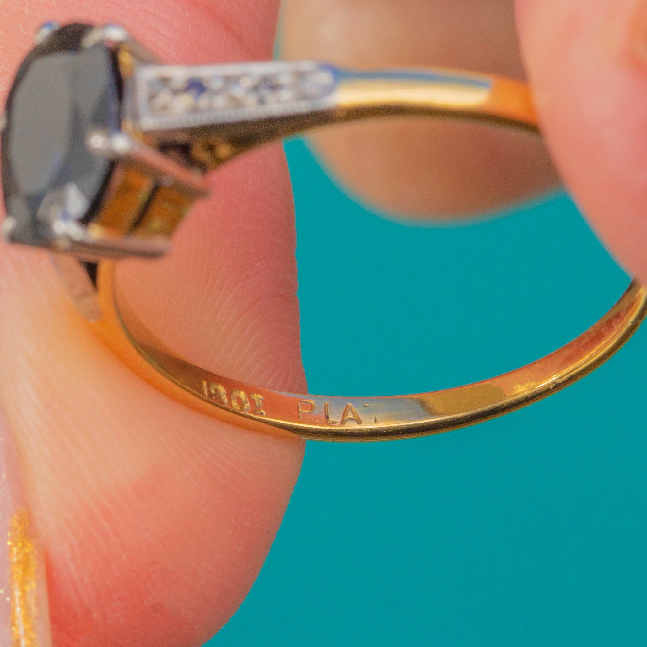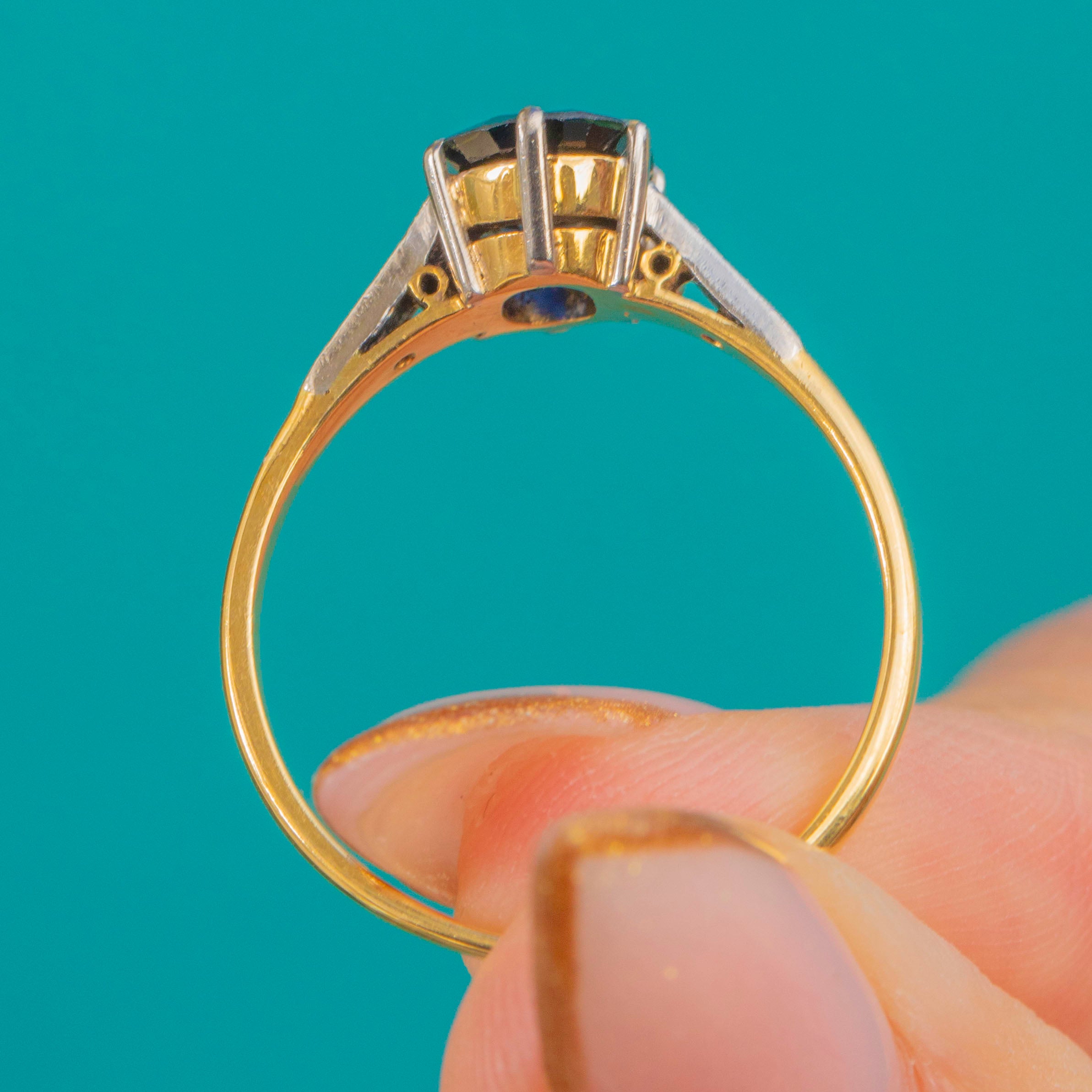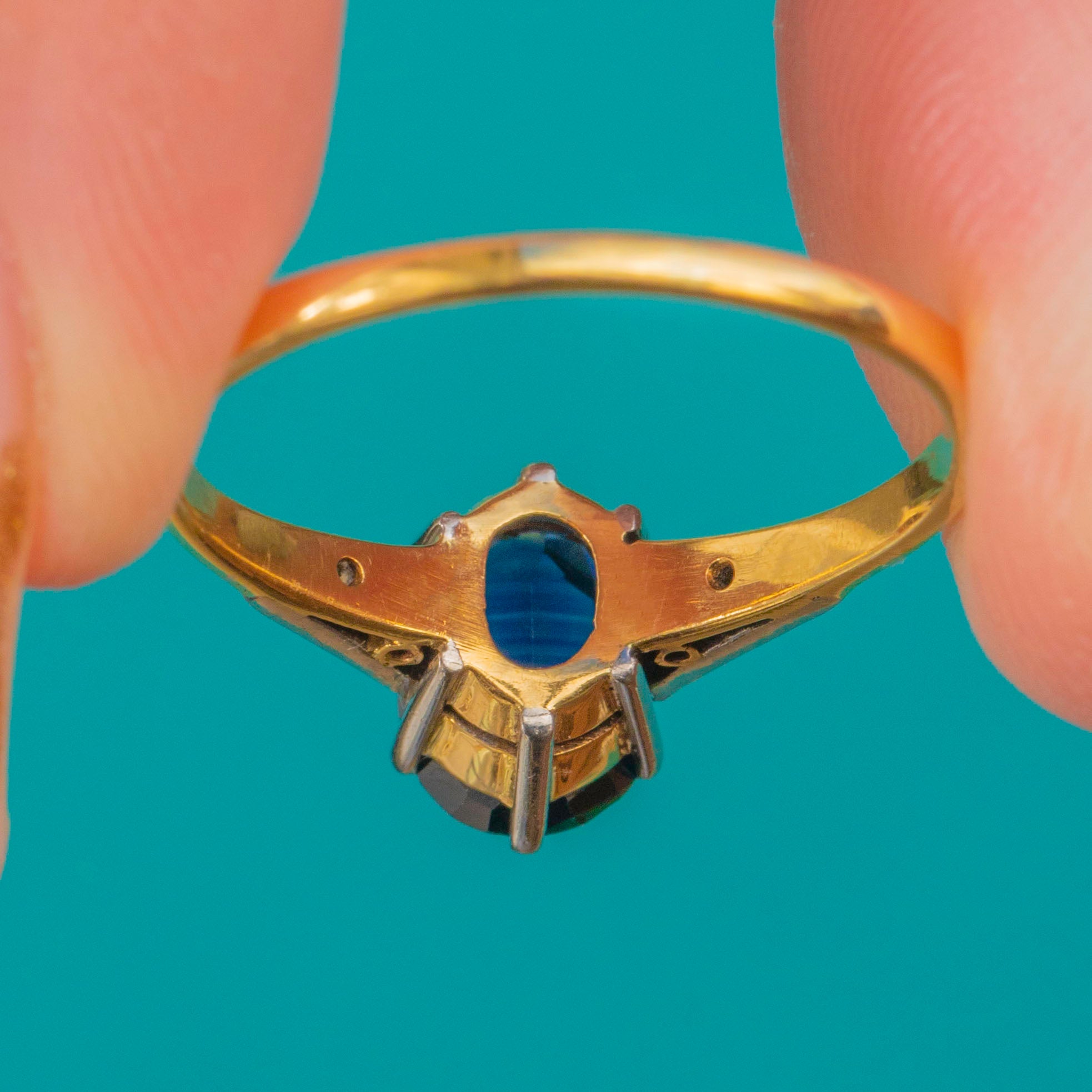 Bague antique en or 18 carats, platine, saphir naturel, 1,50 ct
