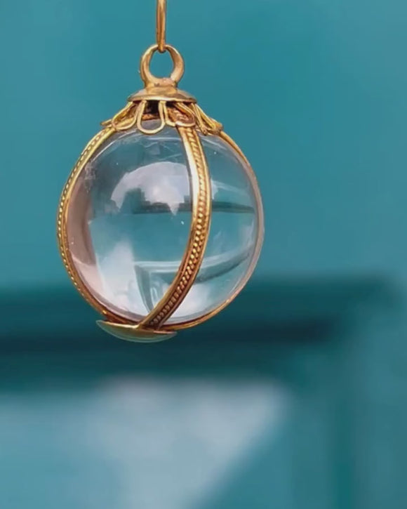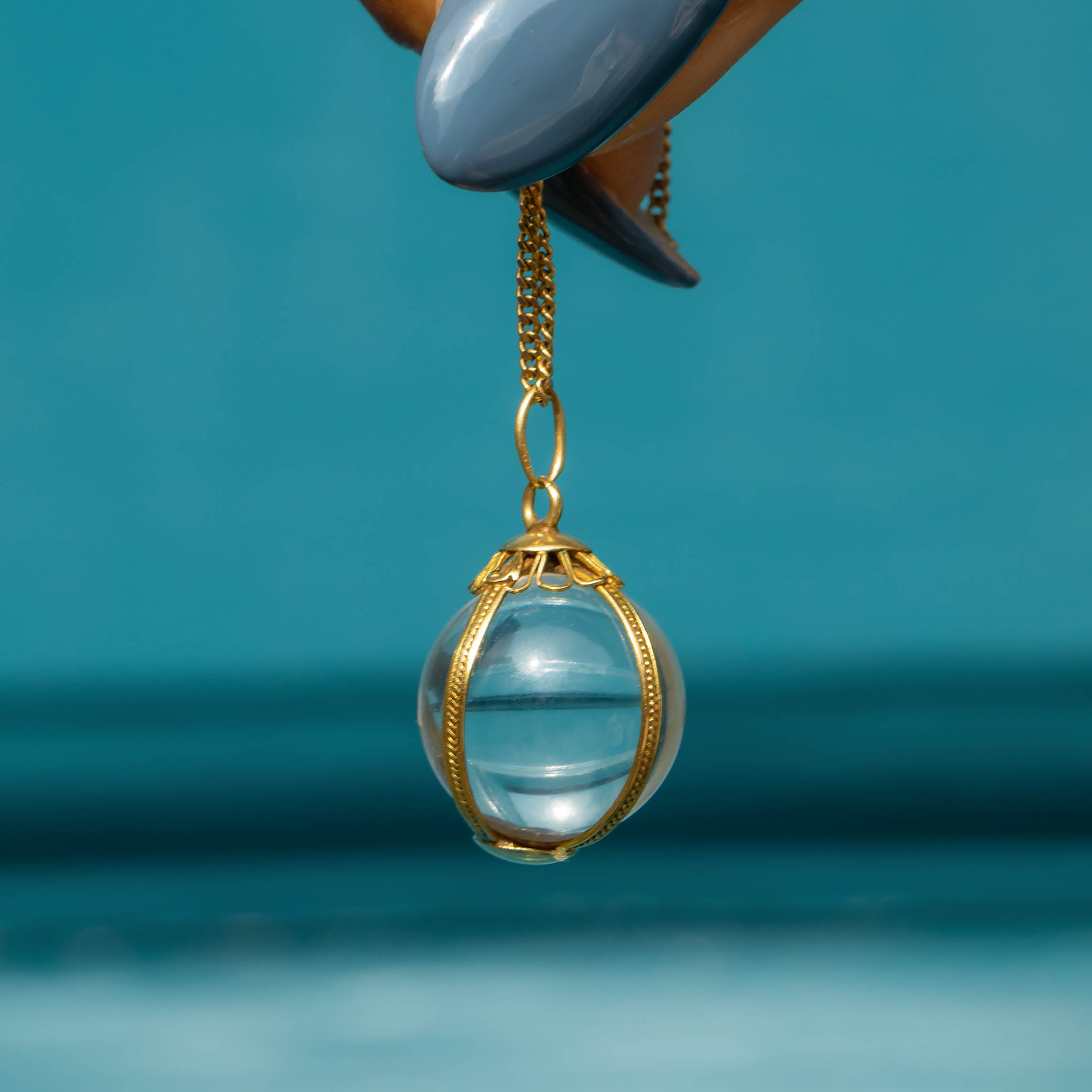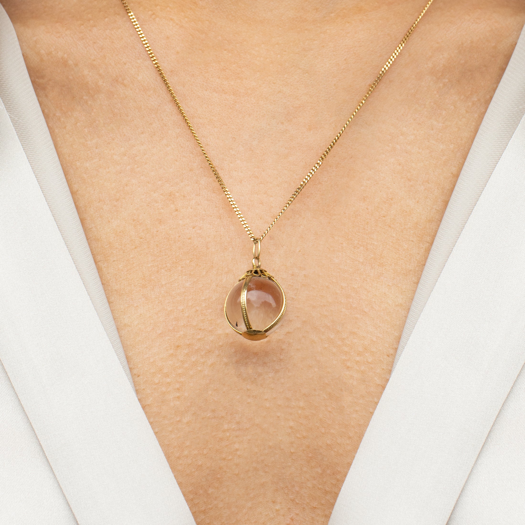 Pendentif or 18 carats antique avec orbes de lumière en cristal de roche