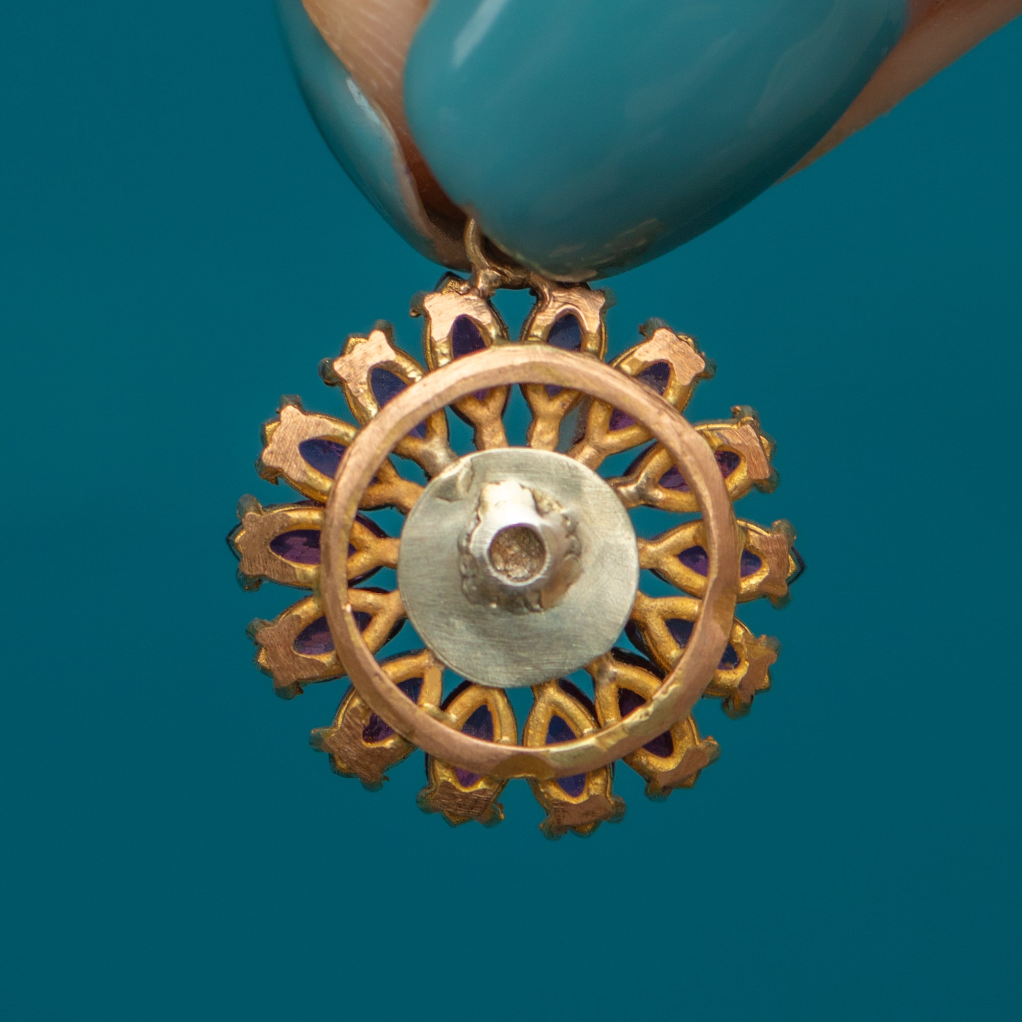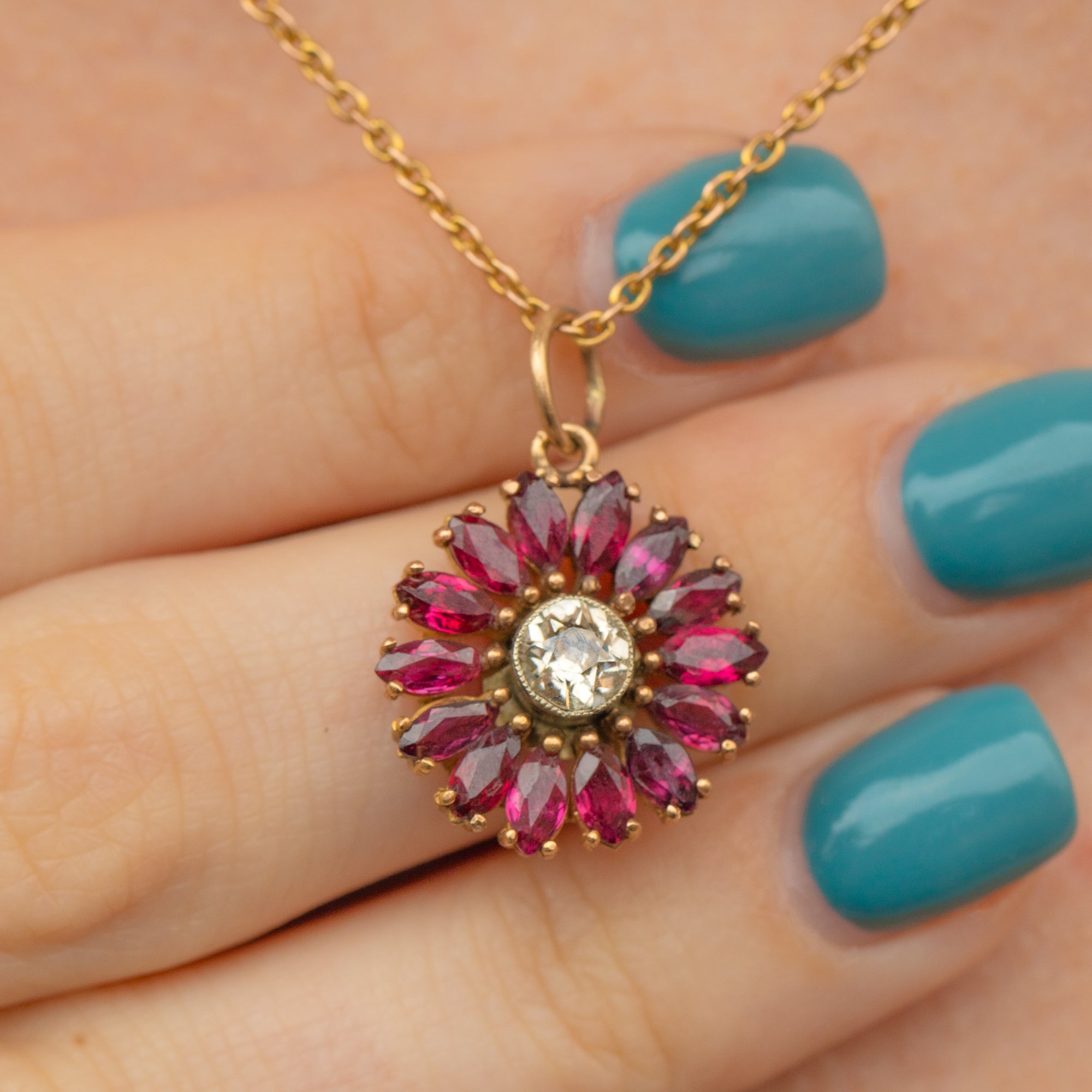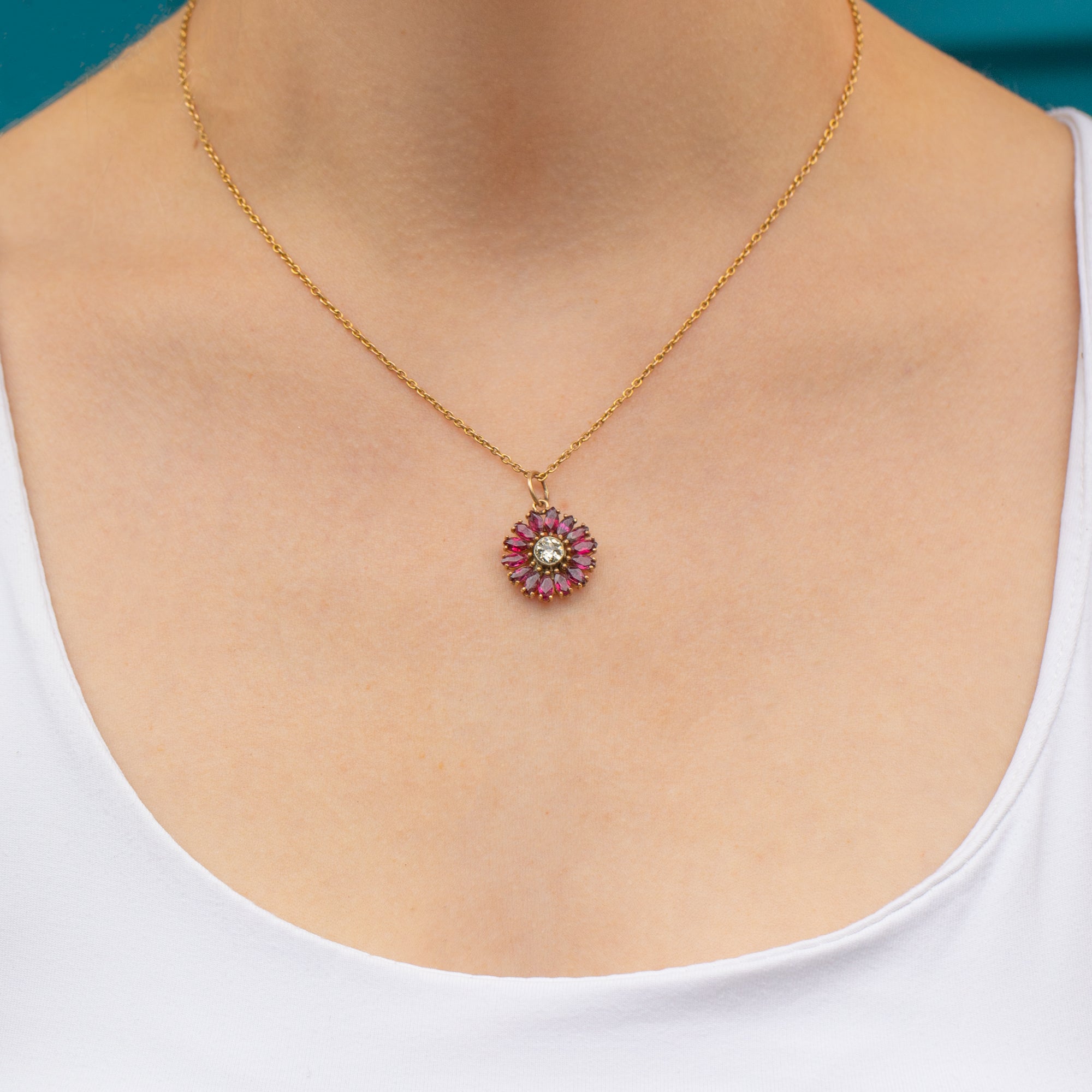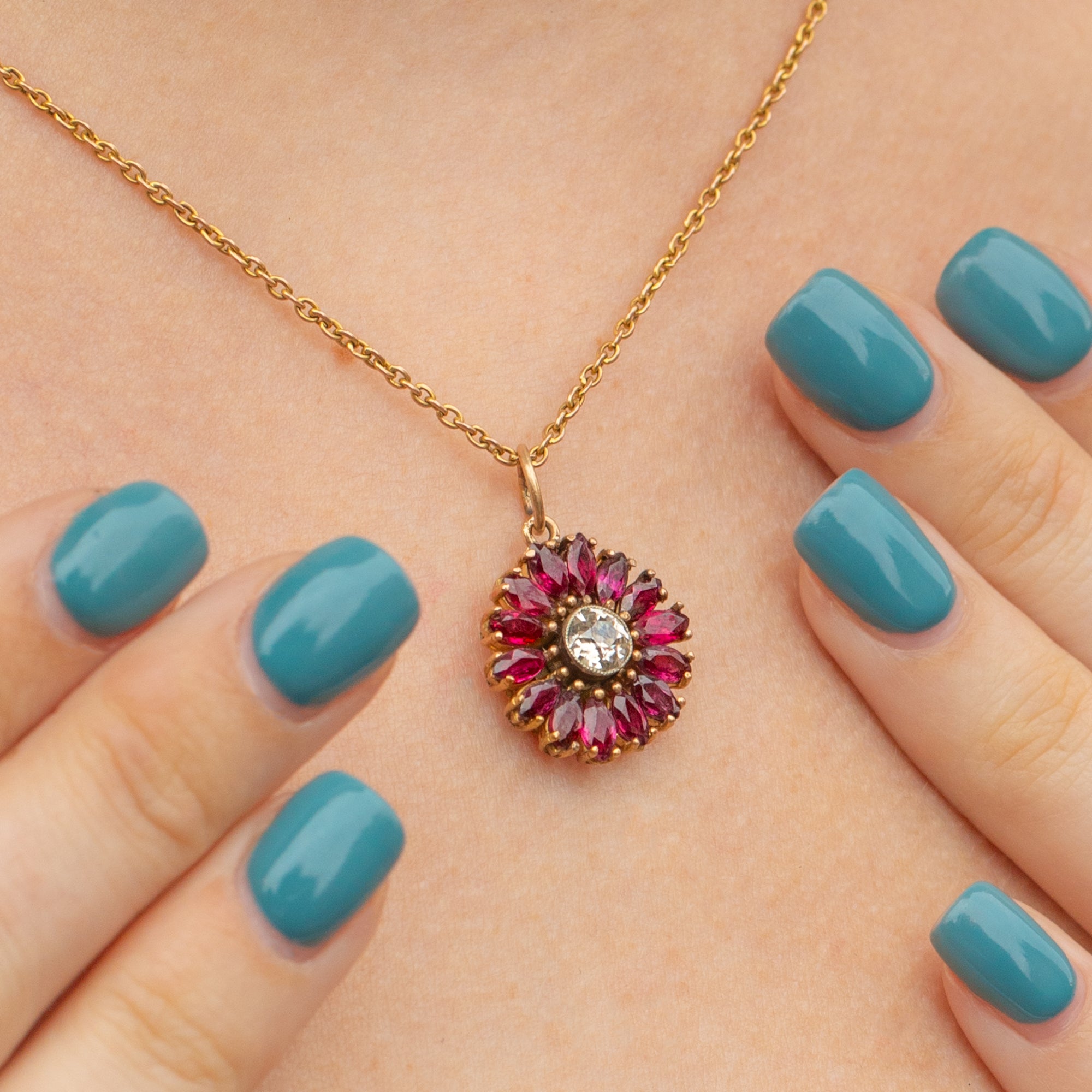Antique 18ct Gold Ruby Diamond Flower Pendant, 0.50ct Diamond