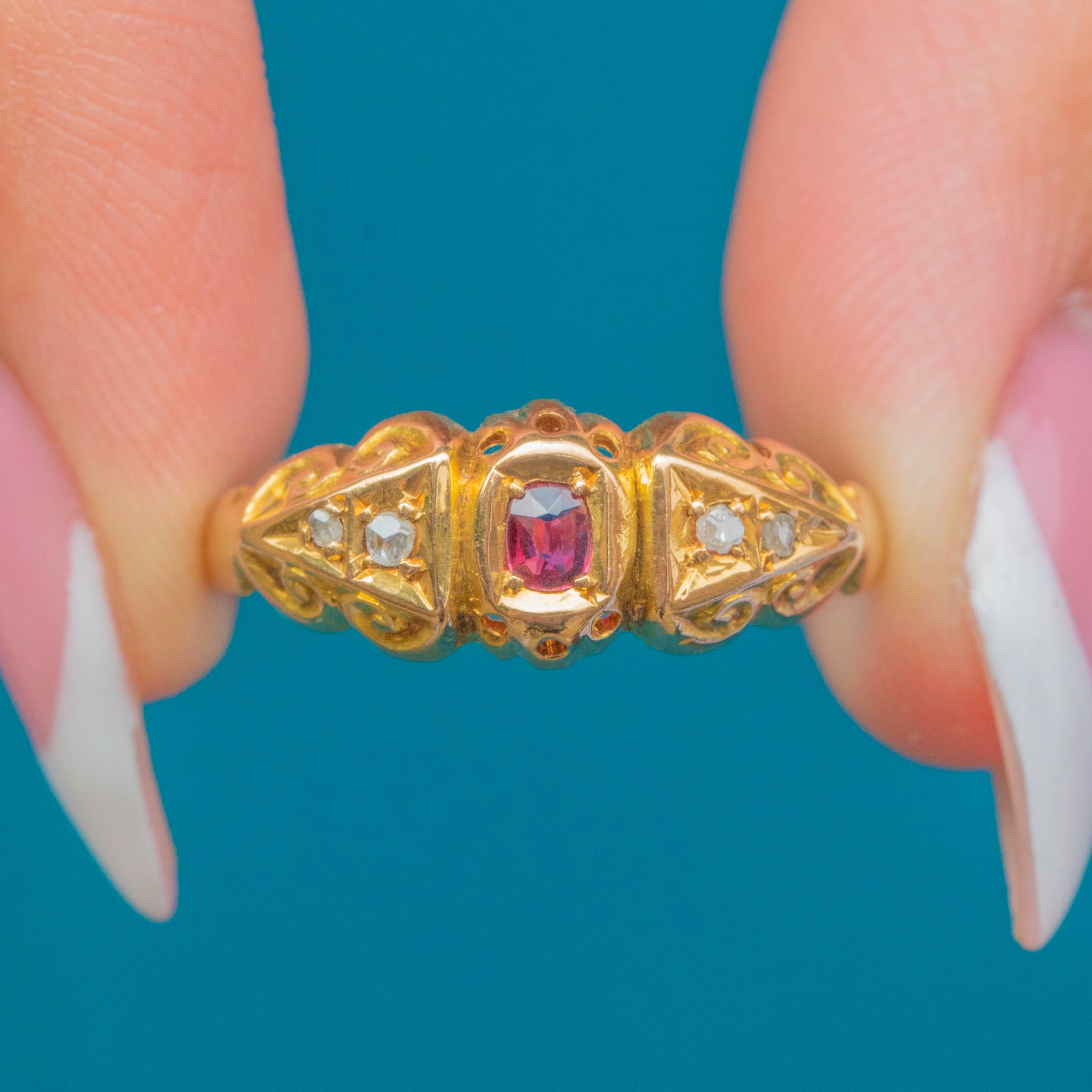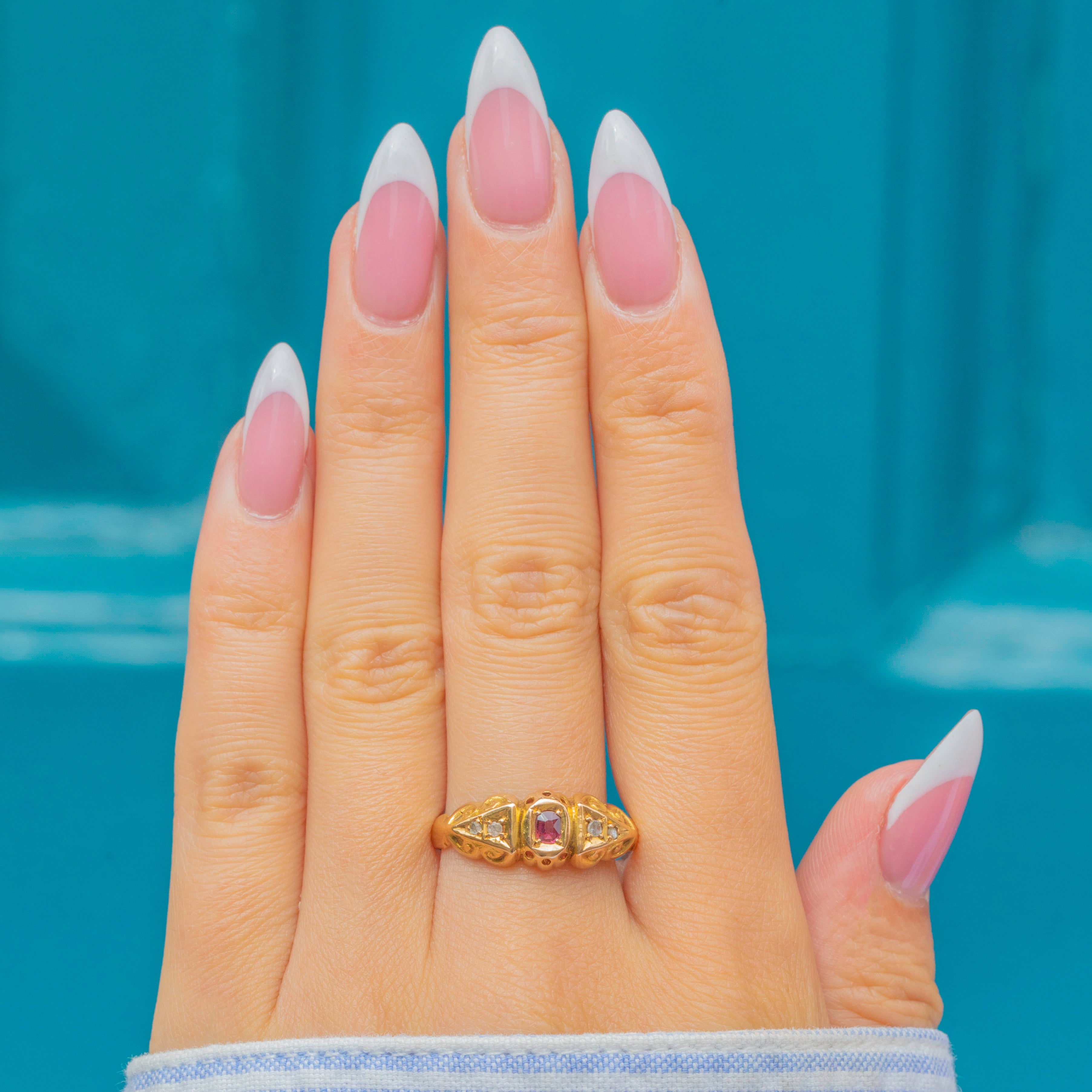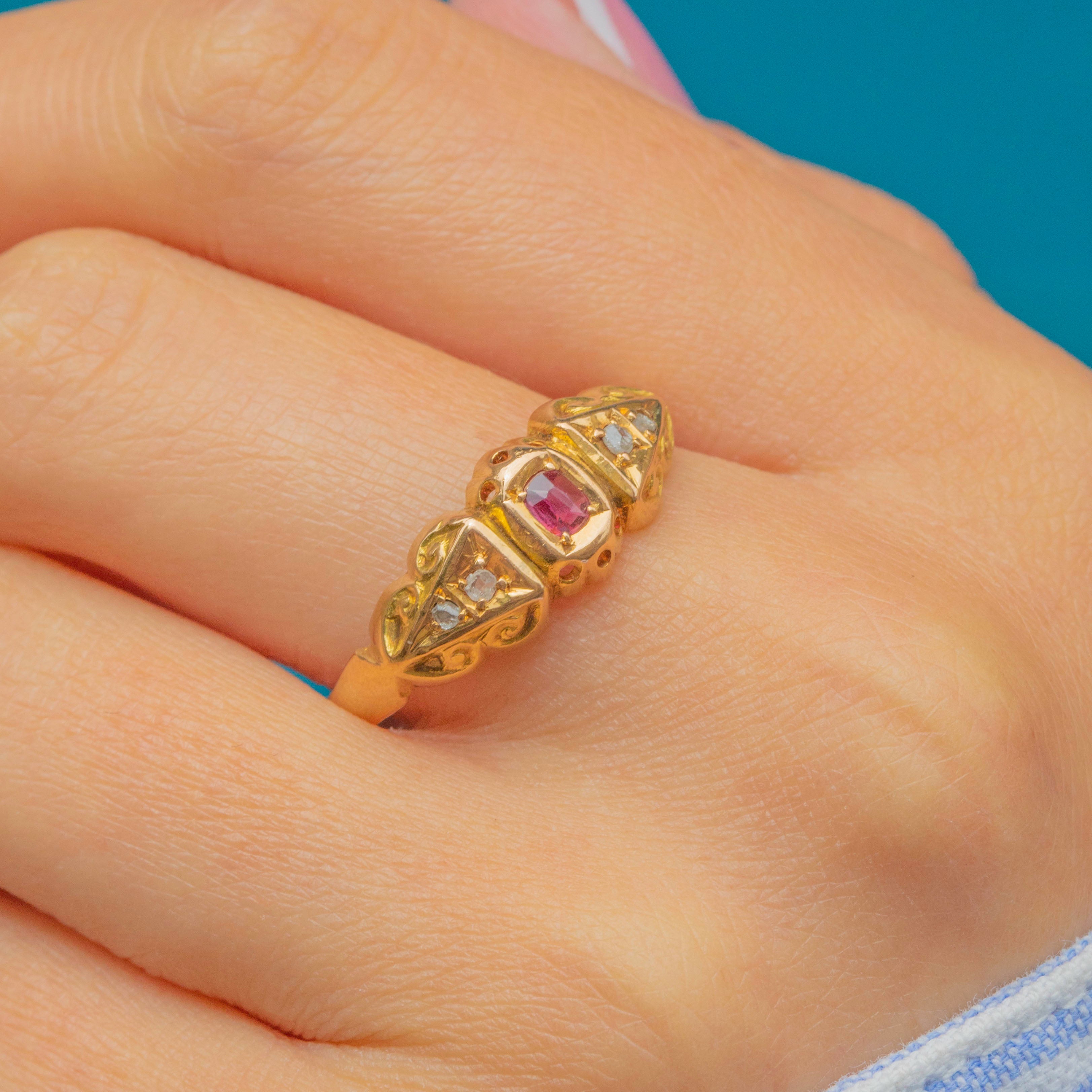 Bague gitane antique en or 18 carats, rubis et diamant vers 1917