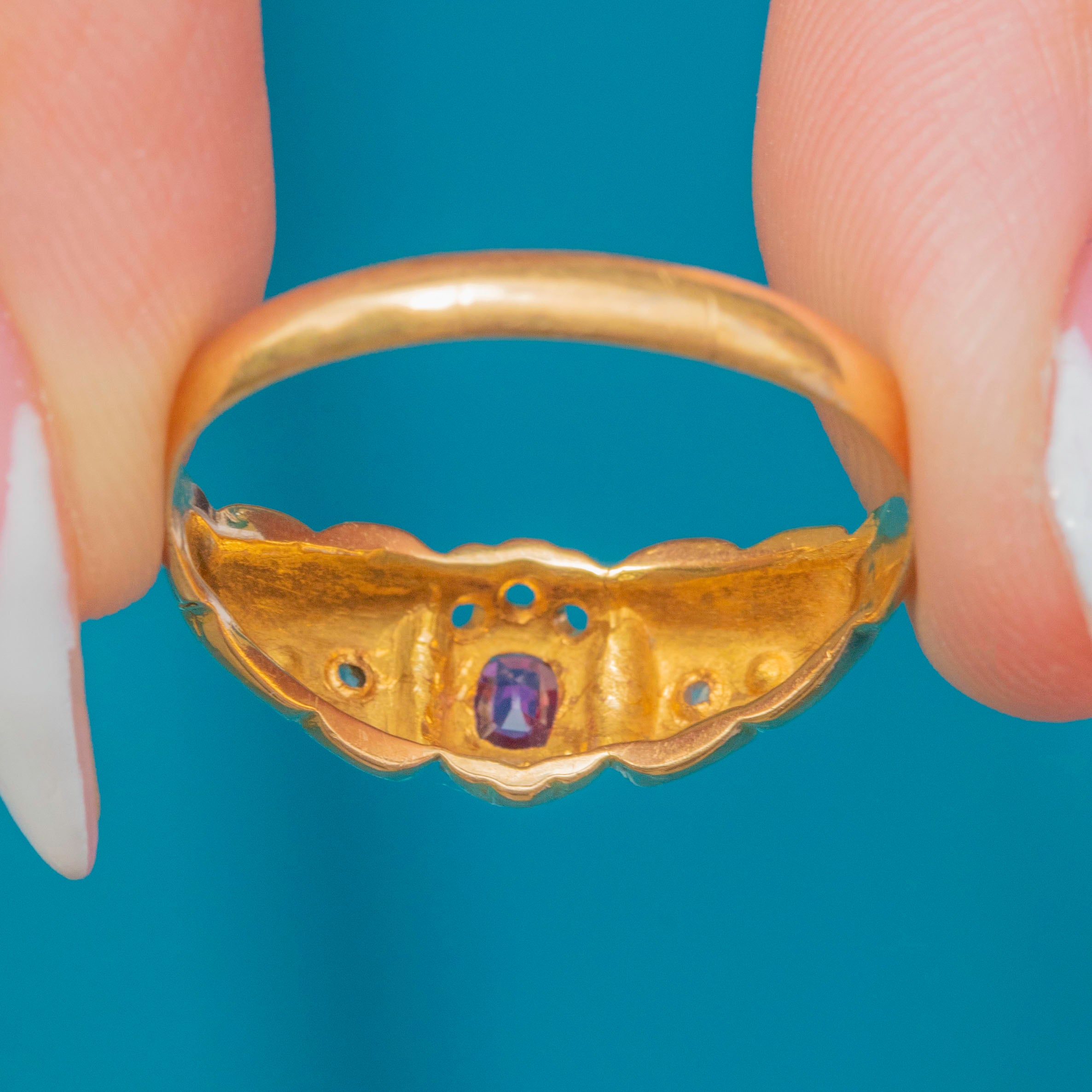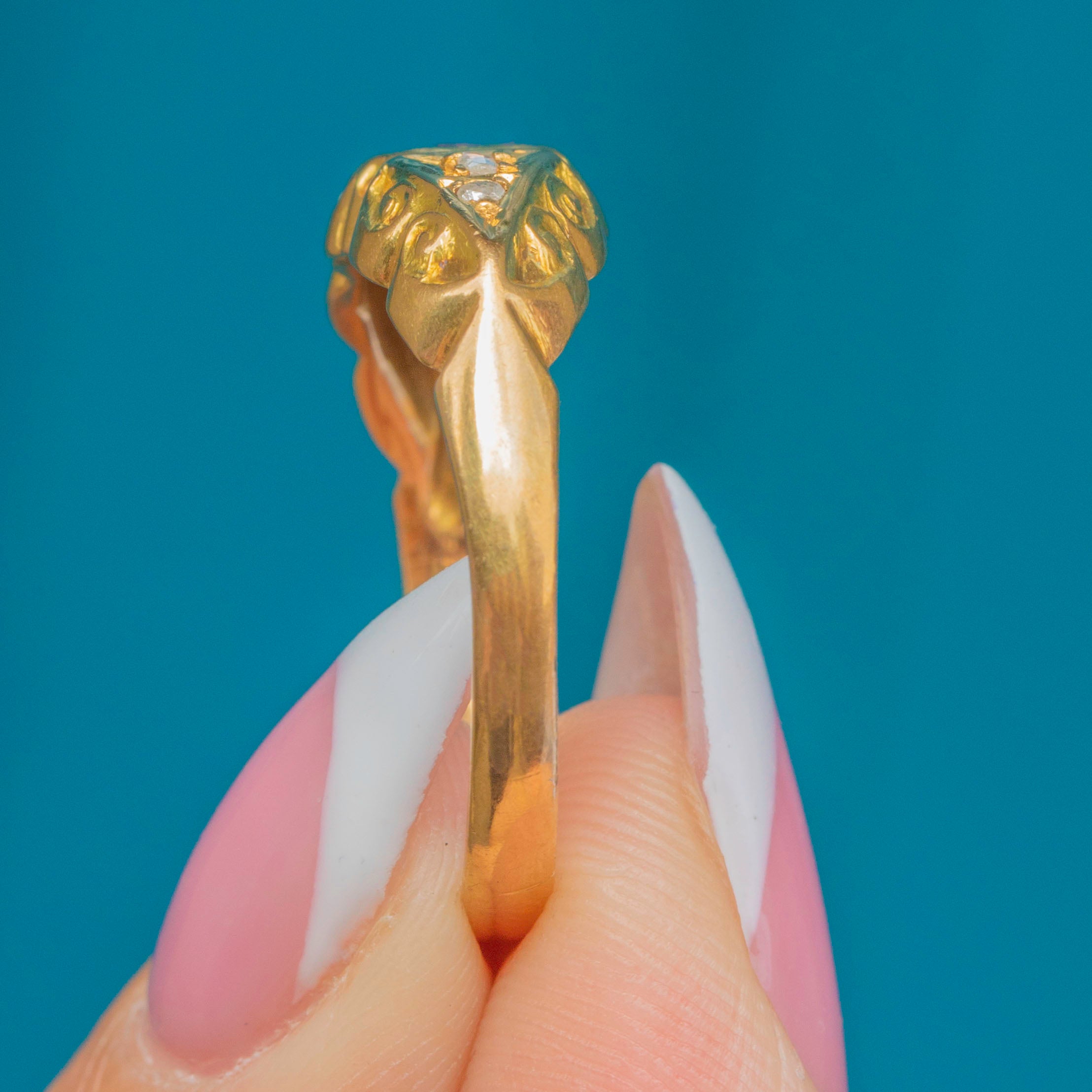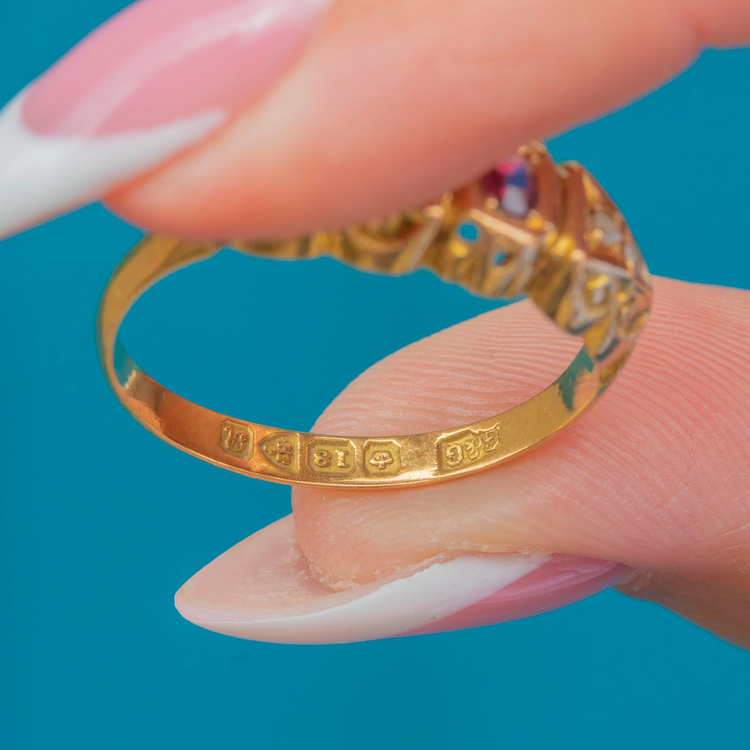Bague gitane antique en or 18 carats, rubis et diamant vers 1917