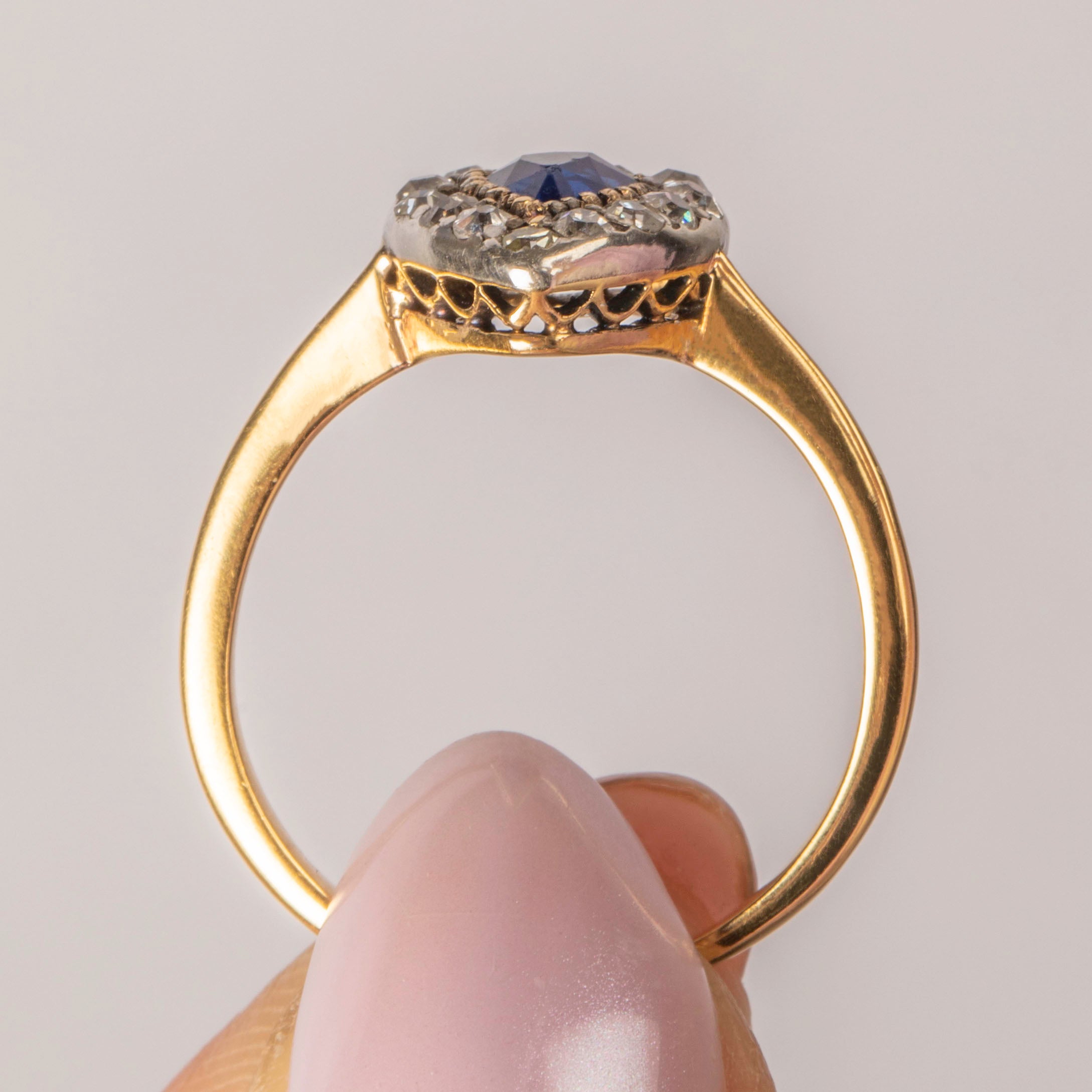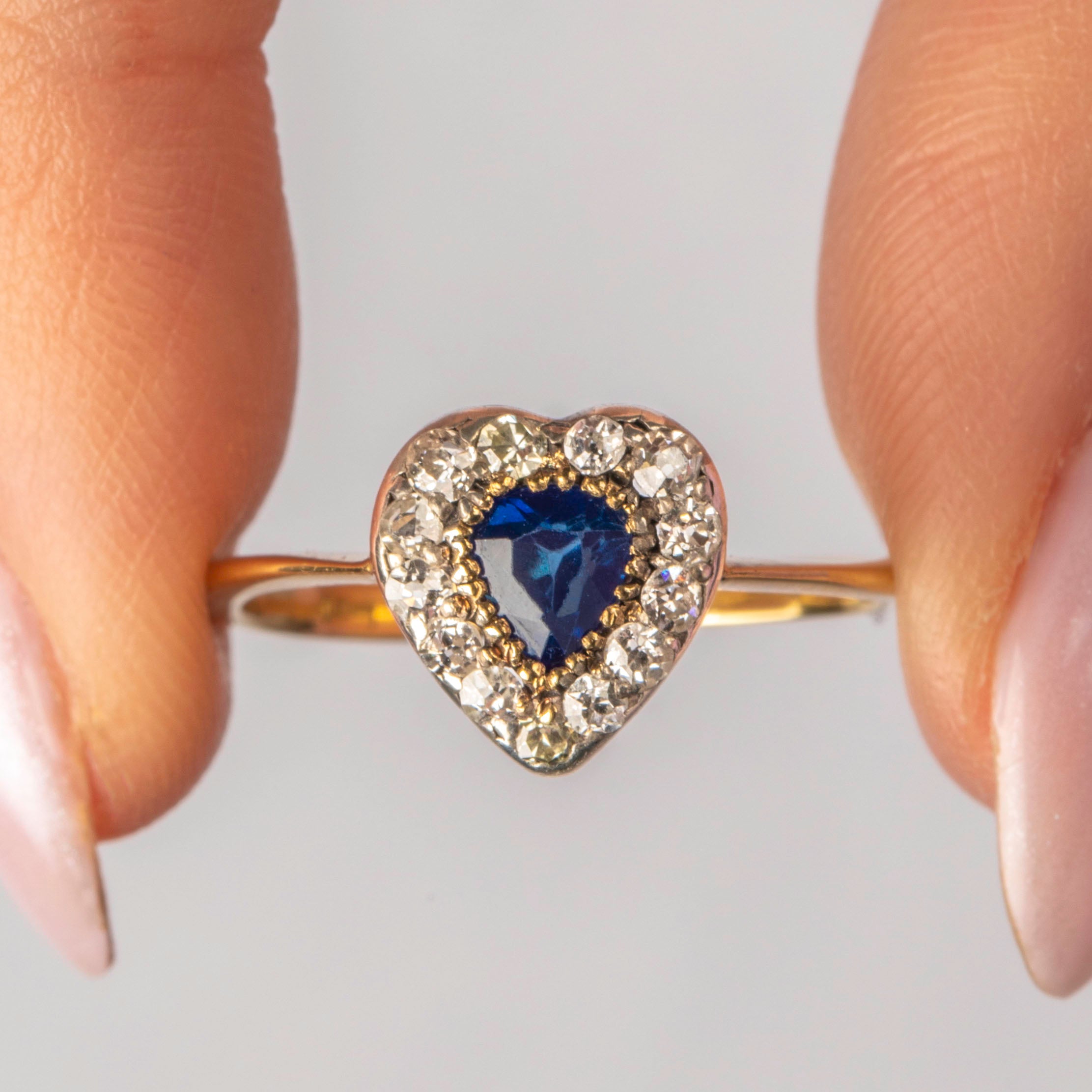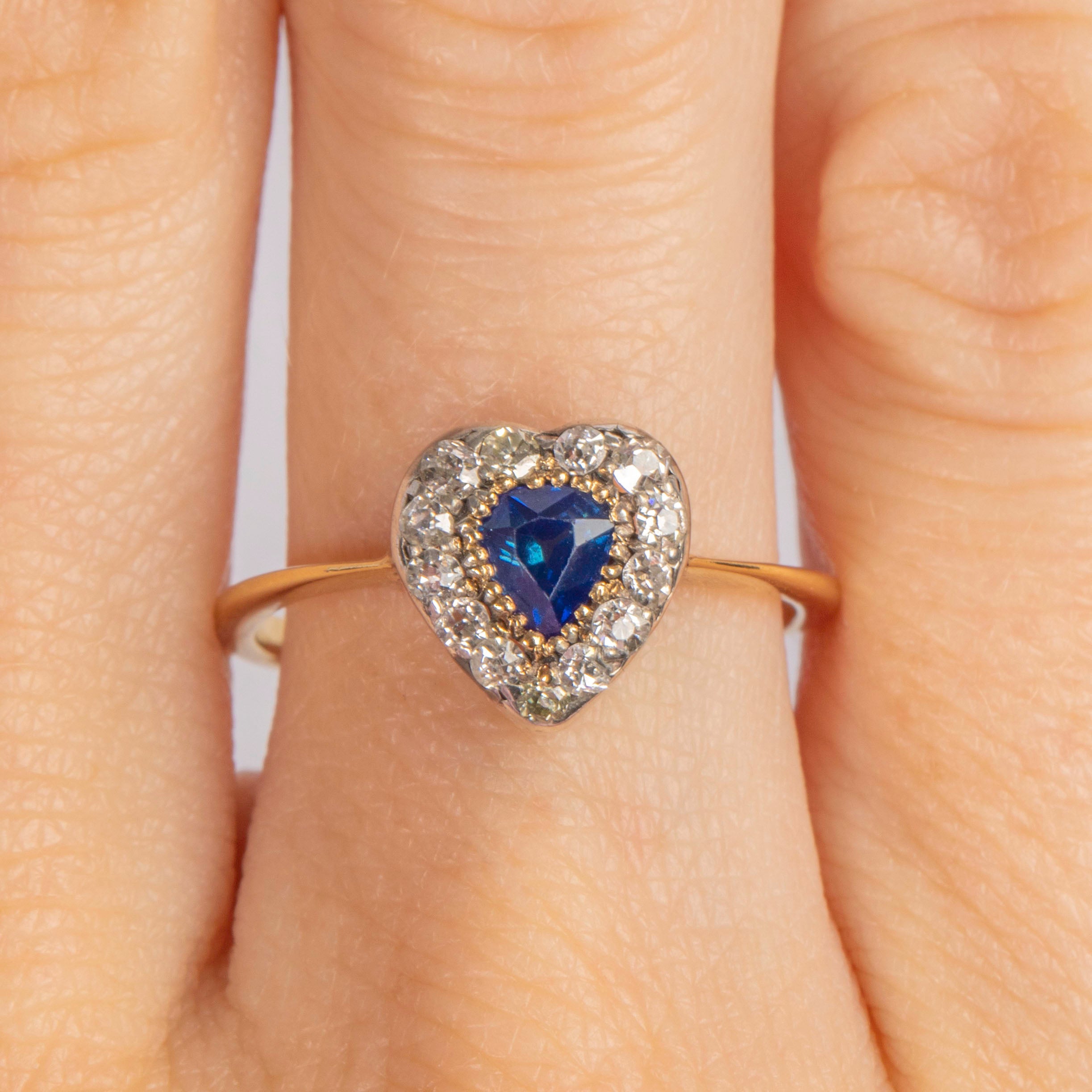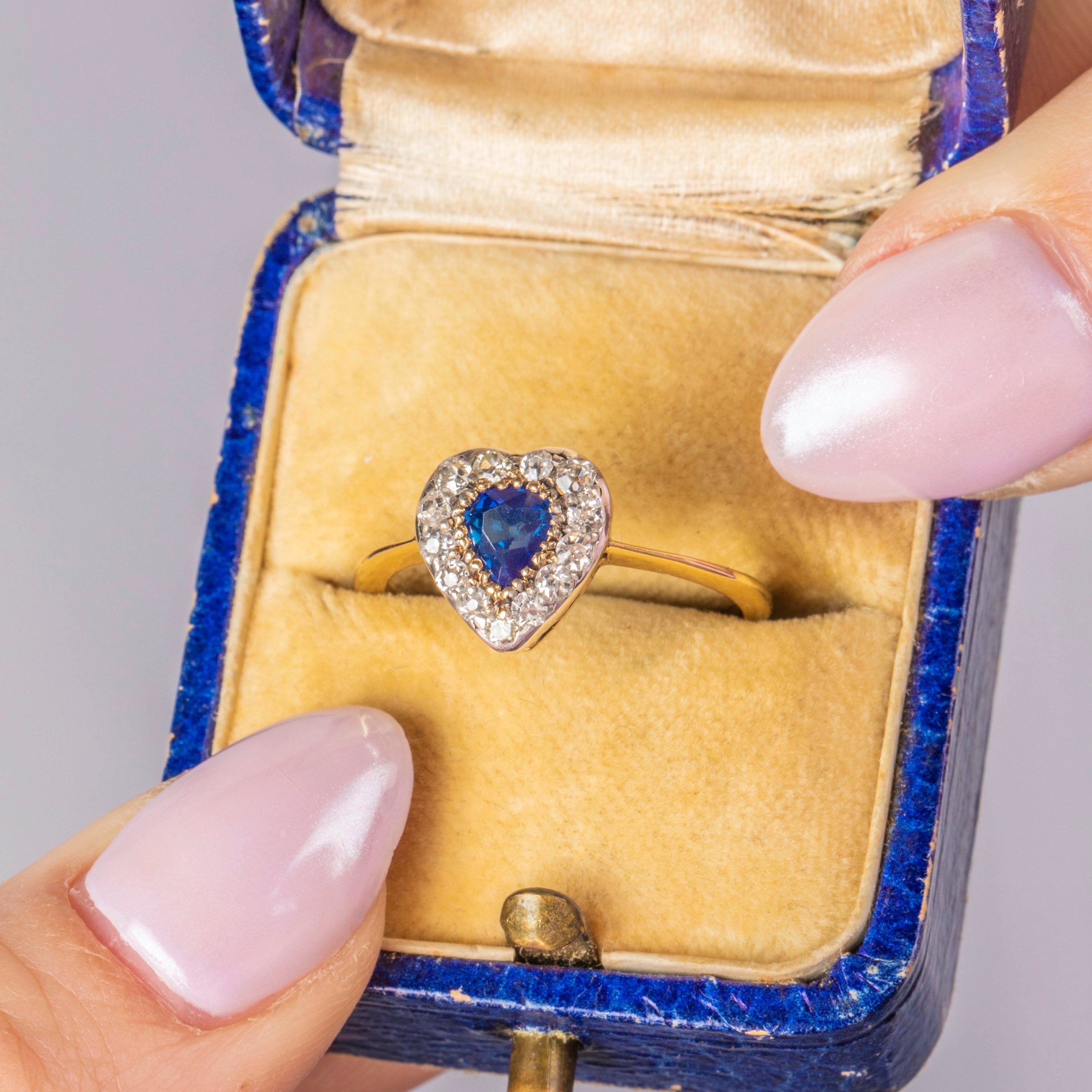 Antique 18ct Gold Sapphire Diamond Heart Ring, 0.30ct Sapphire