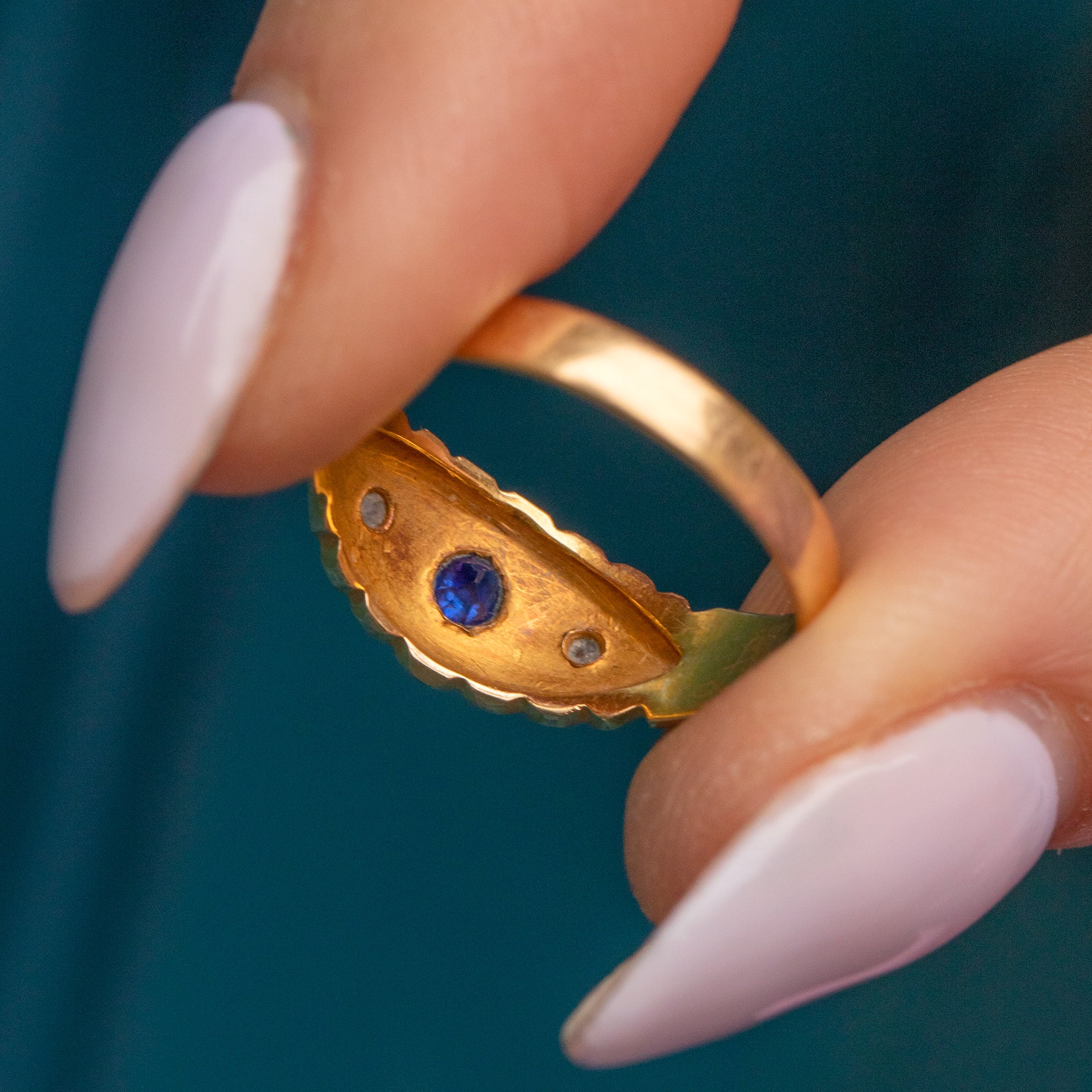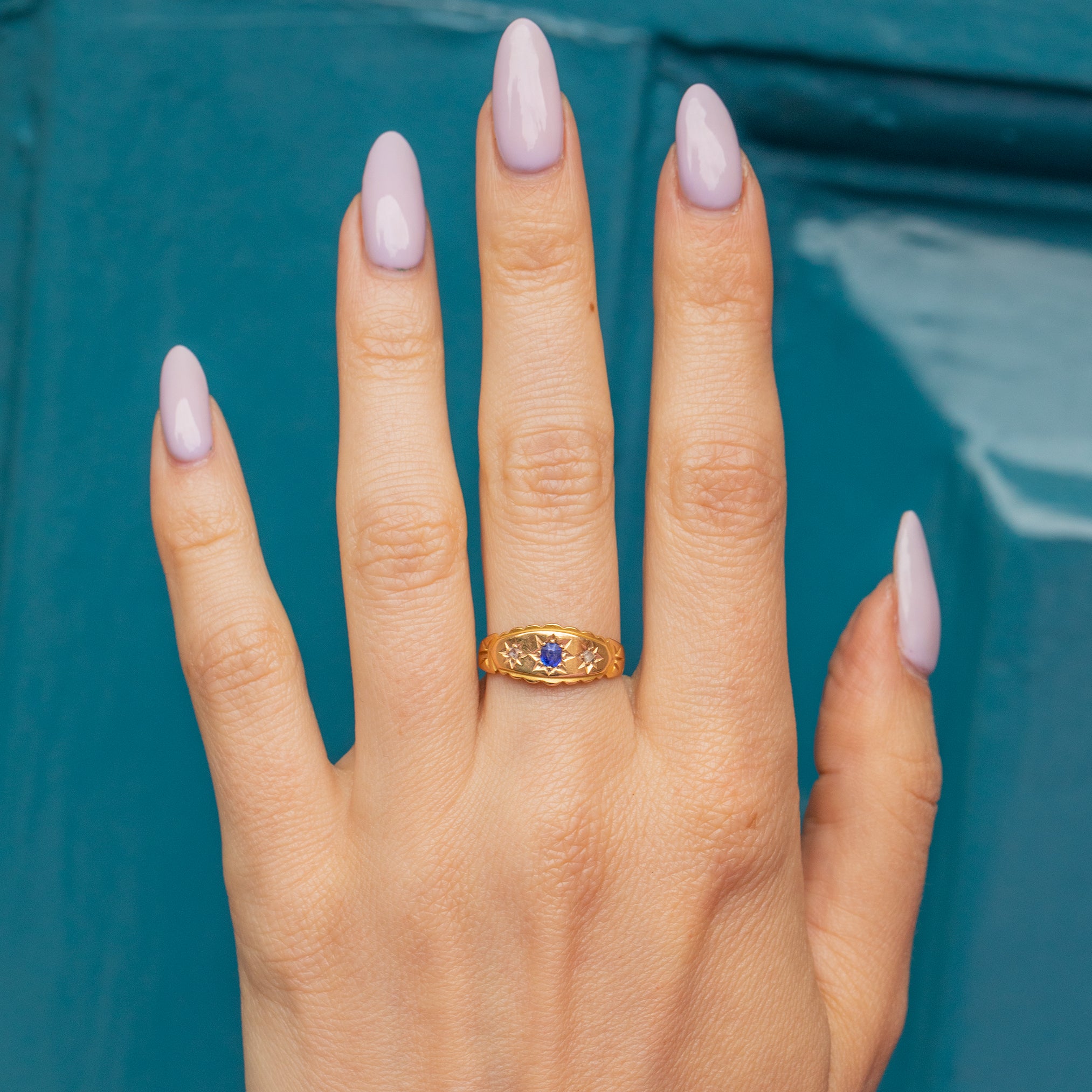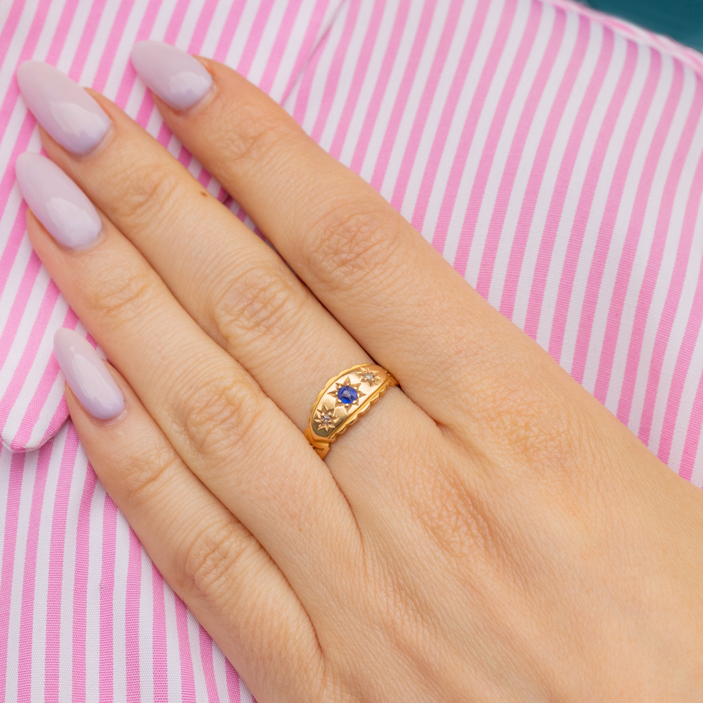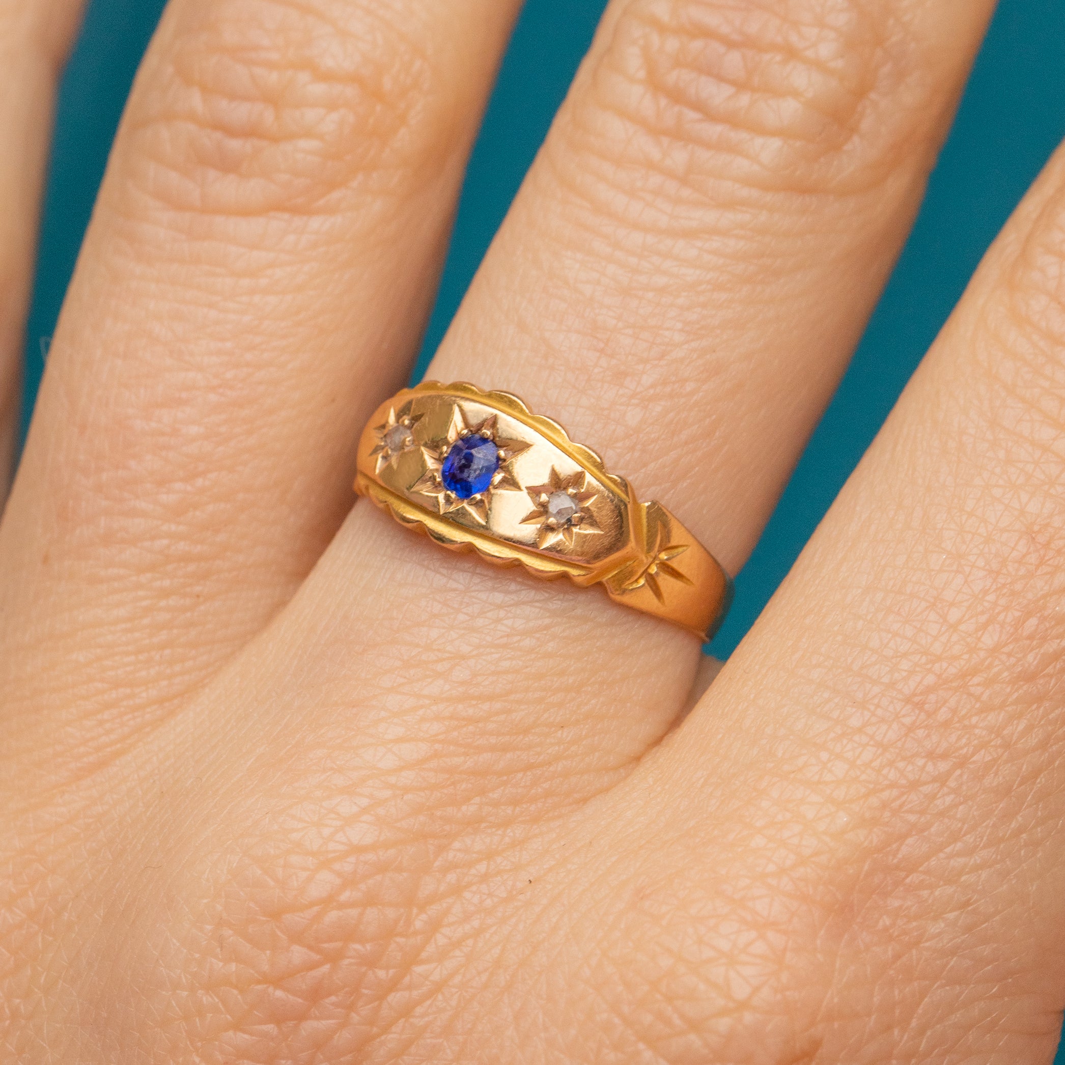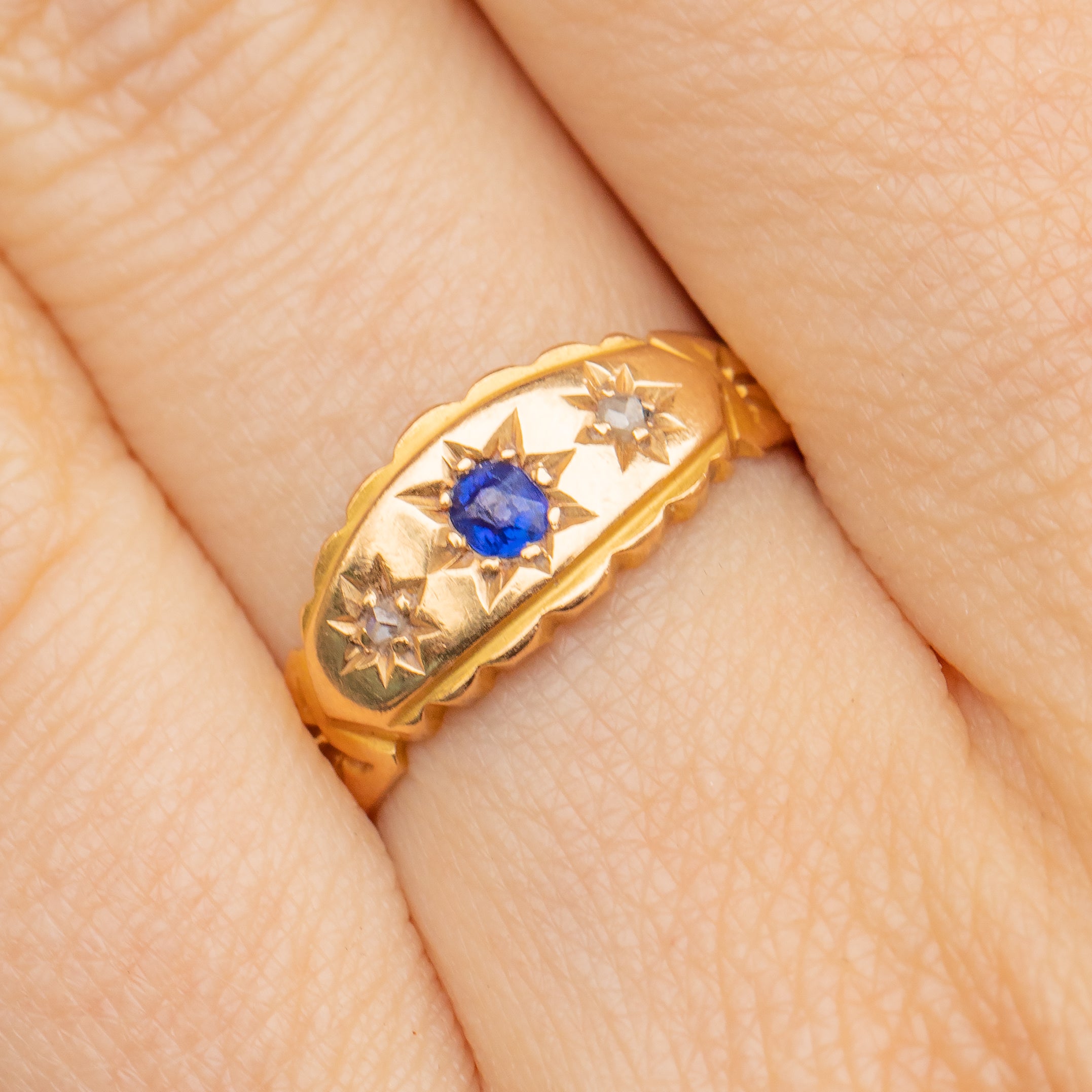 Antique 18ct Gold Sapphire Diamond Star-Set Gypsy Ring