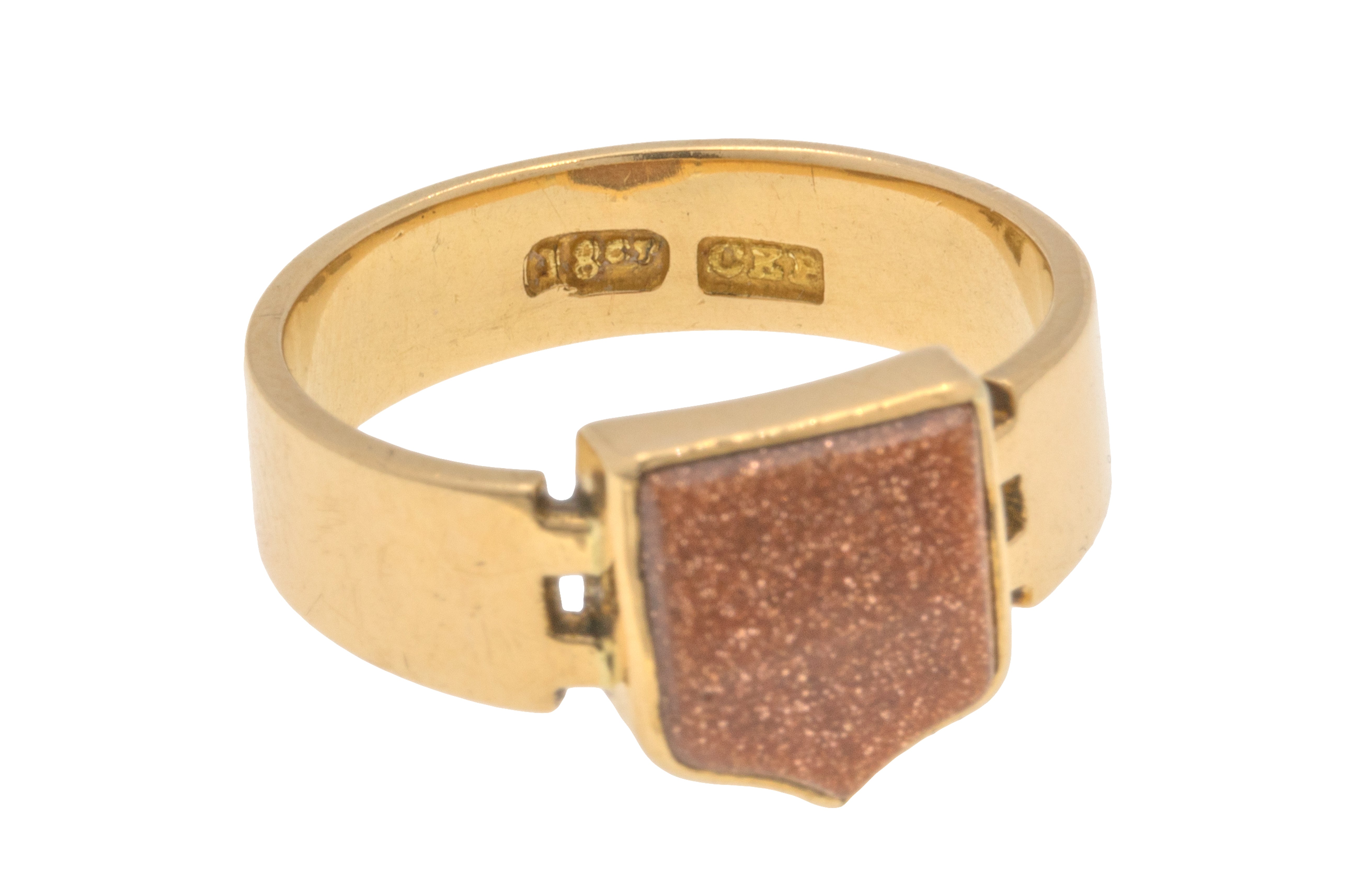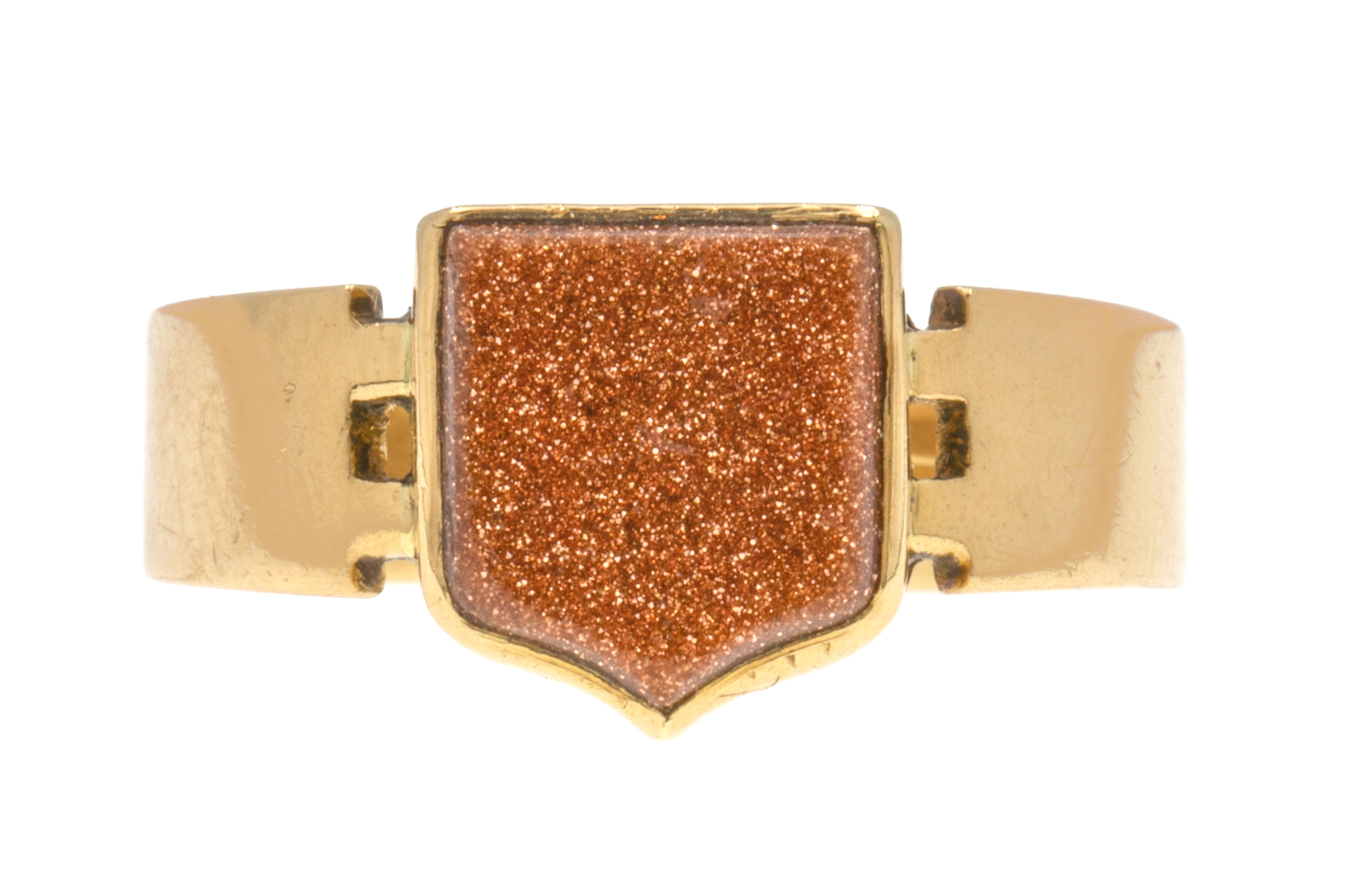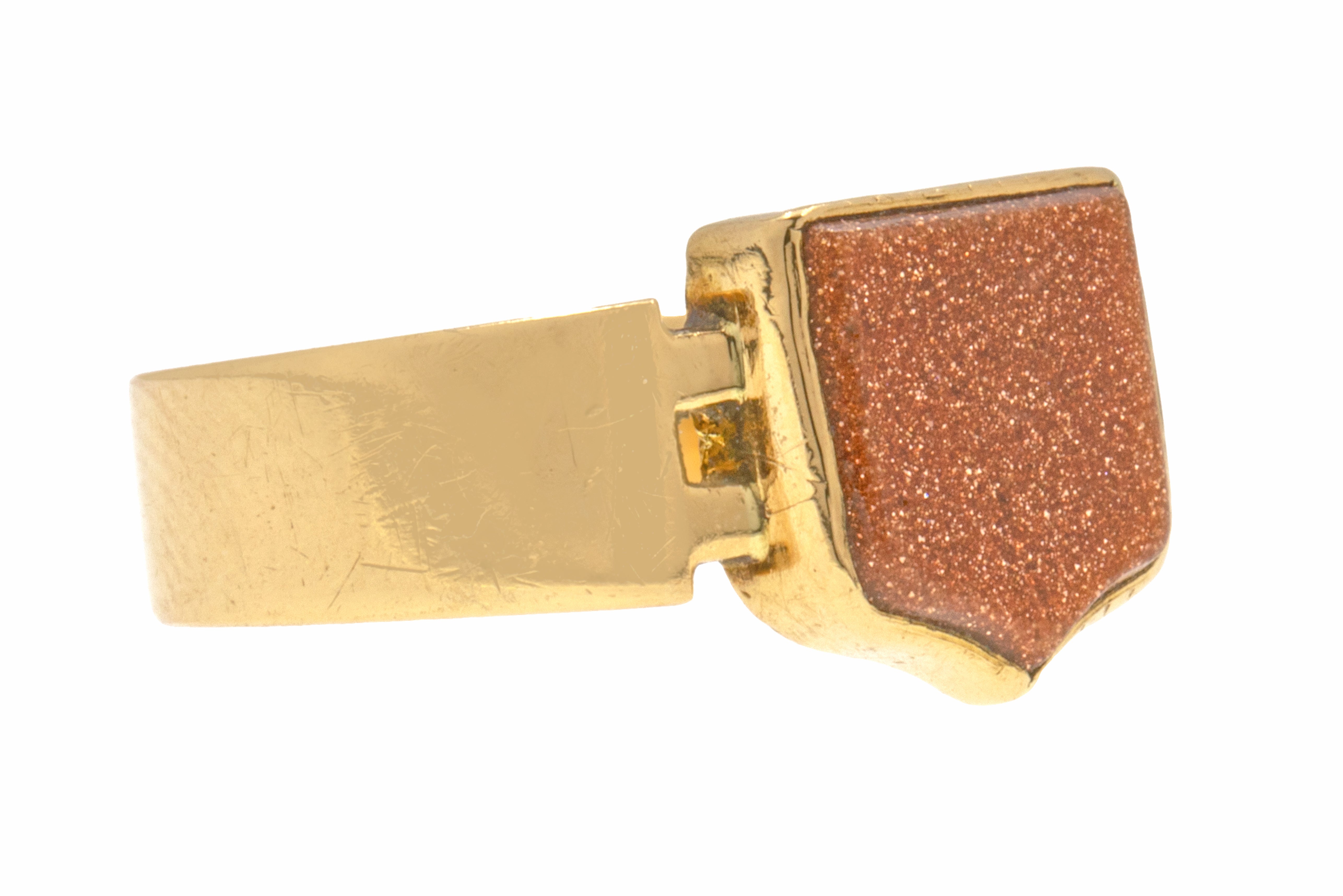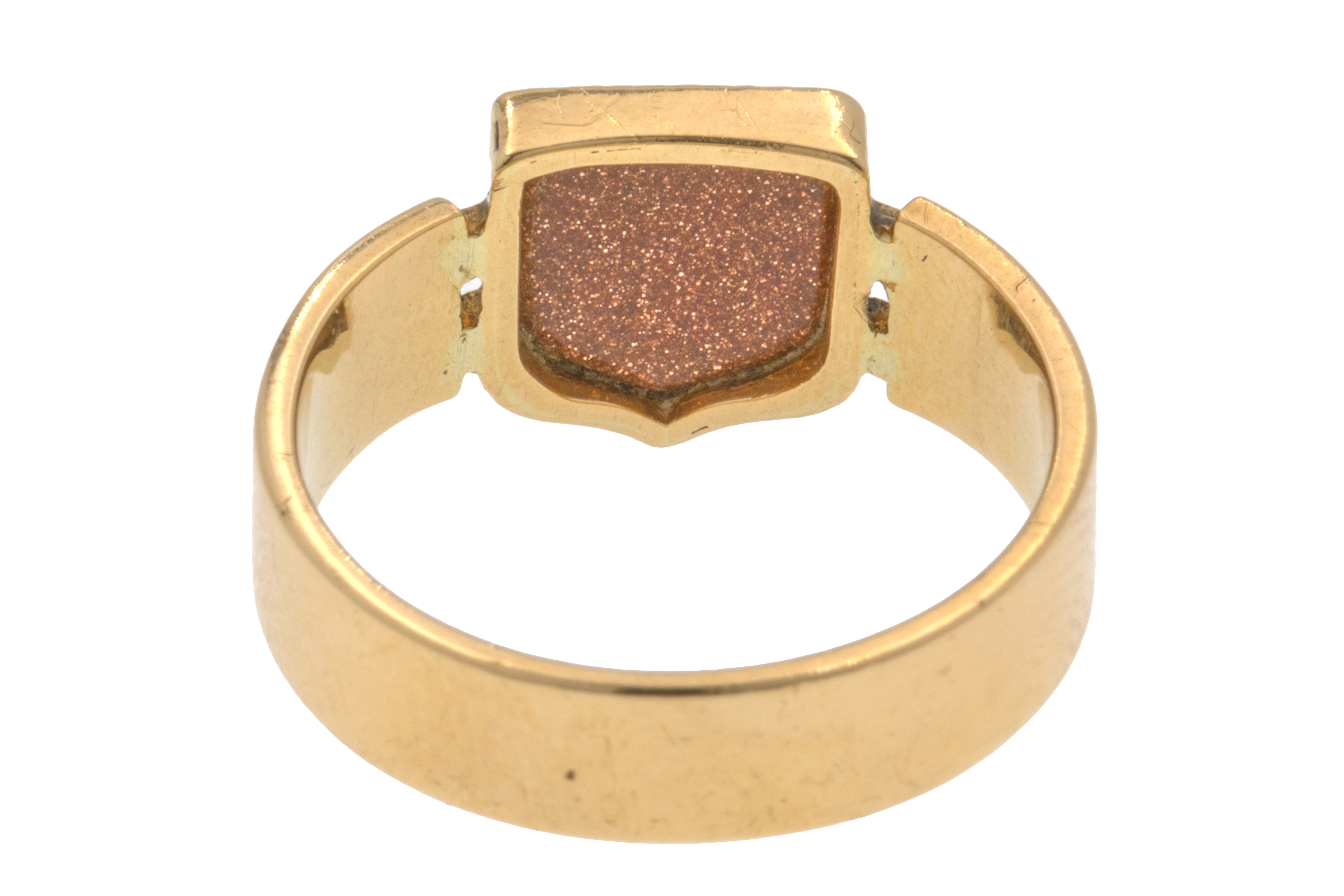 Bague cachet antique en or 18 carats - Écu en pierre de lune dorée