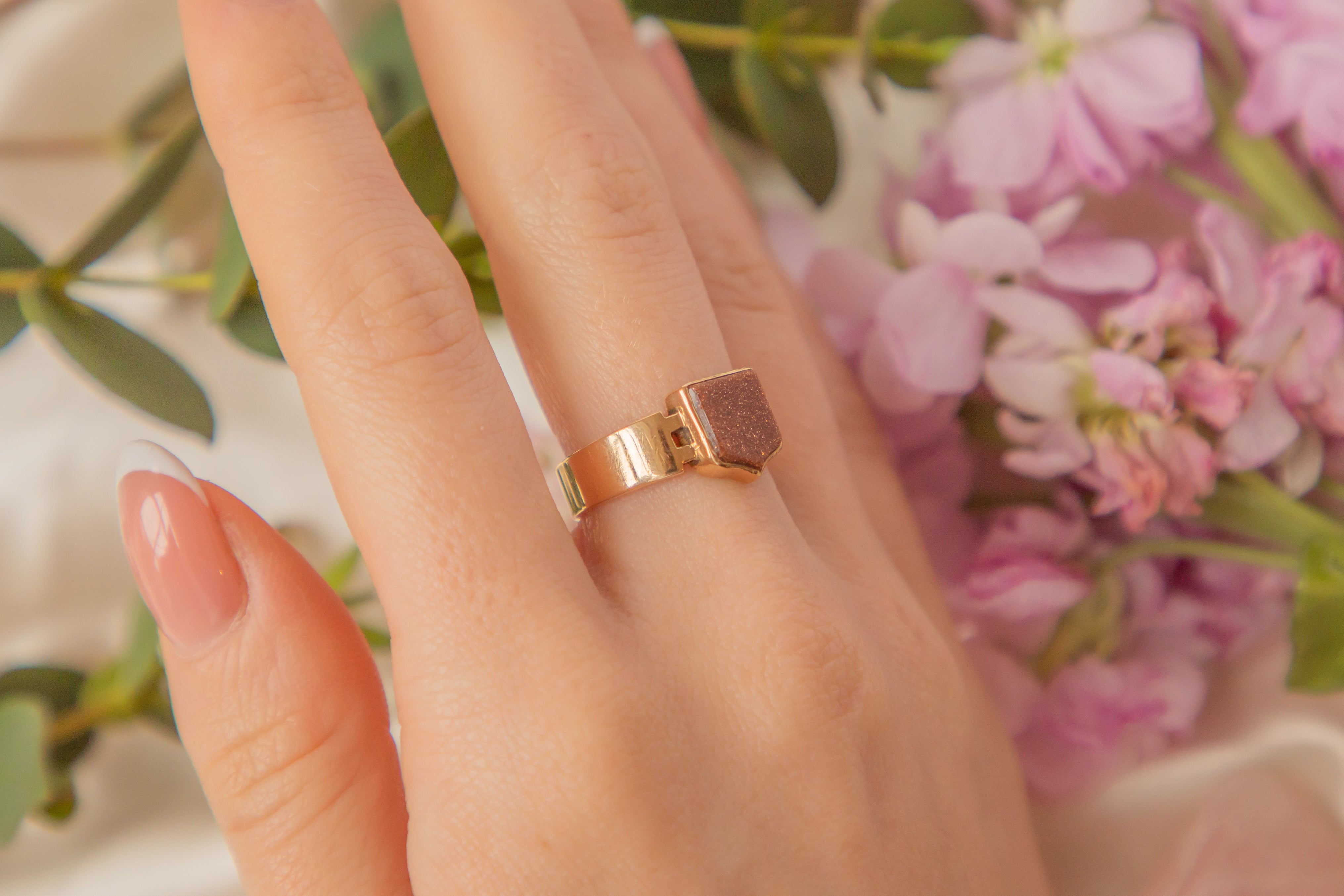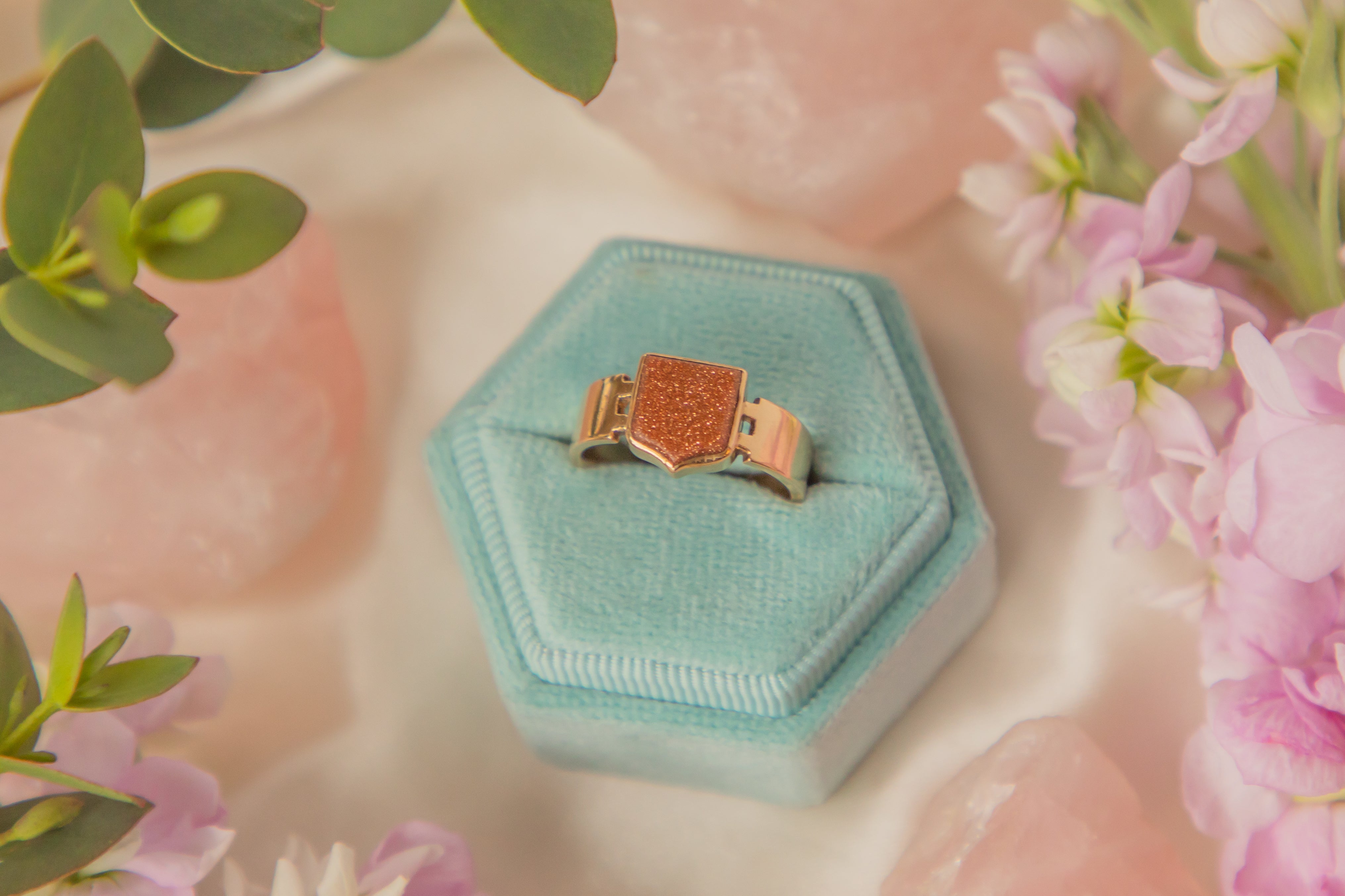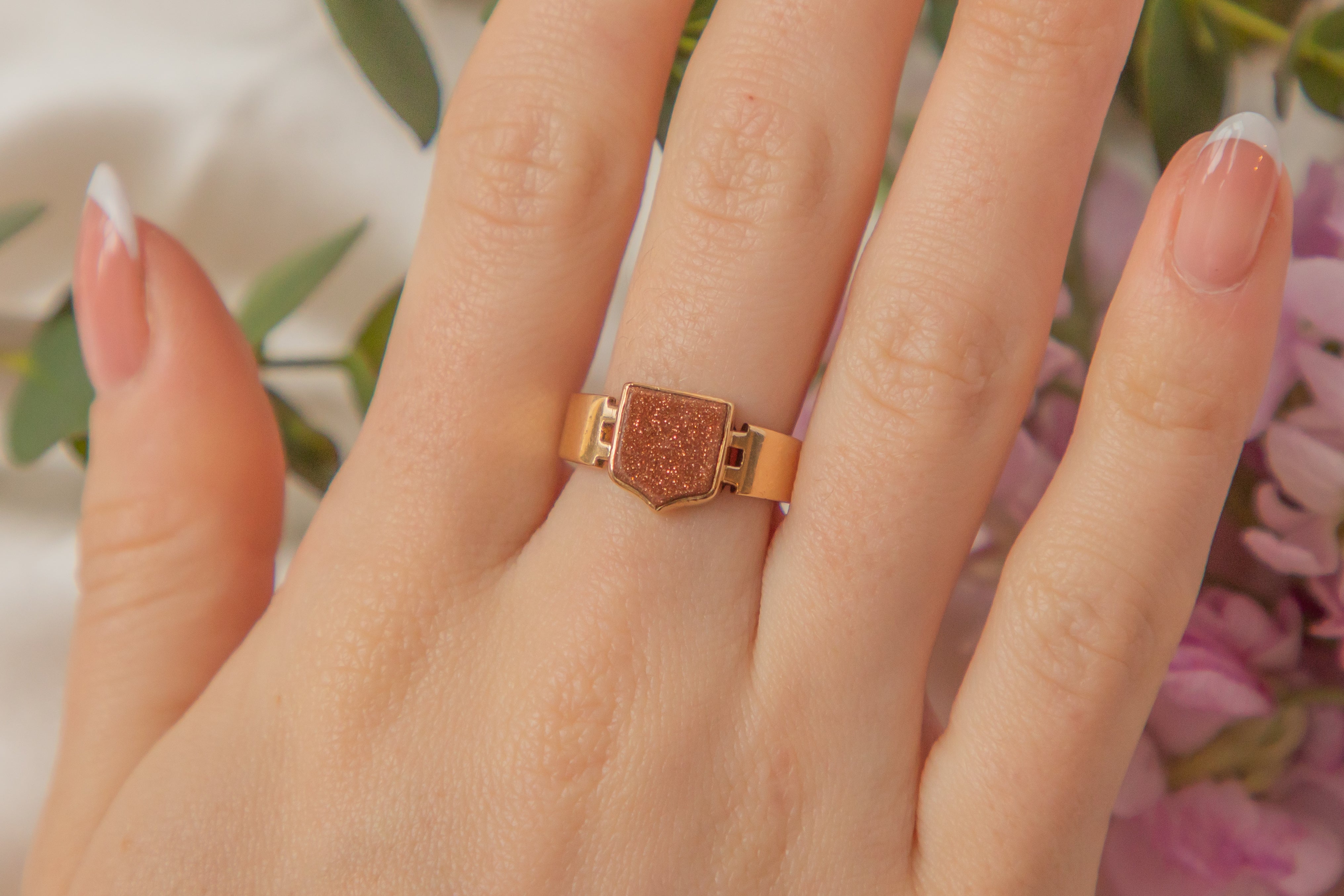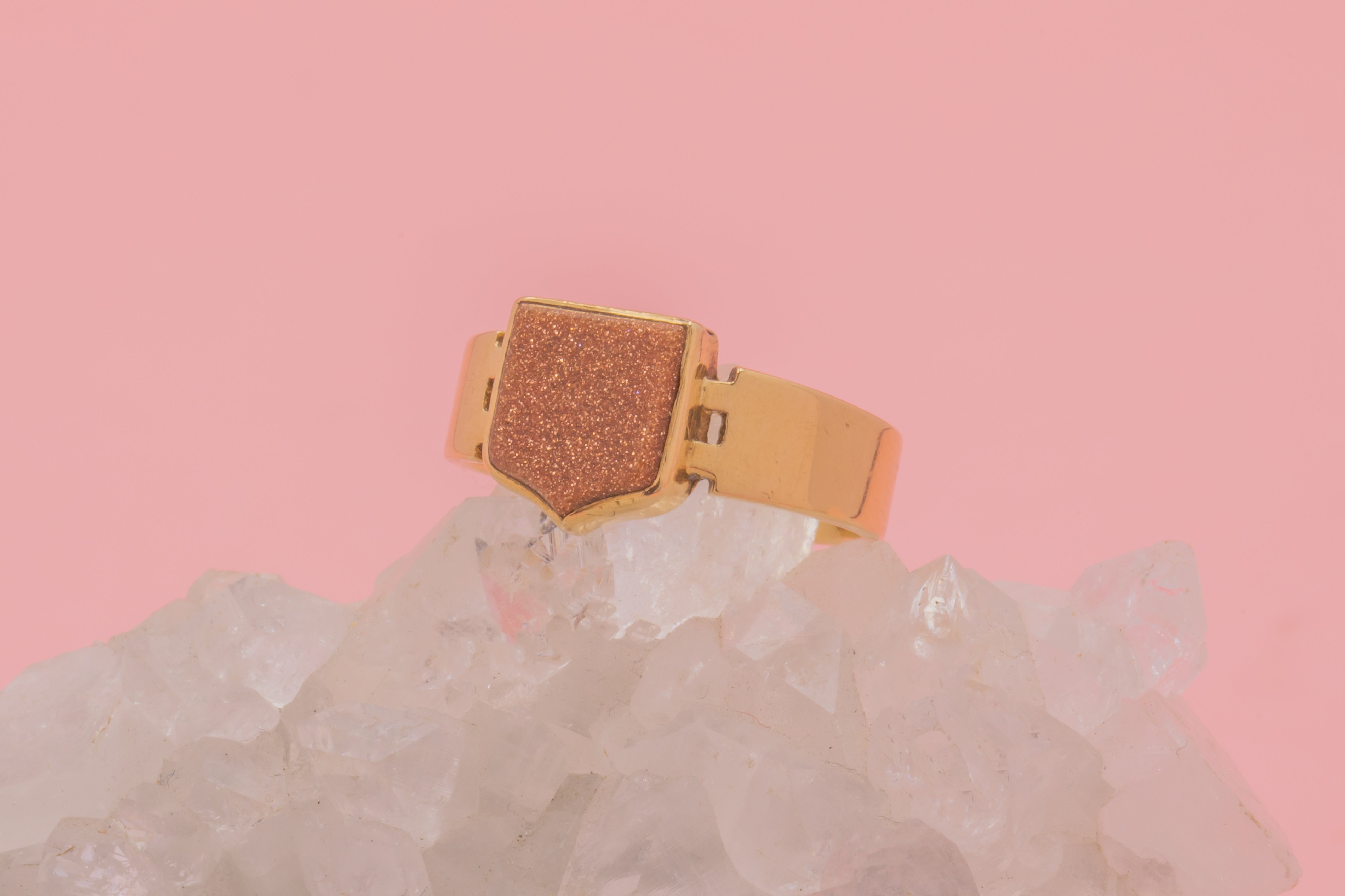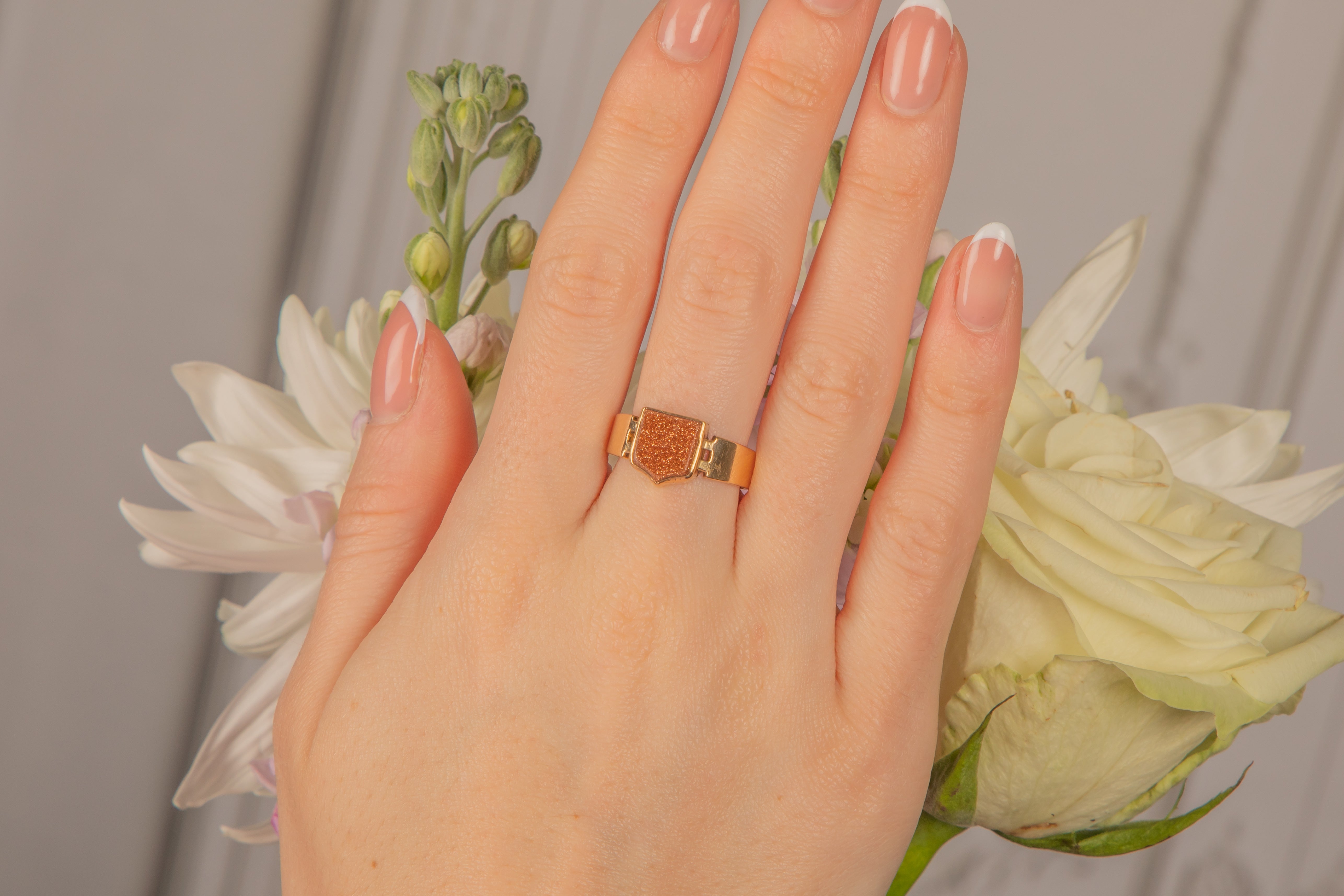 Bague cachet antique en or 18 carats - Écu en pierre de lune dorée