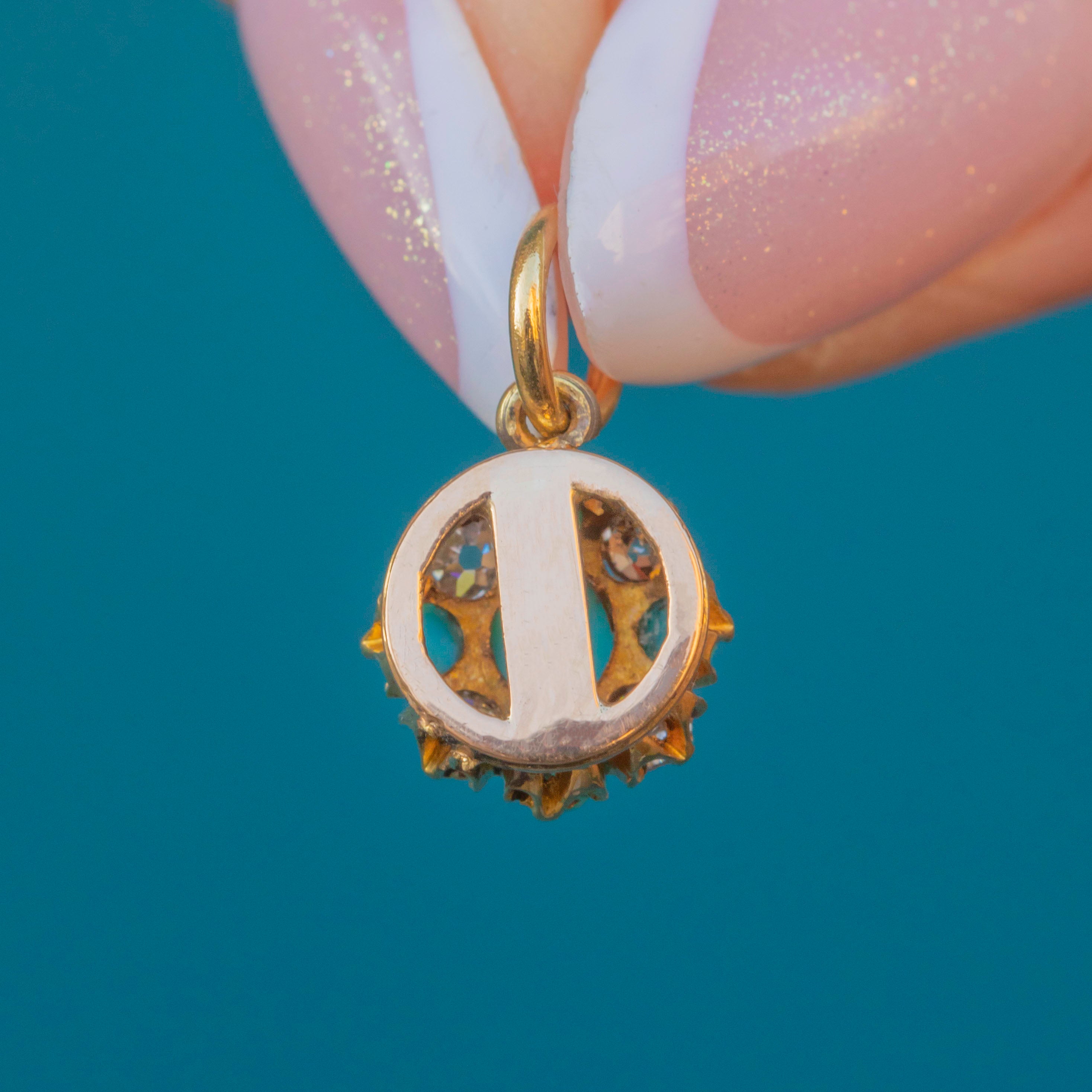 Antique 18ct Gold Turquoise Diamond Cluster Charm