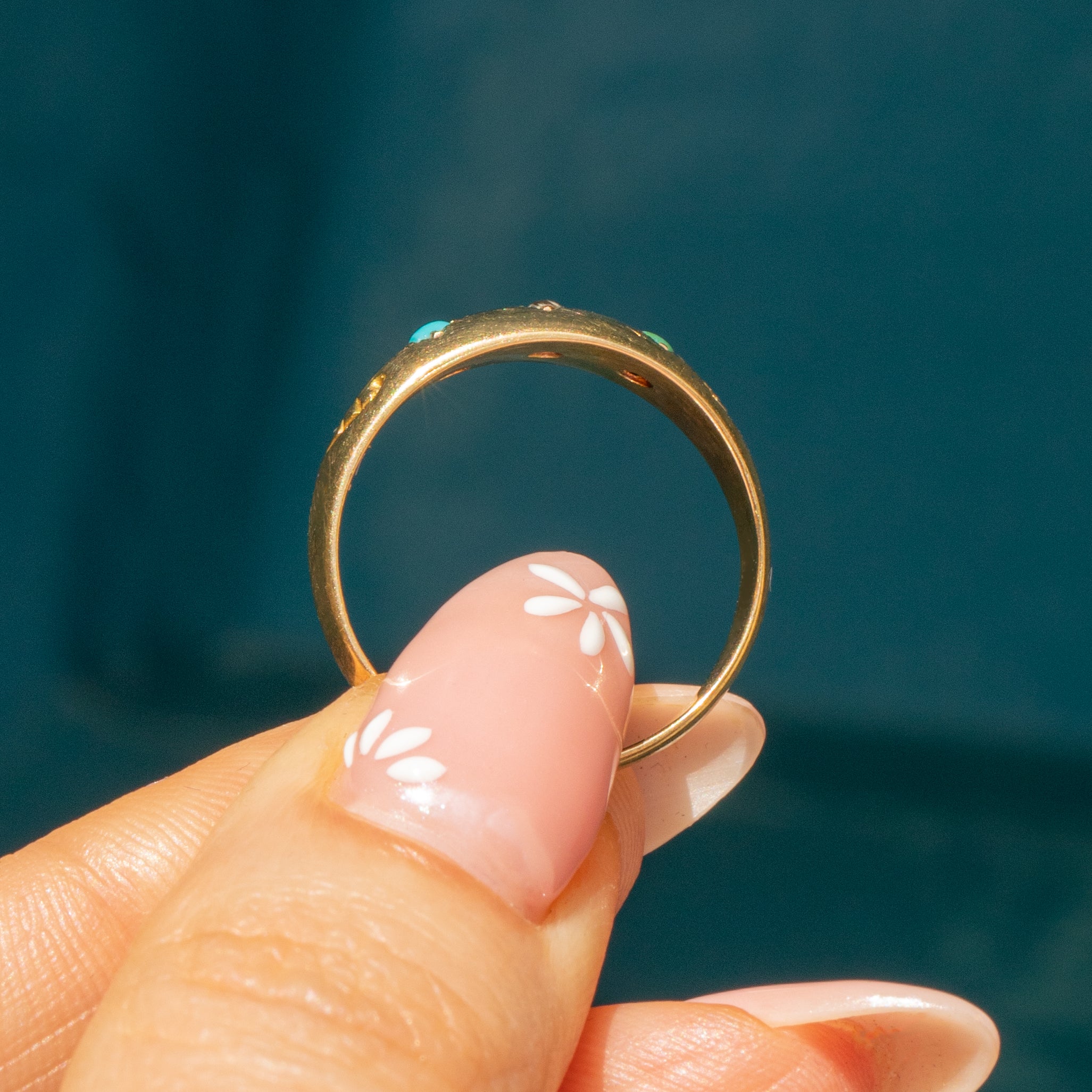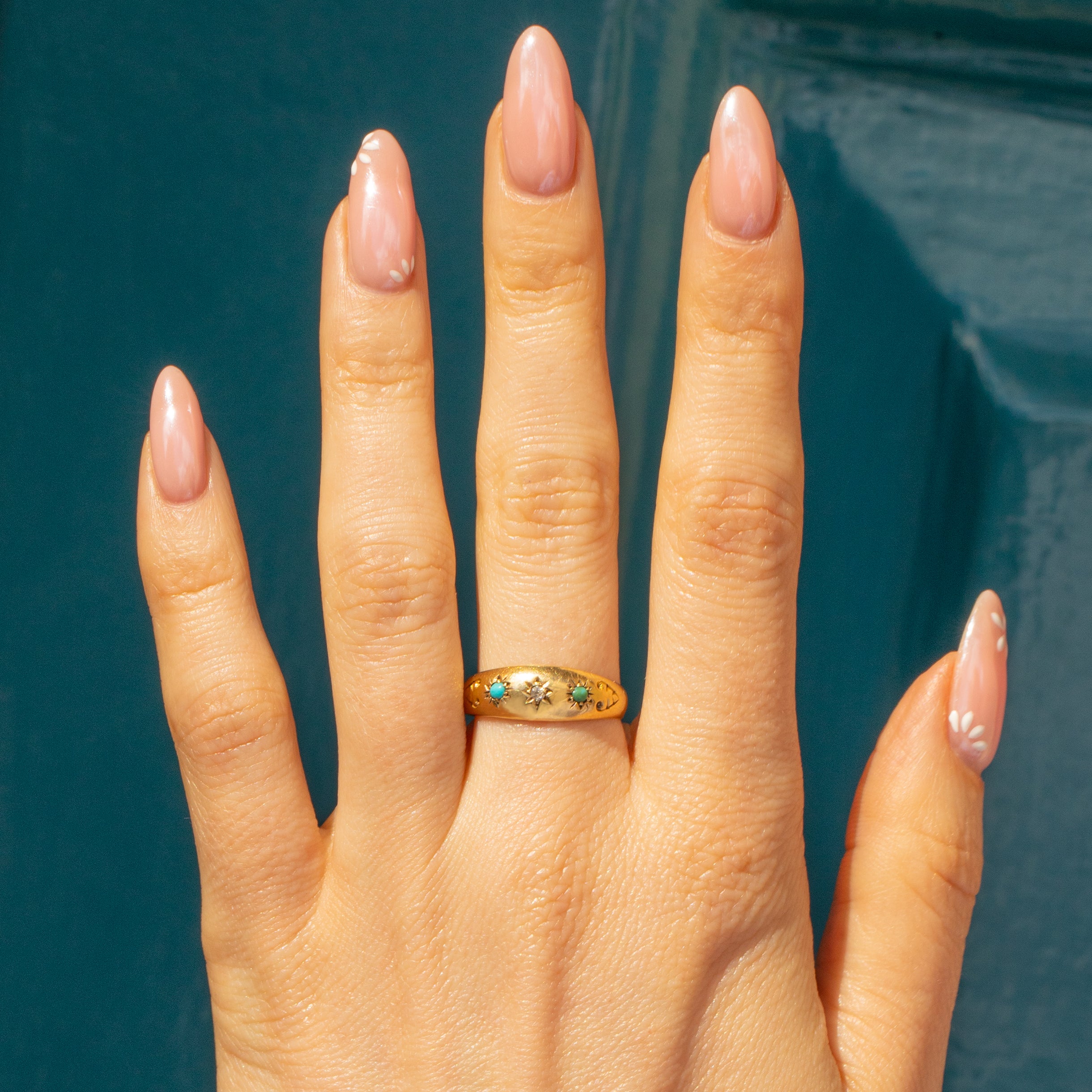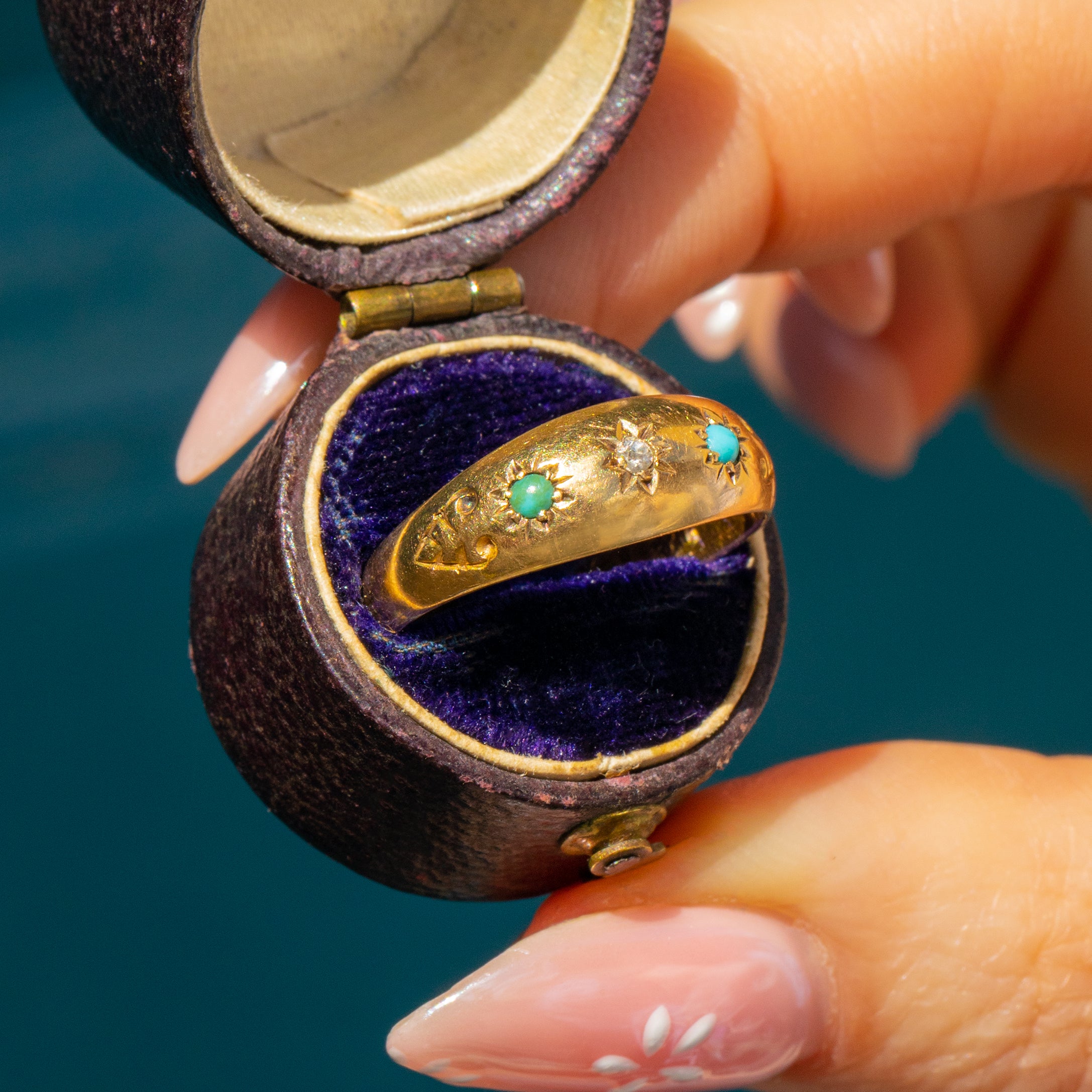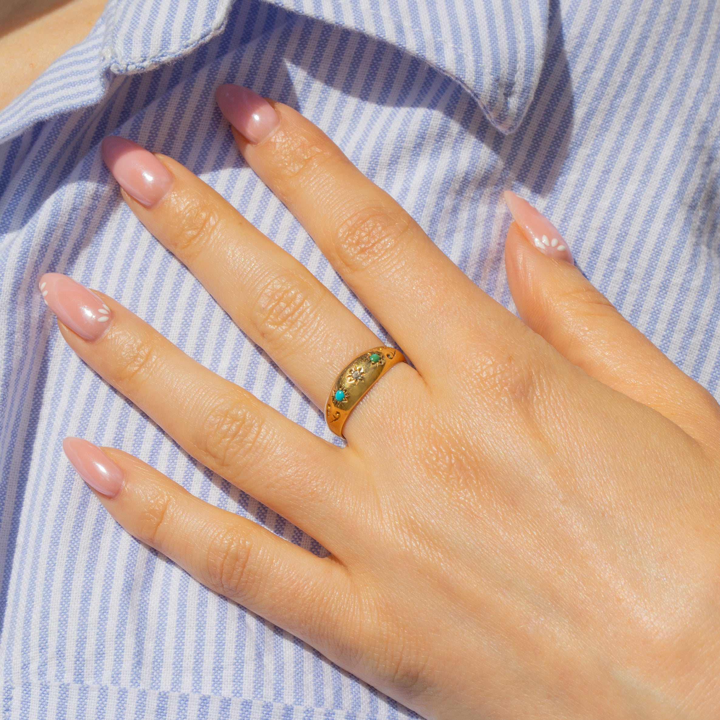 Bague gitane antique en or 18 carats avec turquoise et diamant