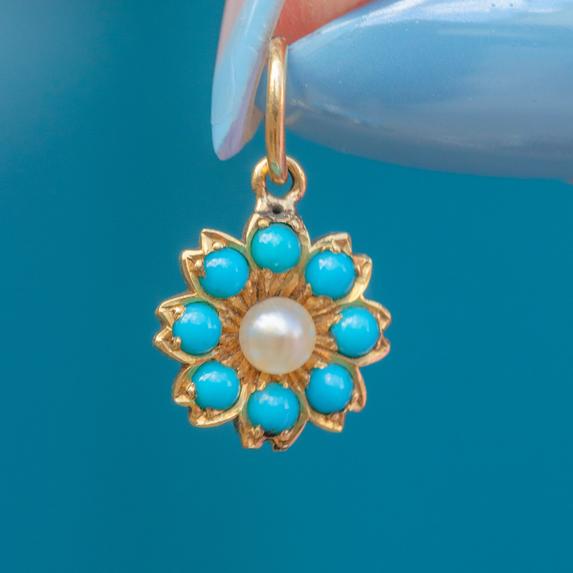 Antique 18ct Gold Turquoise Pearl Flower Cluster Charm