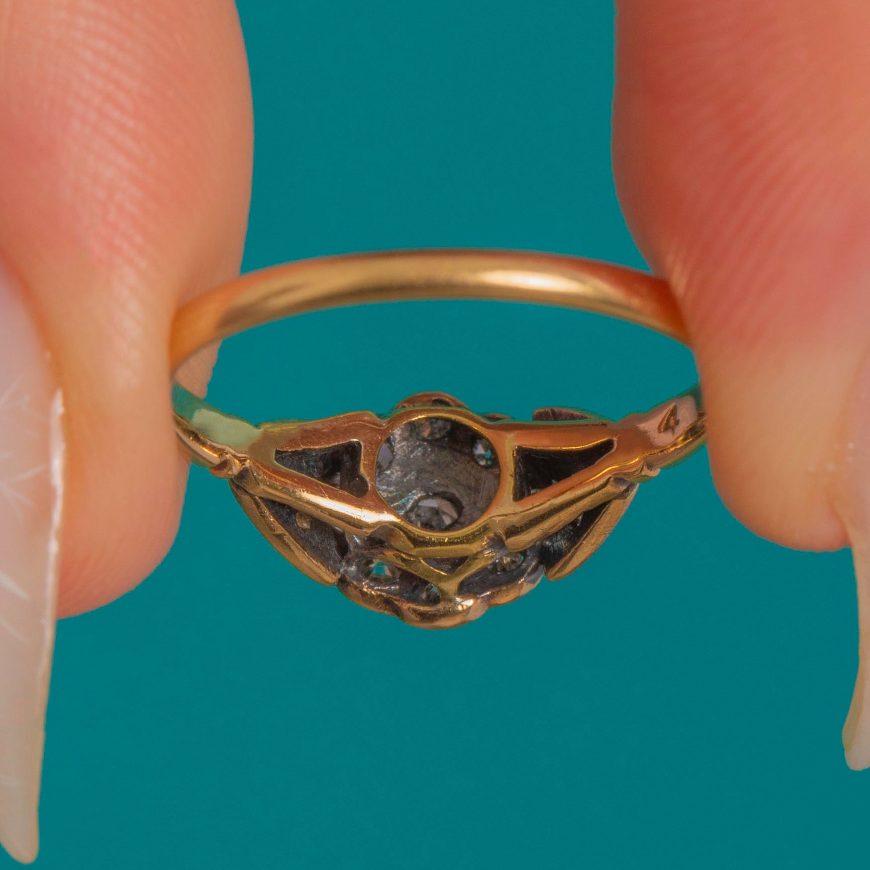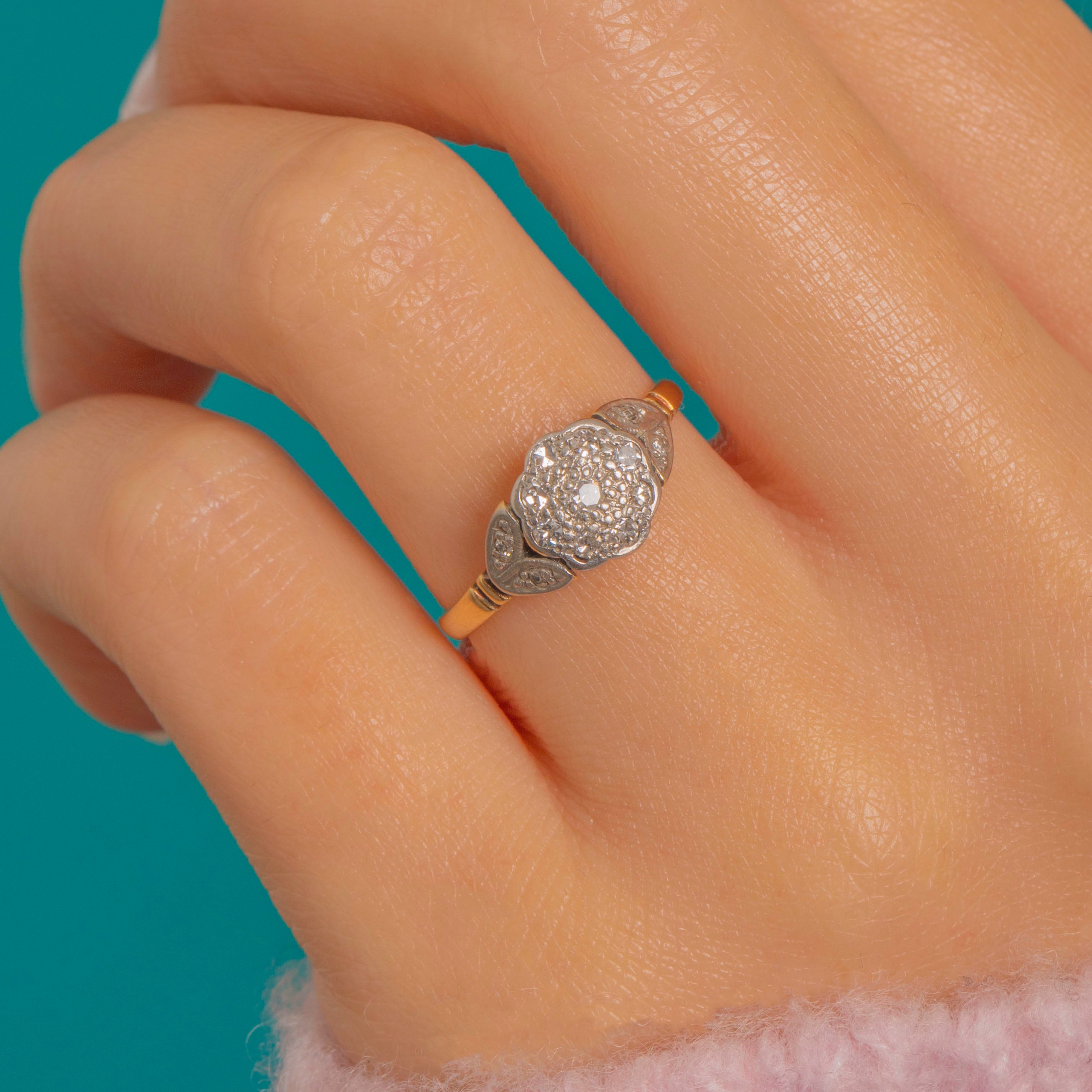 Crafted in 18ct Gold with Platinum to the settings, it has that classic two-tone look that makes antique Diamonds pop beautifully. A lovely choice for a delicate engagement ring, or a forever piece for anyone who loves refined vintage details.