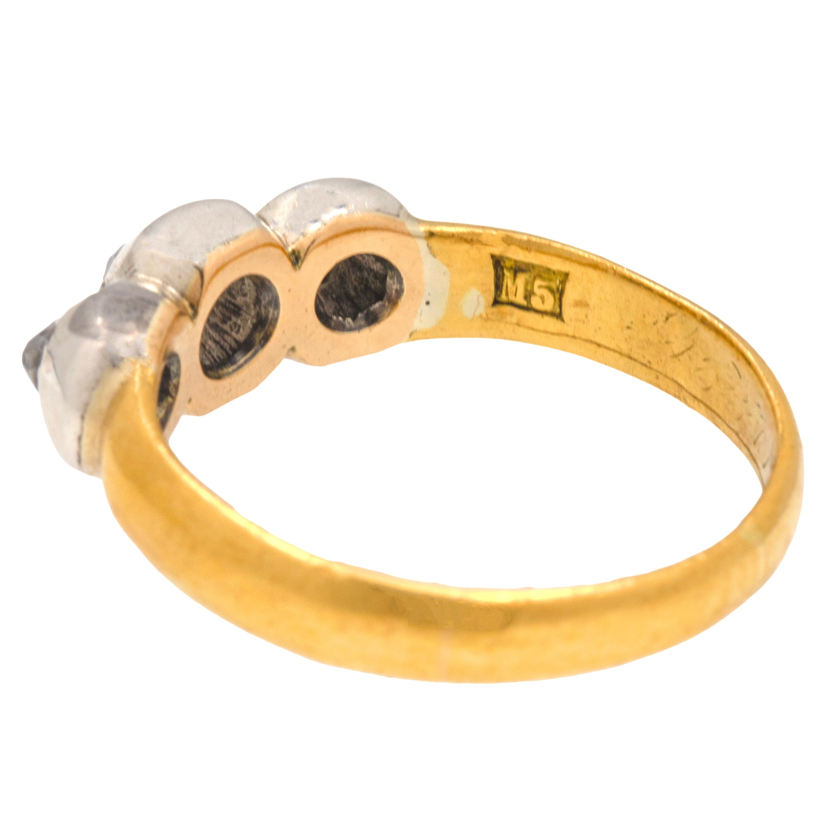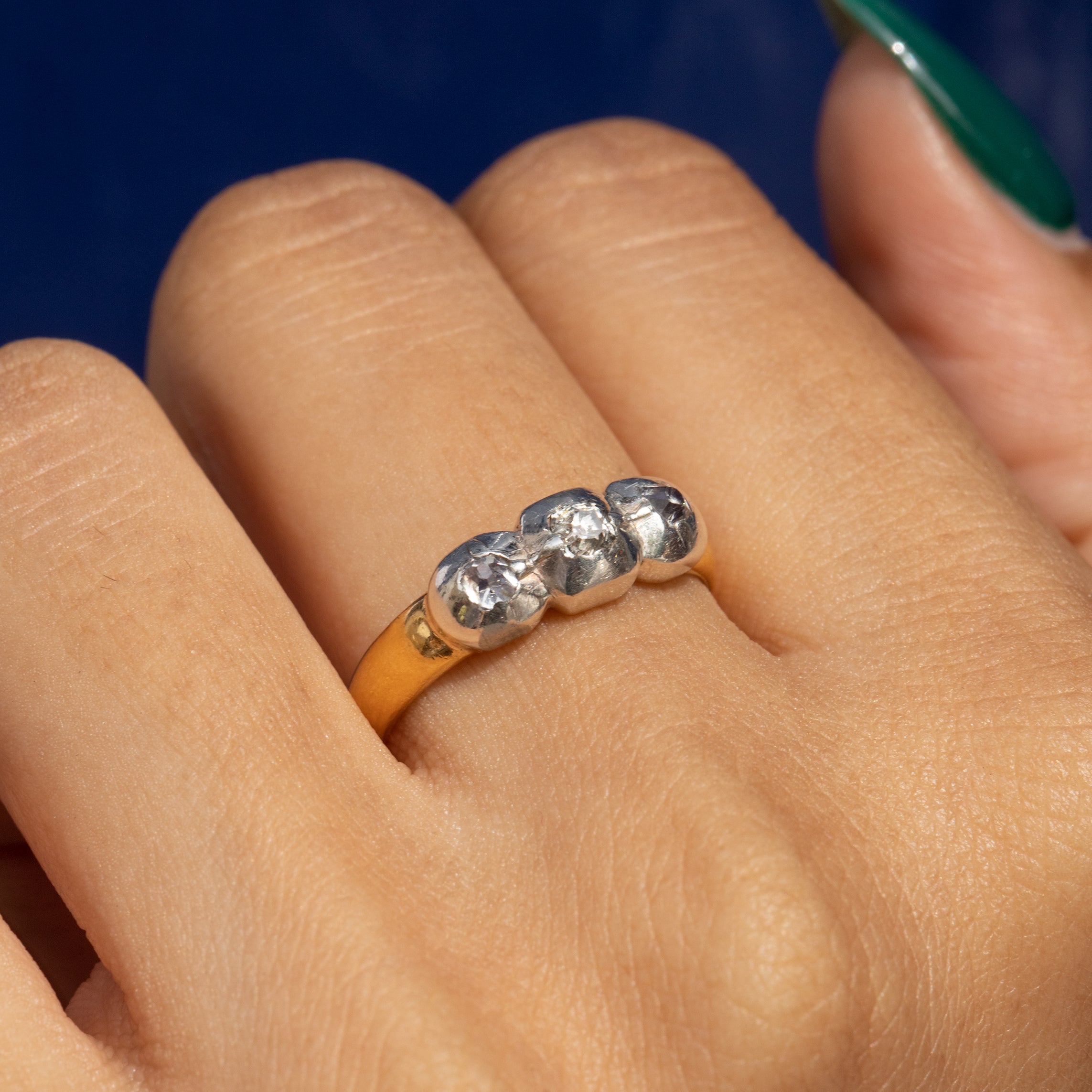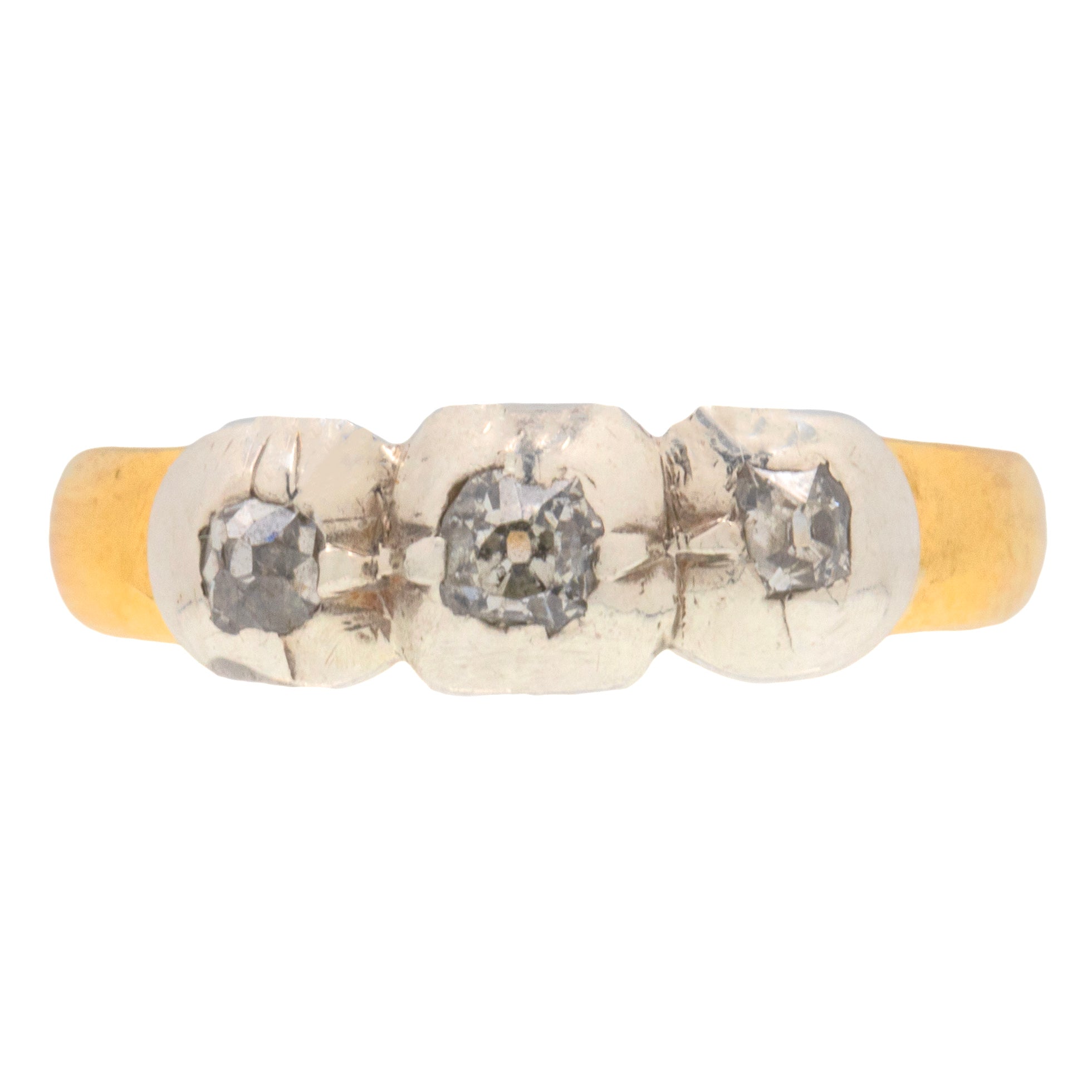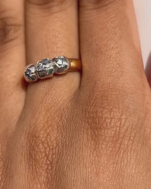 Bague ancienne trois pierres en or 18 carats avec diamant taille table