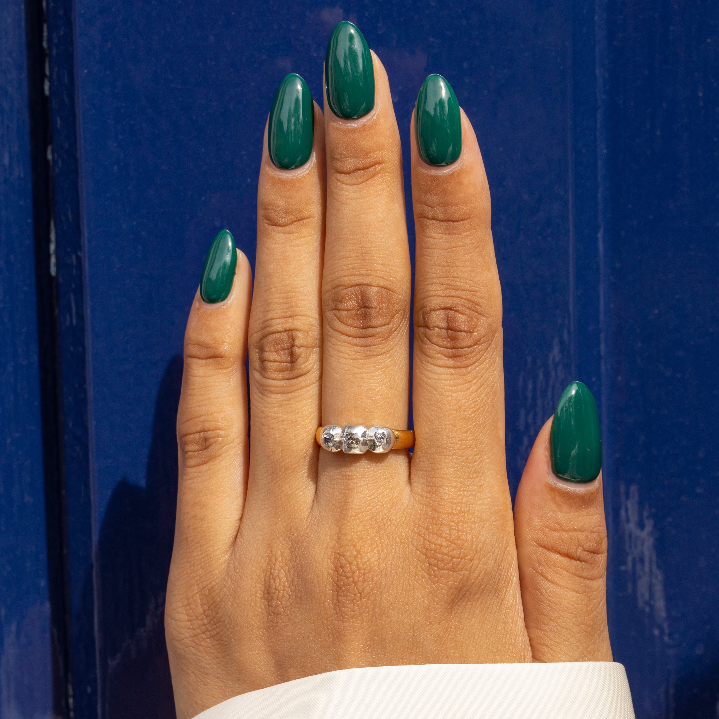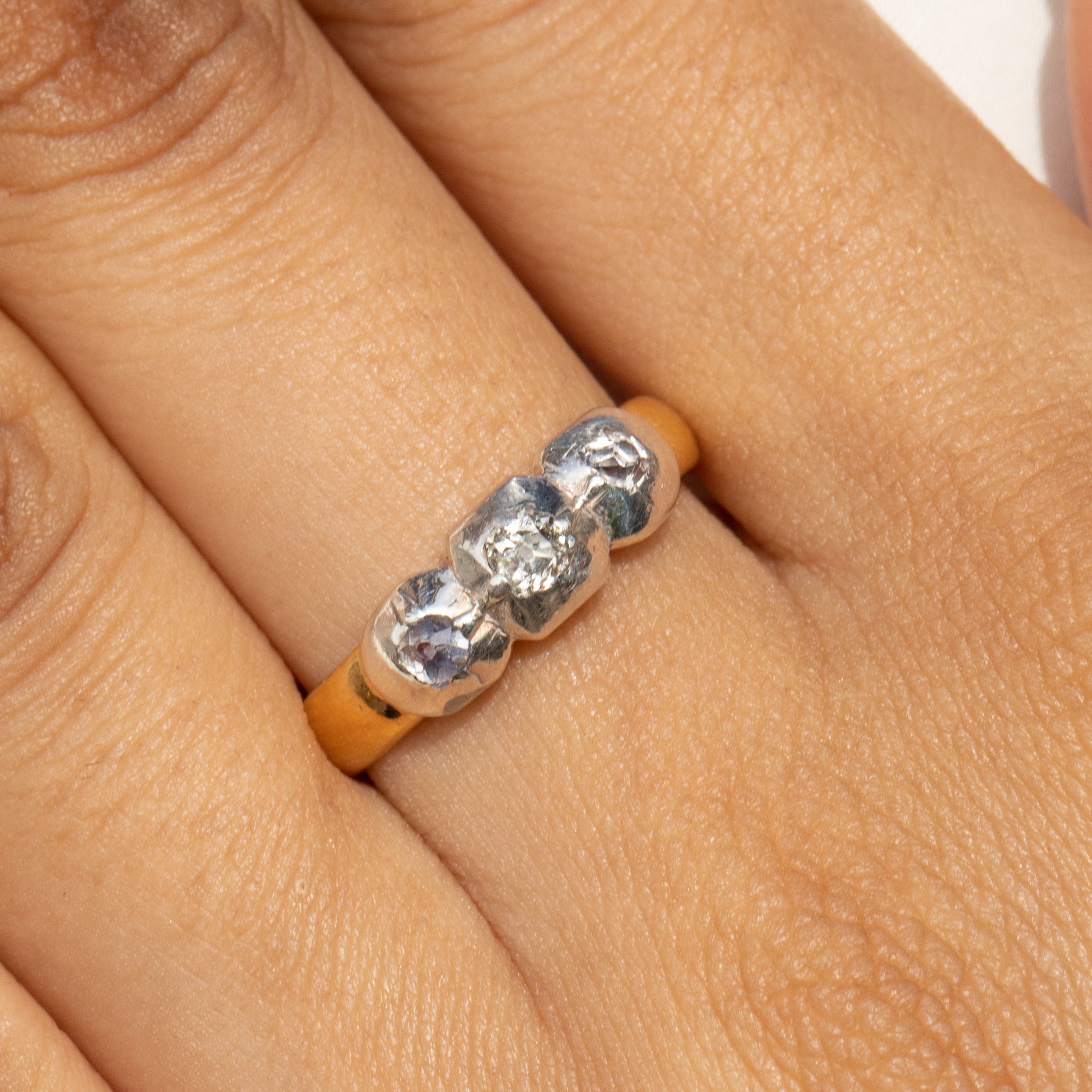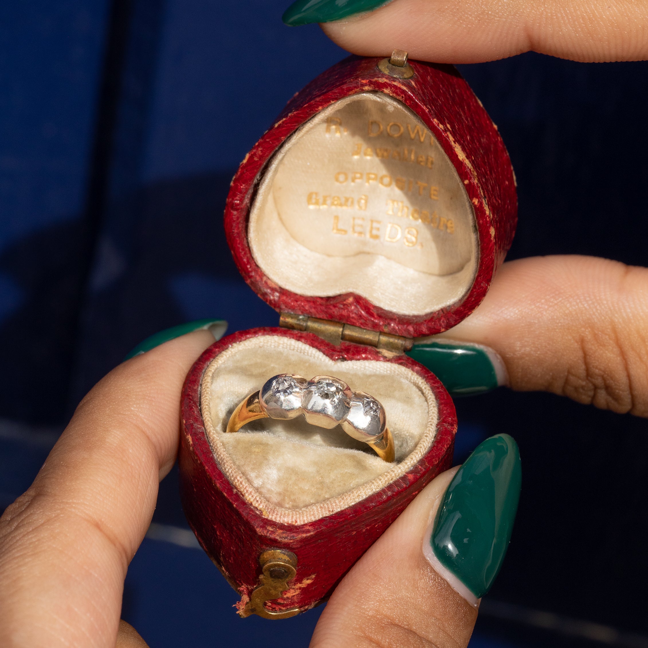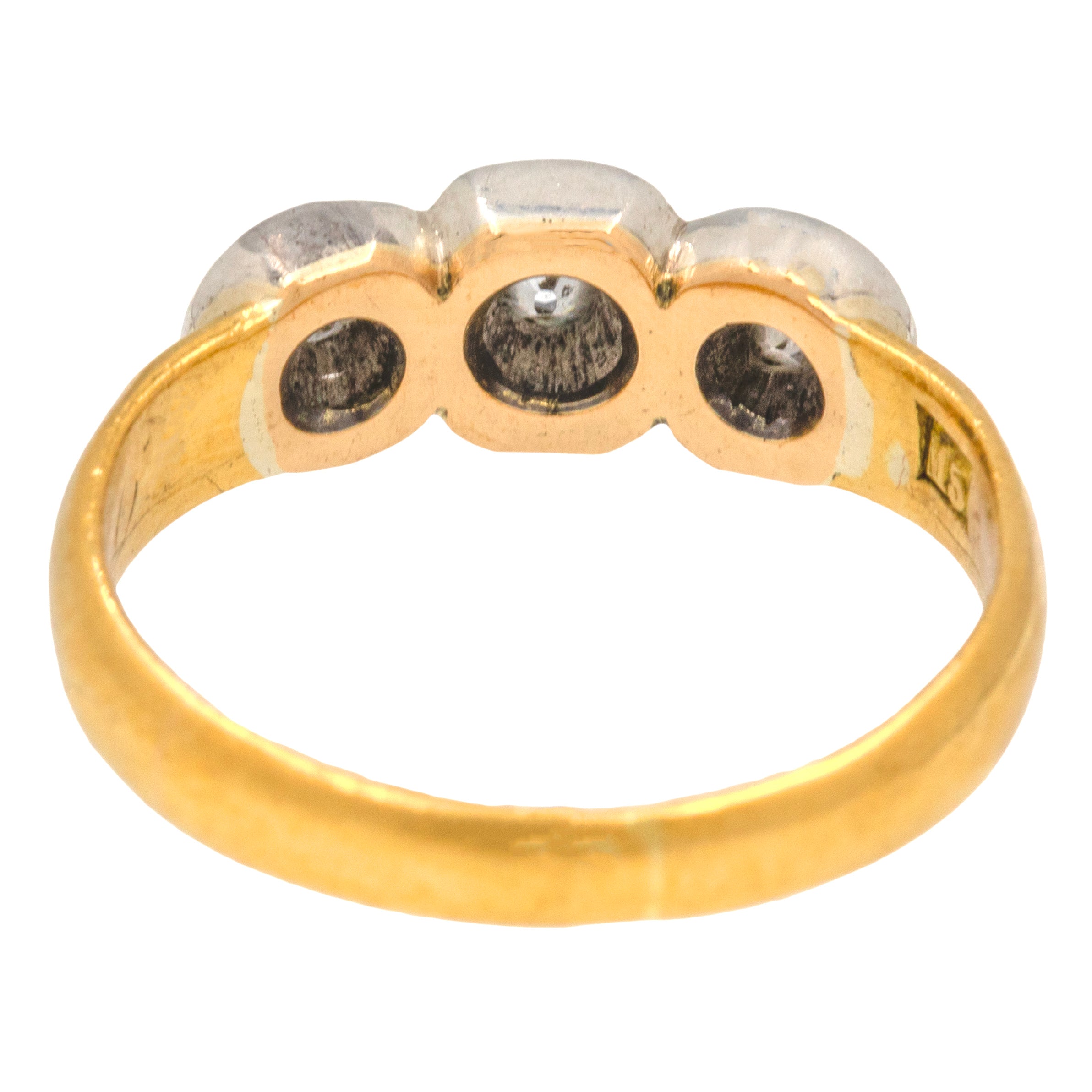 Bague ancienne trois pierres en or 18 carats avec diamant taille table