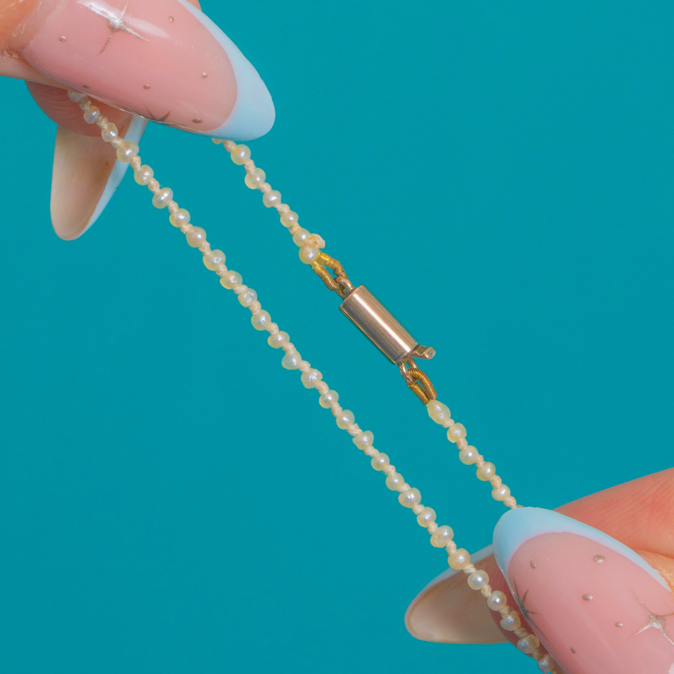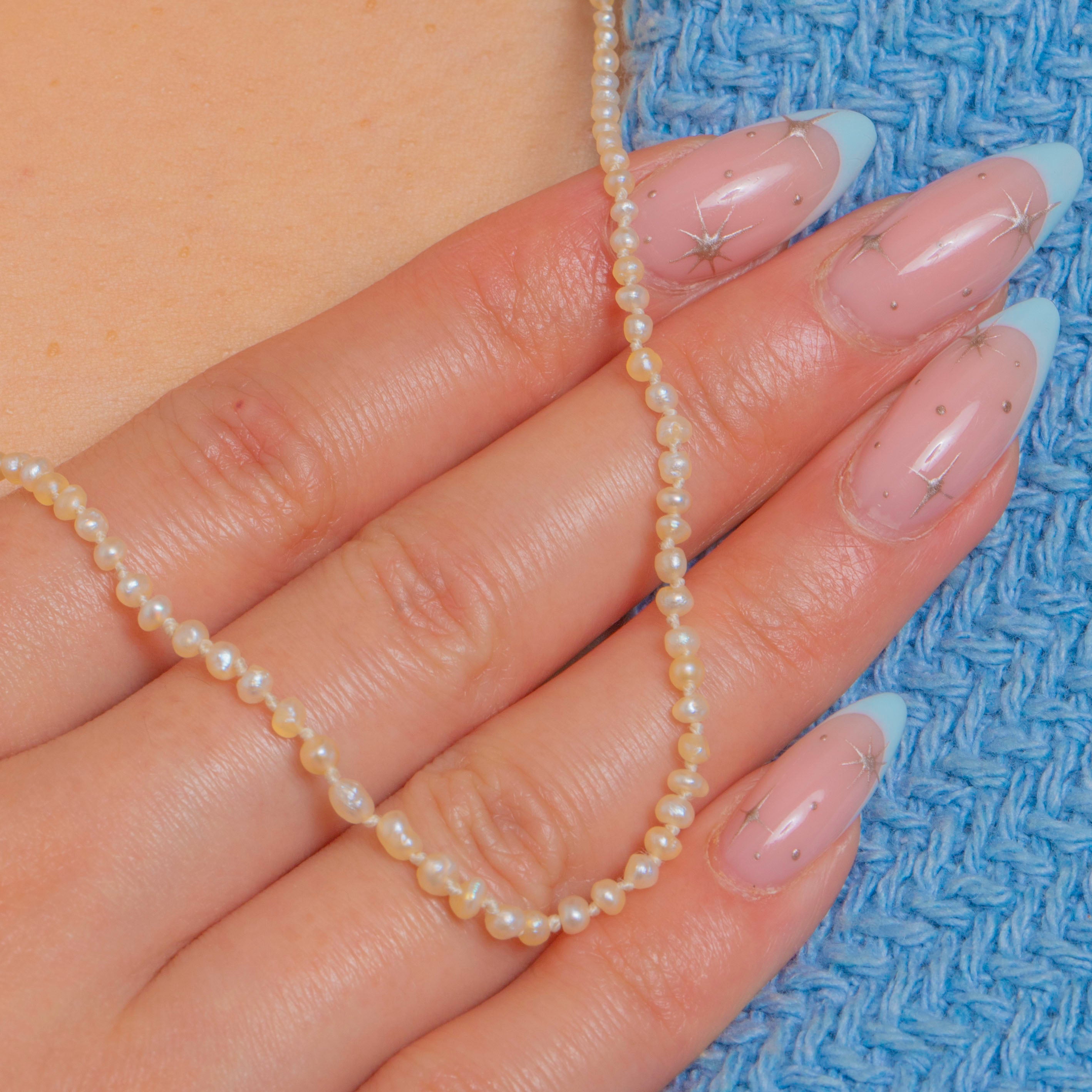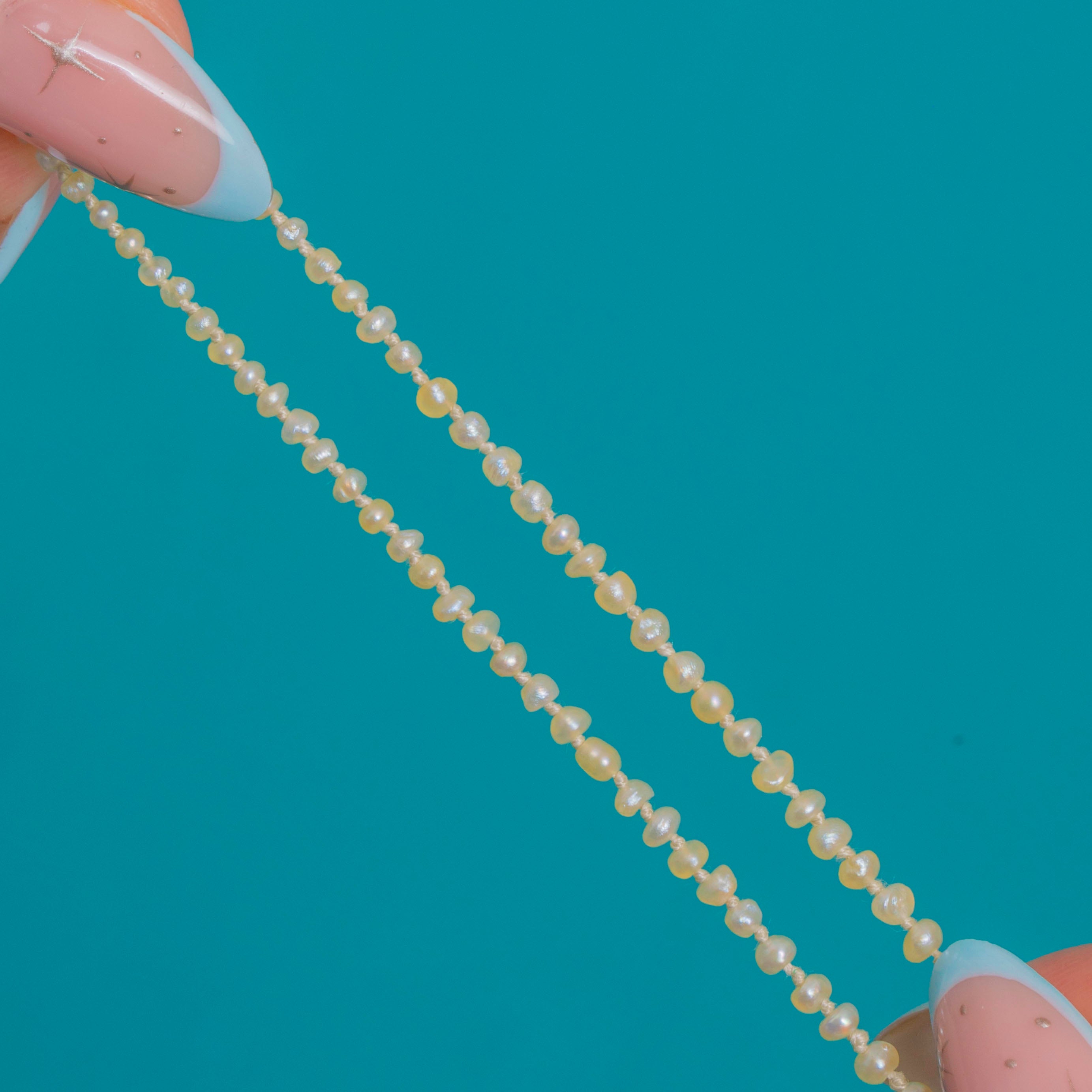 A whisper-fine Victorian strand of Natural Pearls, delicately graduated from tiny to petite and threaded for an elegant, fluid drape. The soft off-white to cream hues and gentle lustre lend a timeless, minimalist beauty that flatters any neckline.